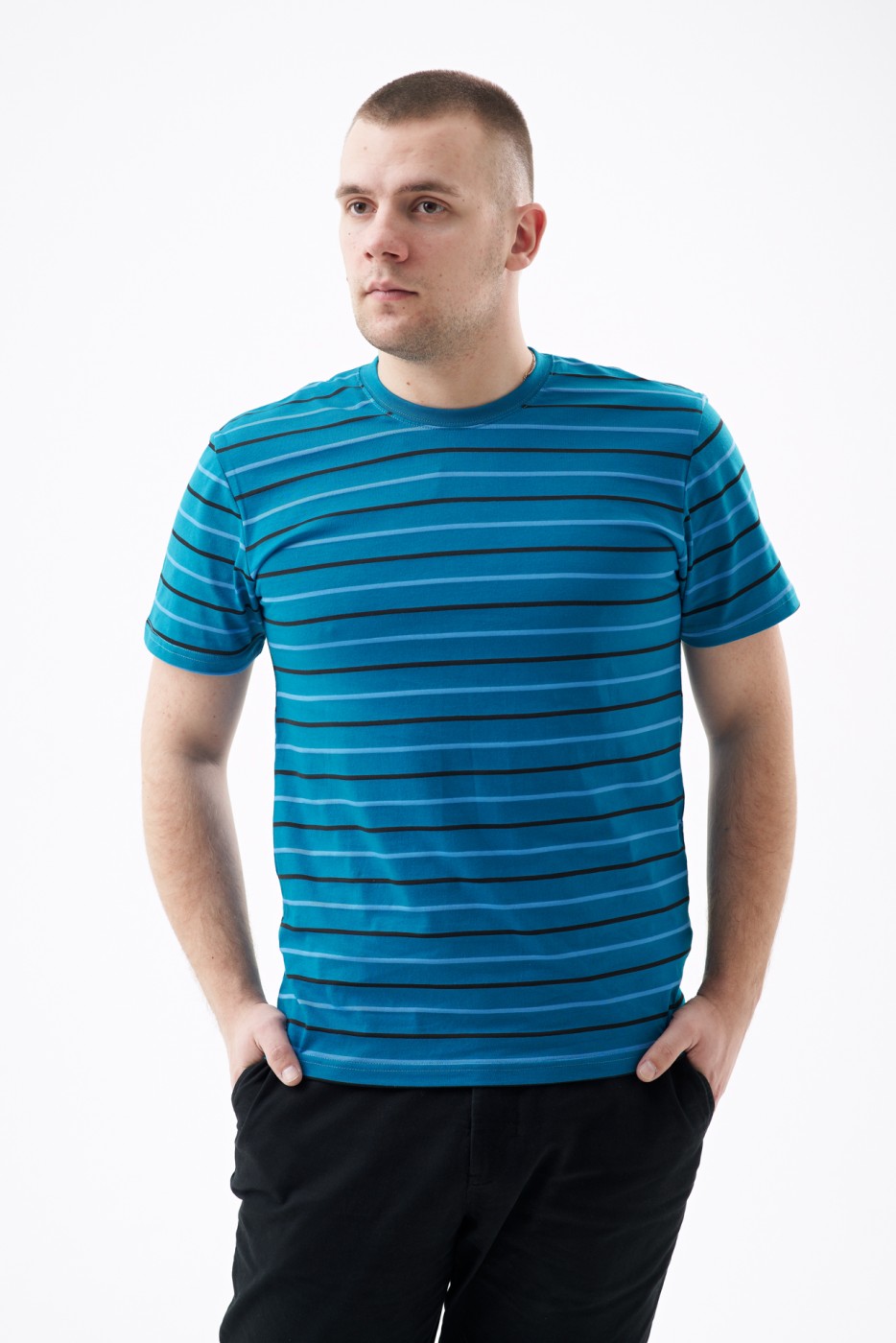 Футболка мужская полоса арт.М5001 бирюзовый круг.ворот есть в наличии