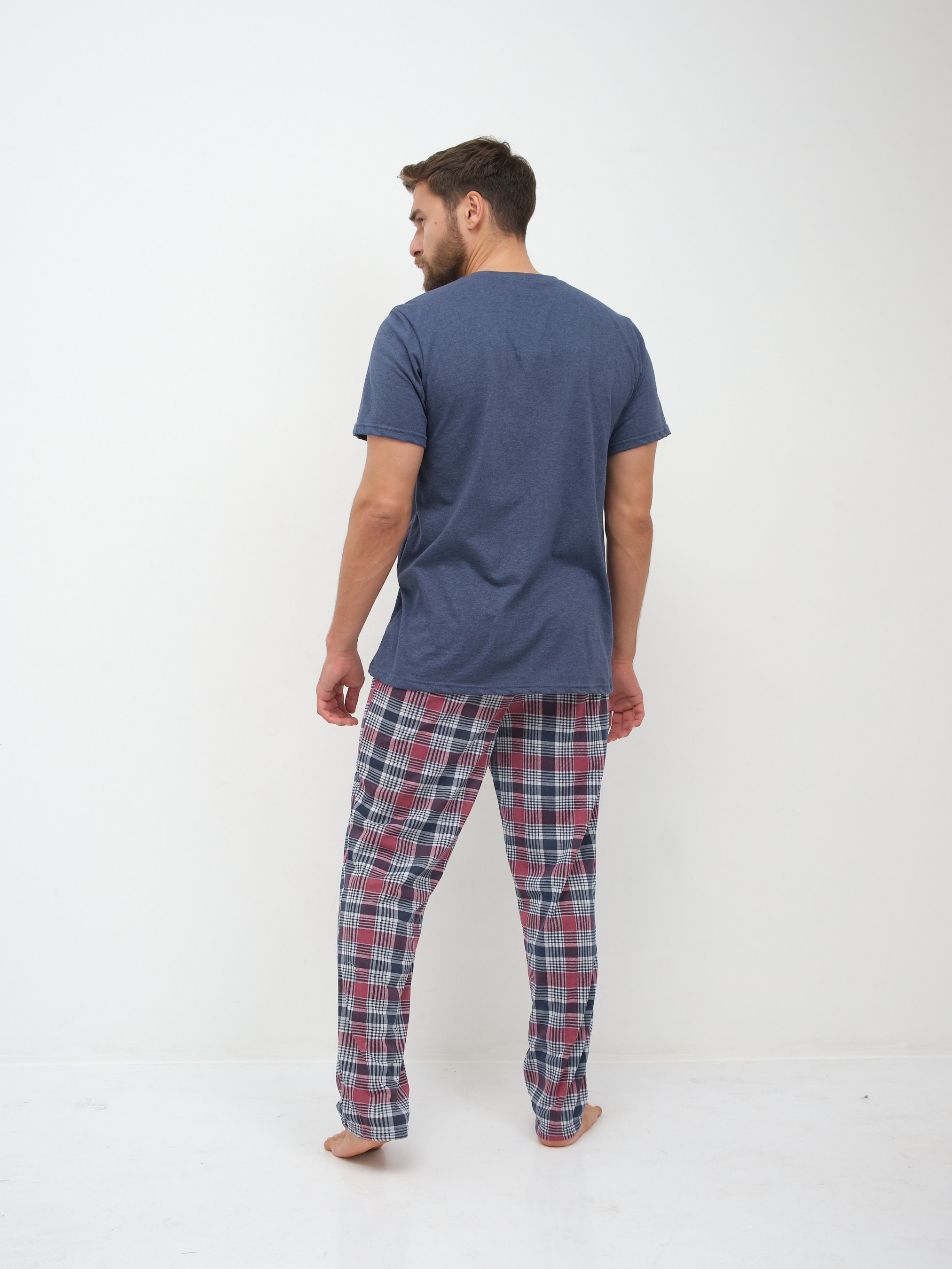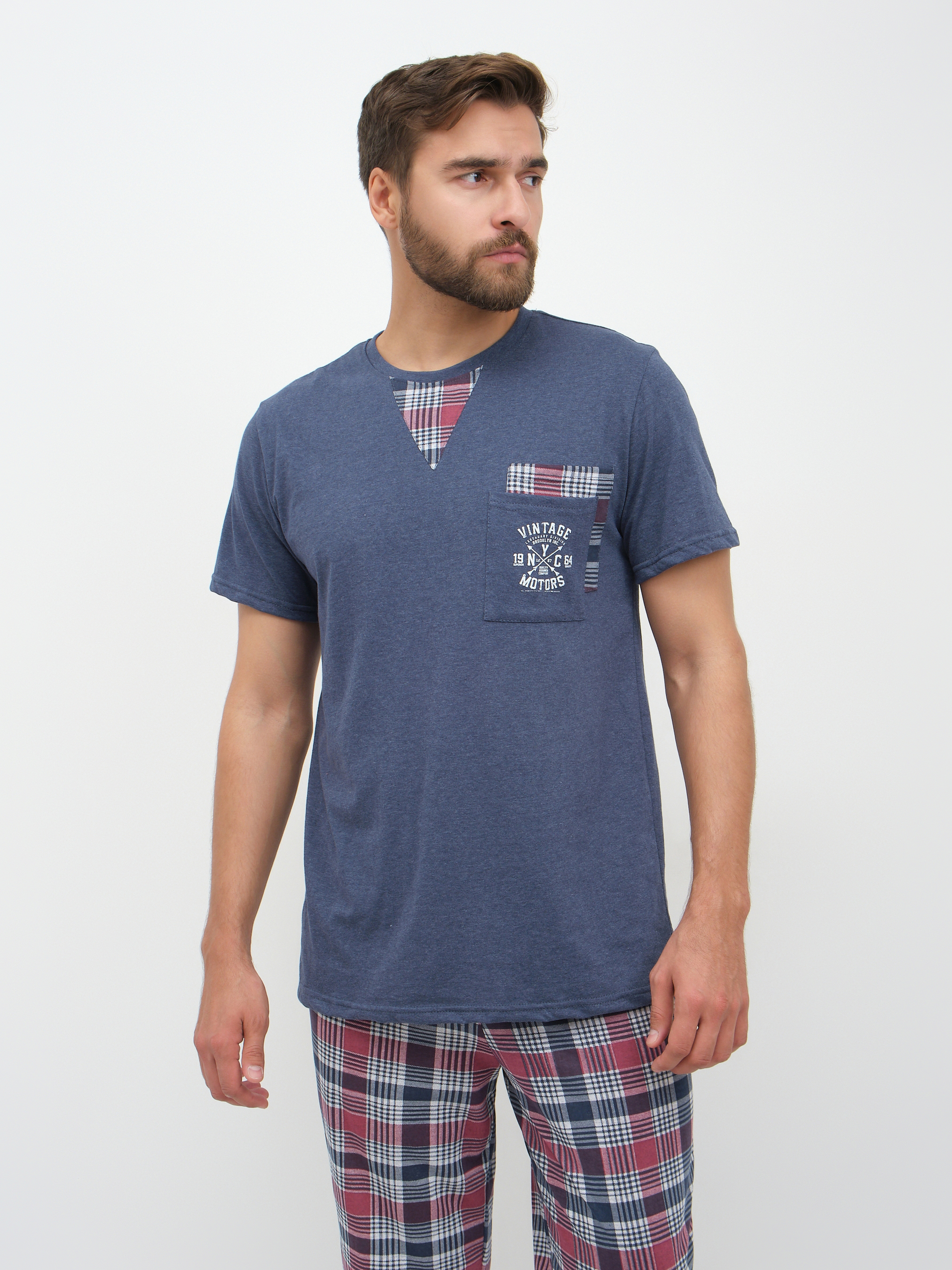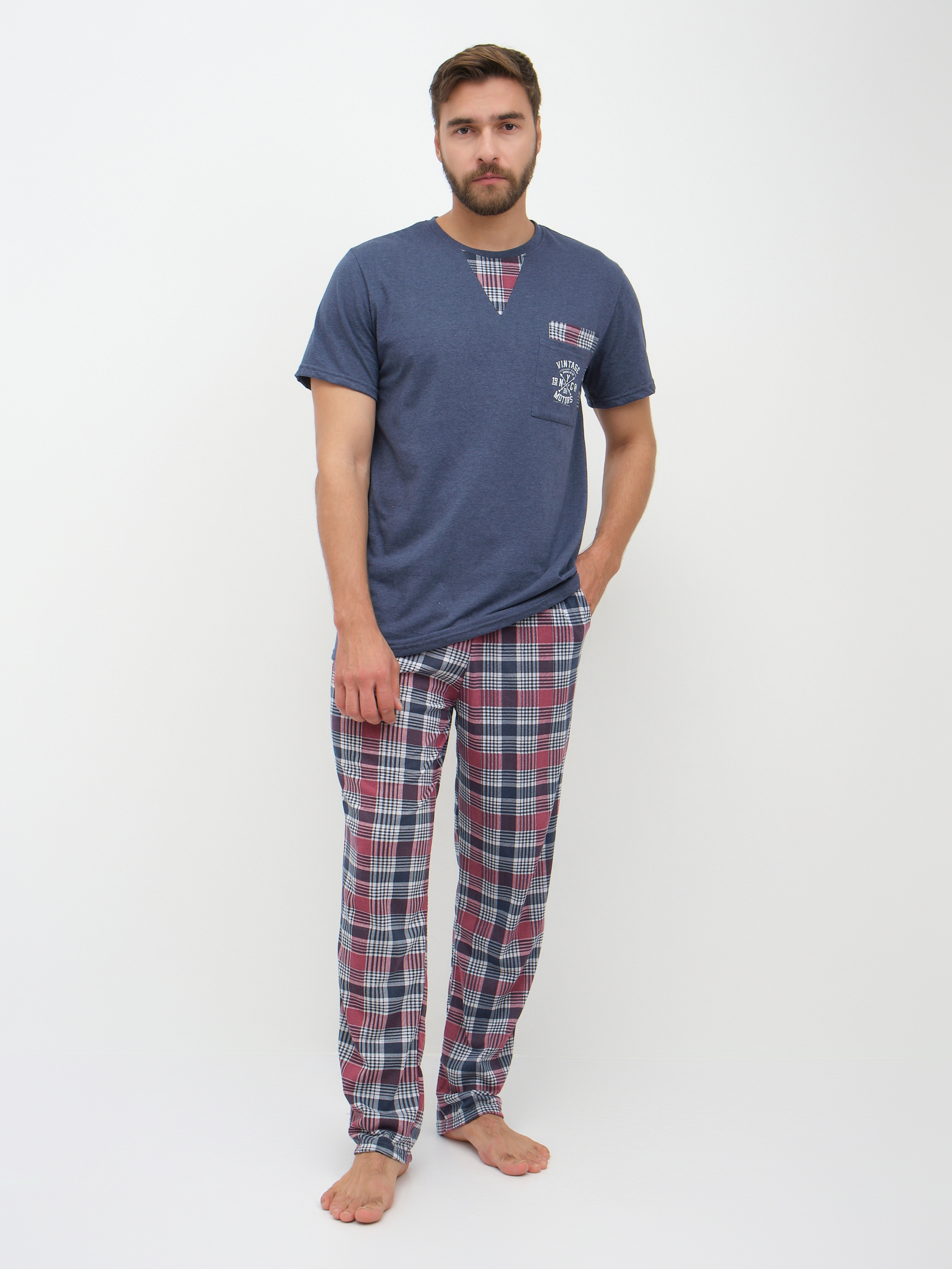 Пижама мужская Олимп кор.рукав бордо/клетка есть в наличии