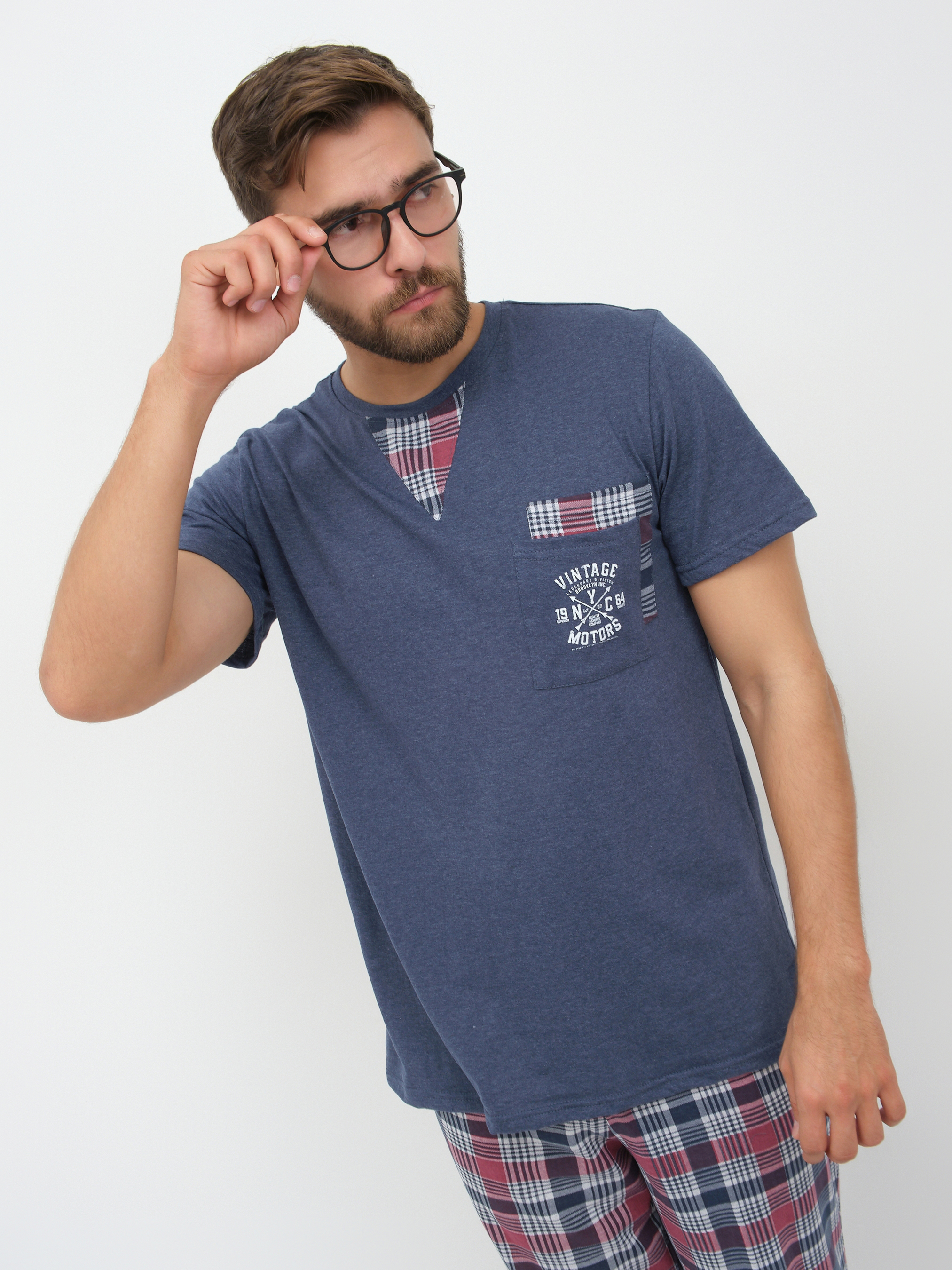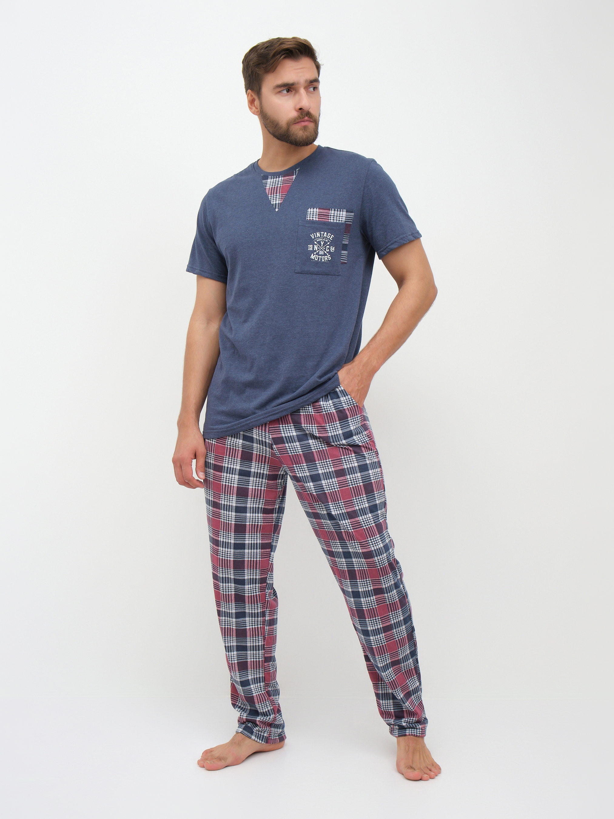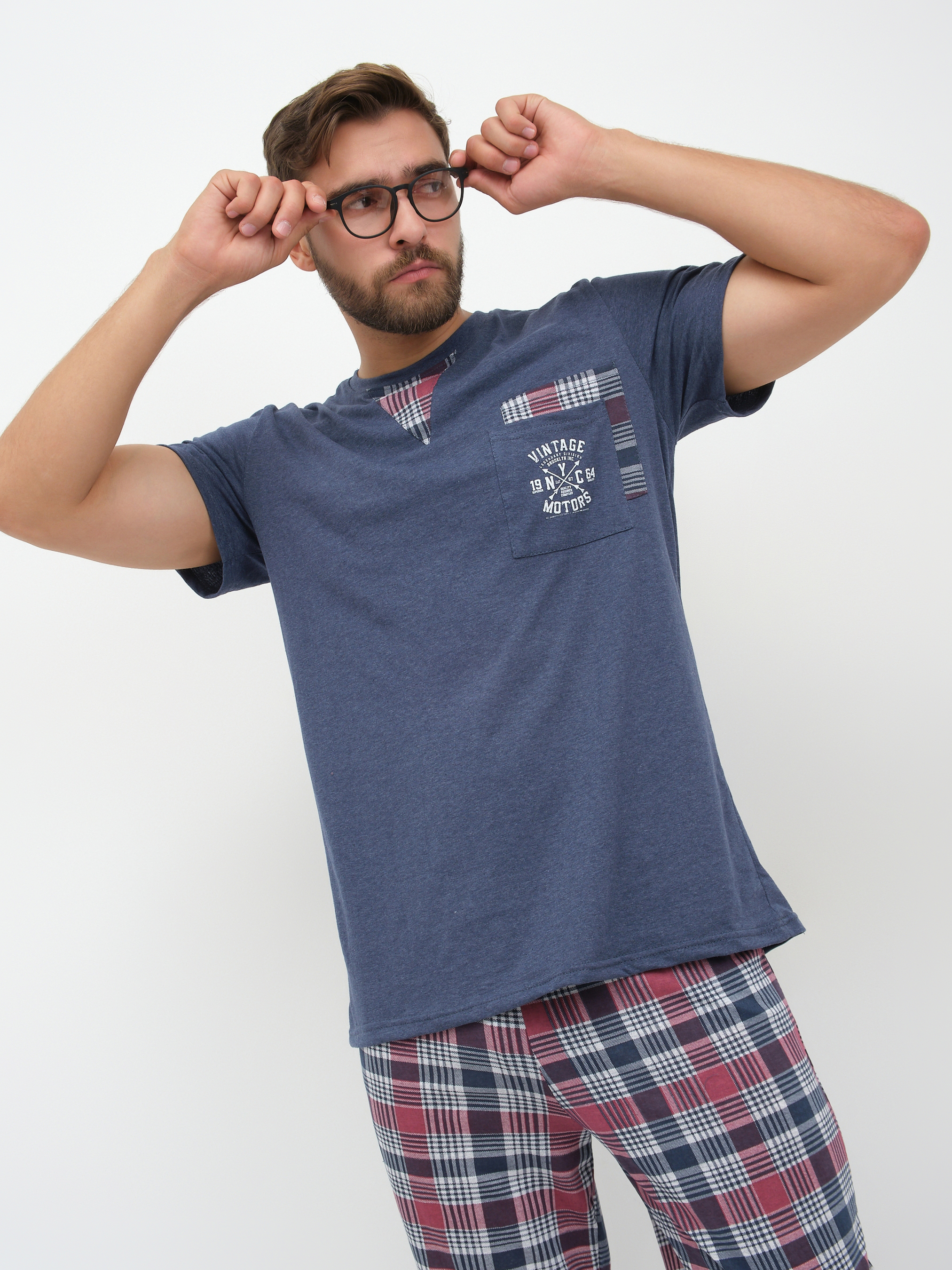 Пижама мужская Олимп кор.рукав бордо/клетка есть в наличии