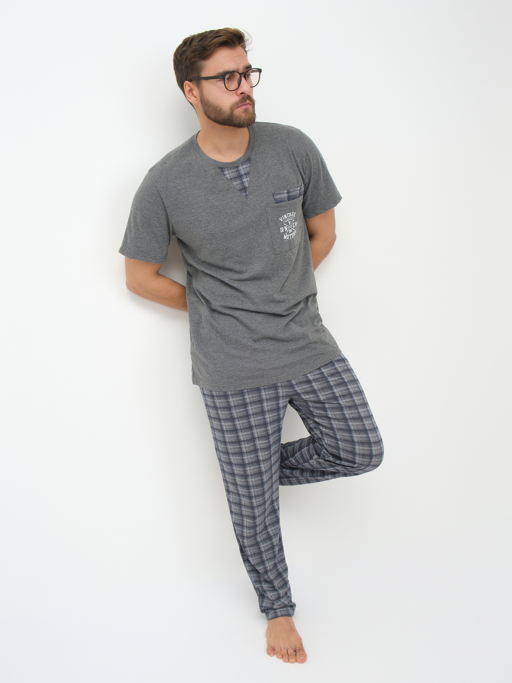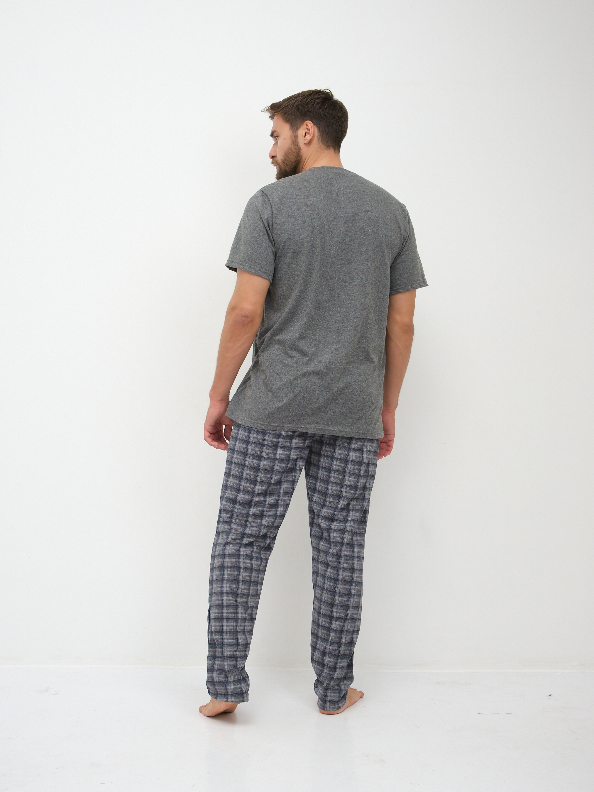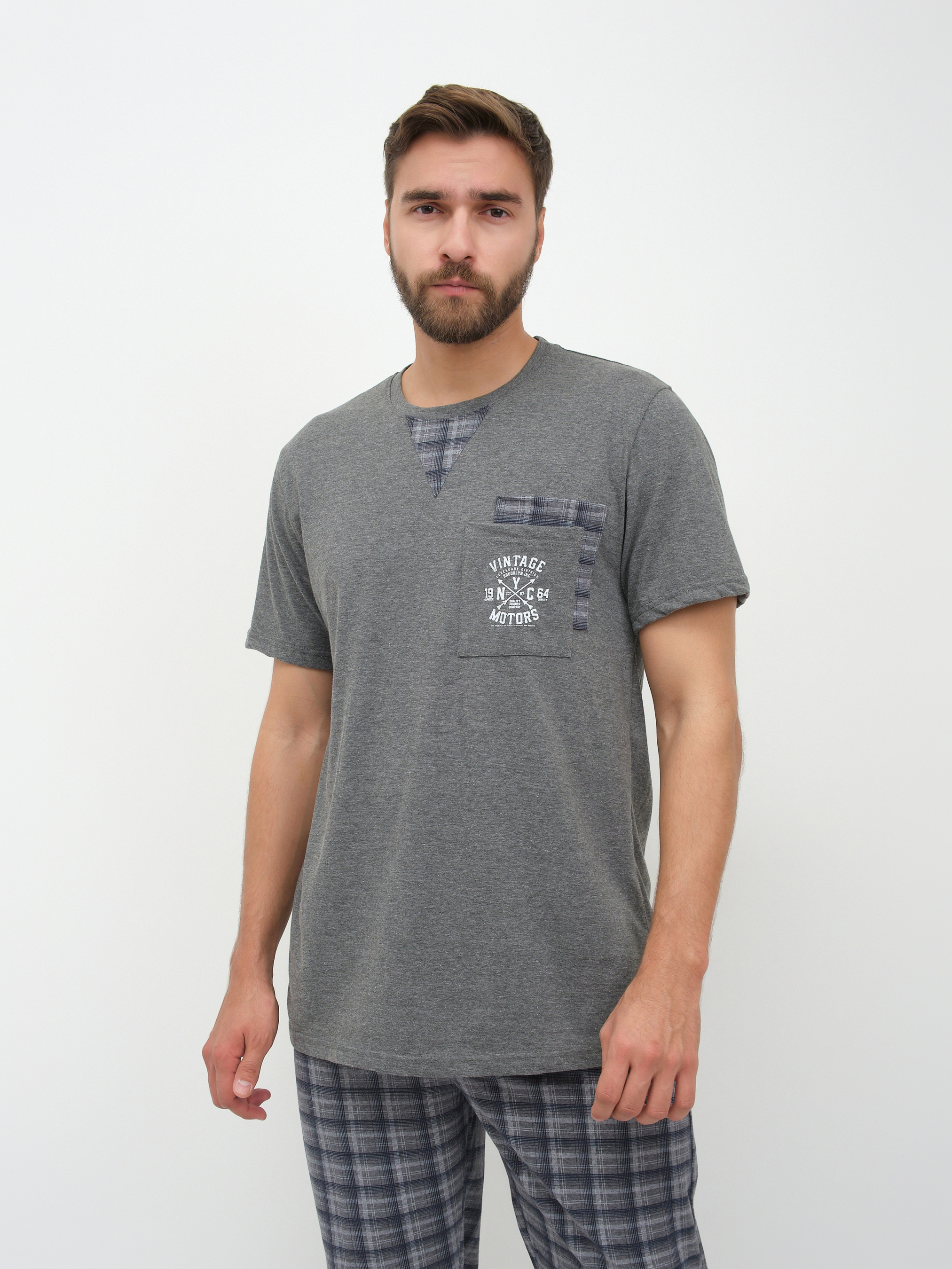 Пижама мужская Олимп кор.рукав серо-синий/клетка есть в наличии