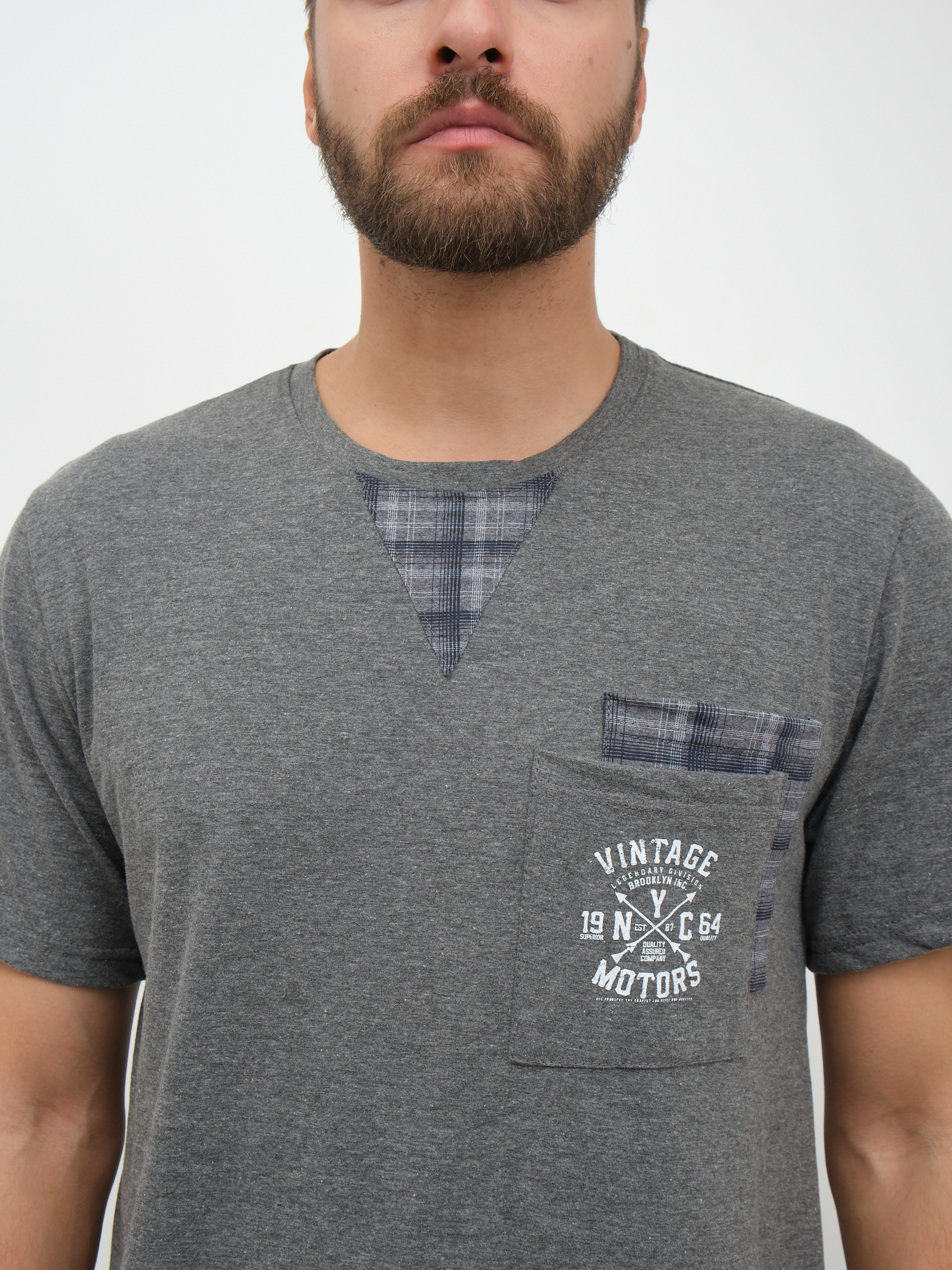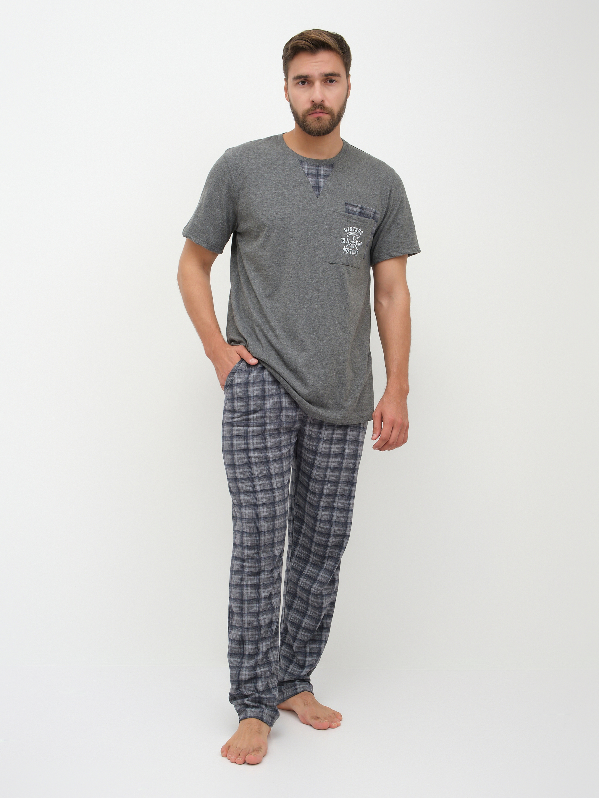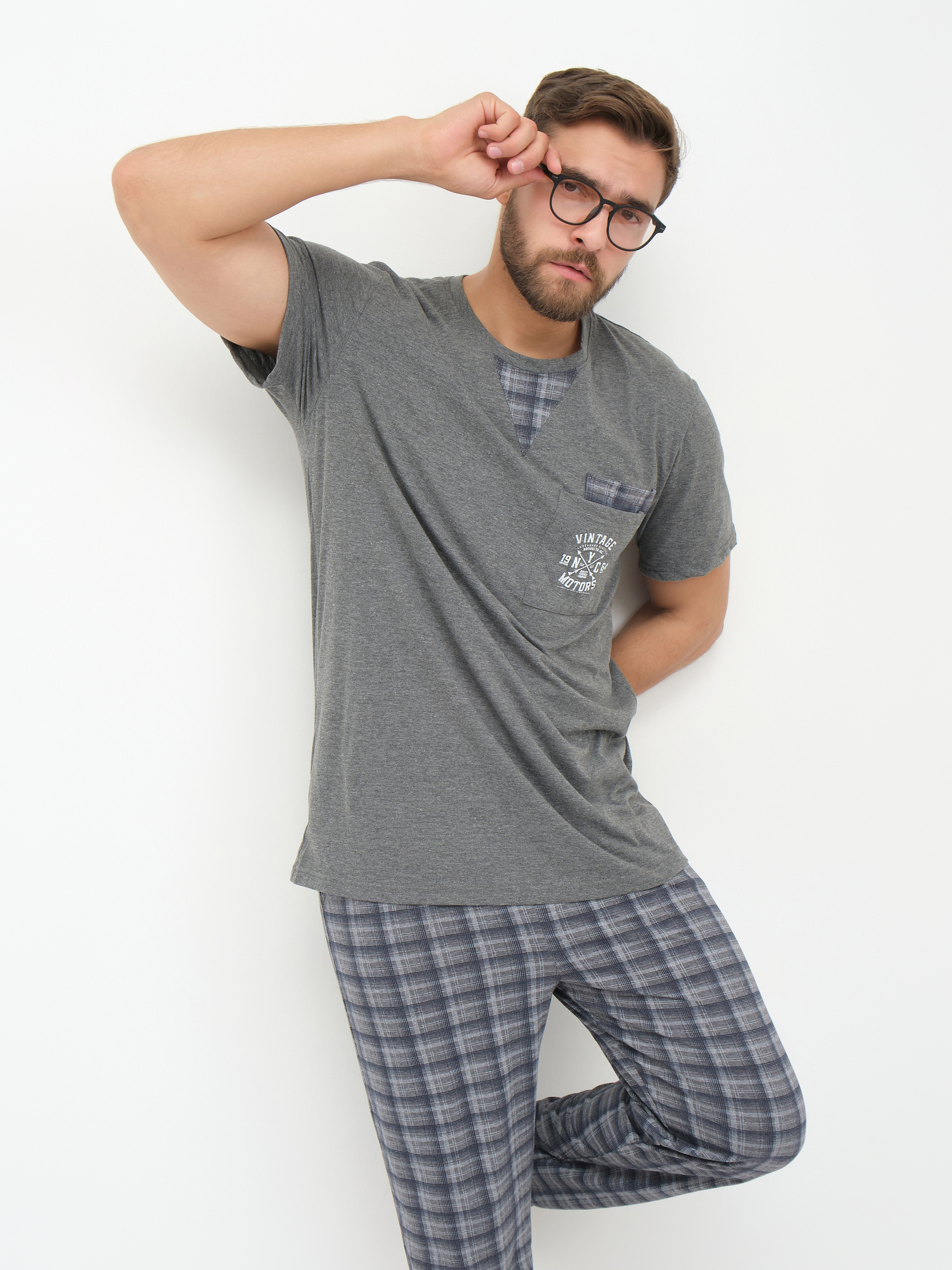 Пижама мужская Олимп кор.рукав серо-синий/клетка есть в наличии