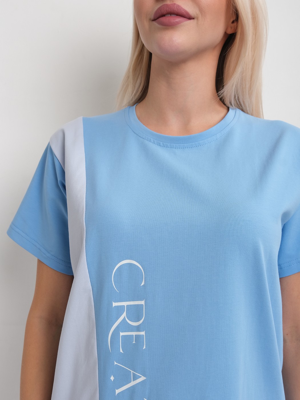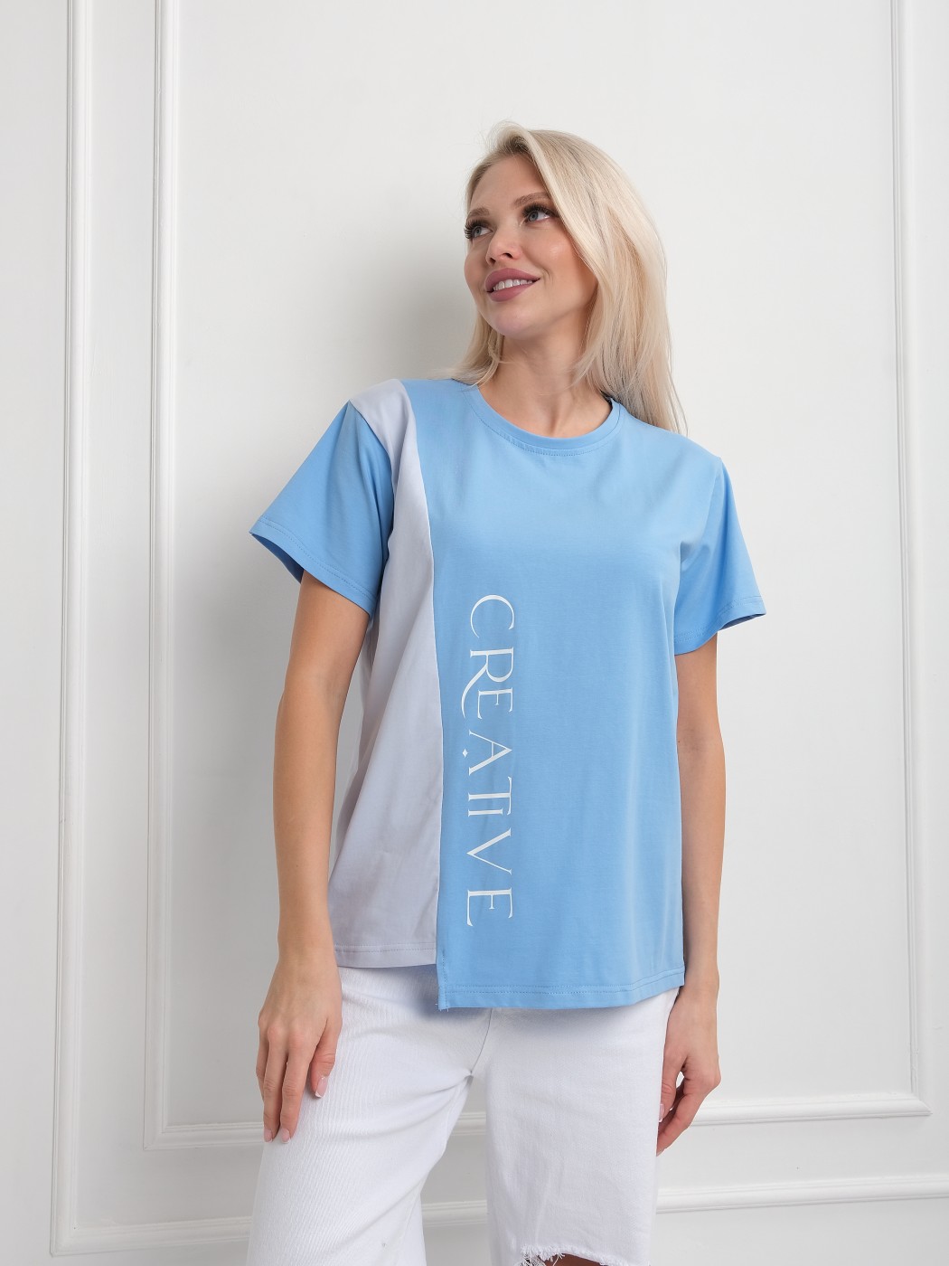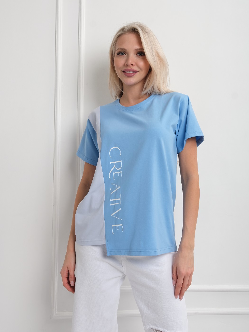 Футболка женская Креатив голубой/св.голубой есть в наличии