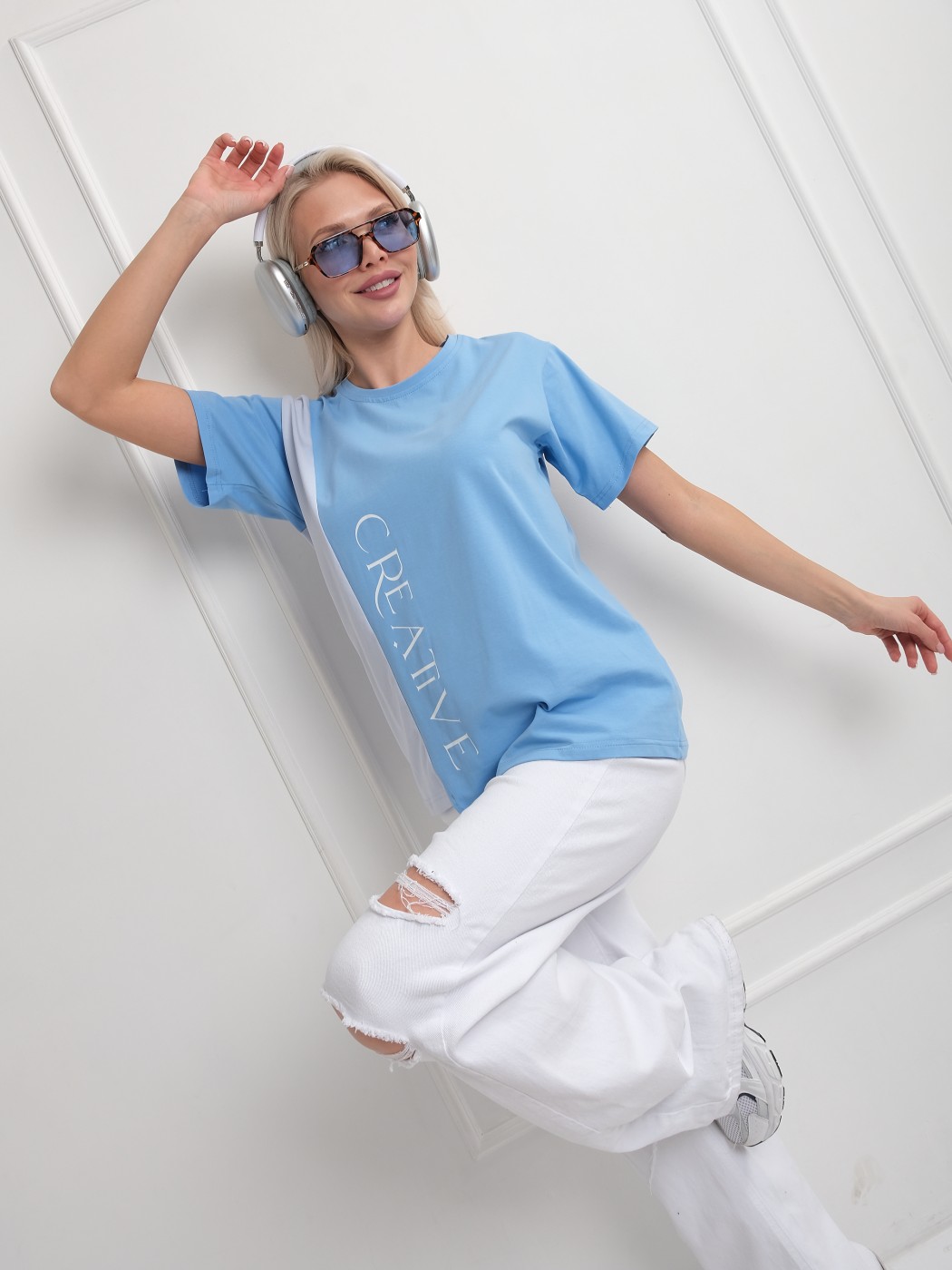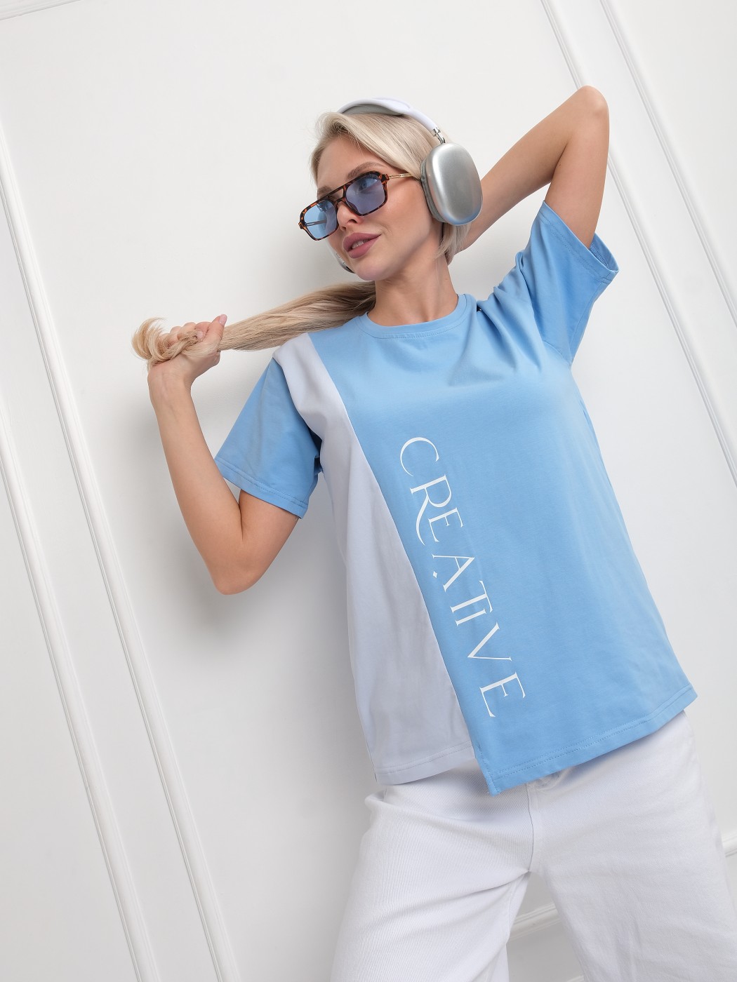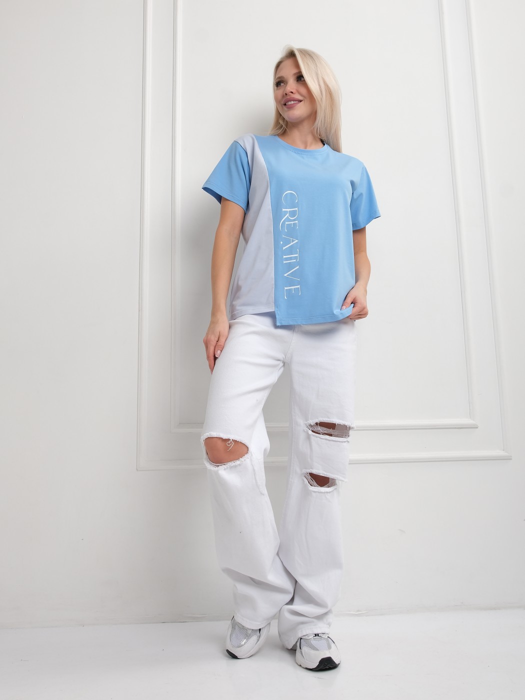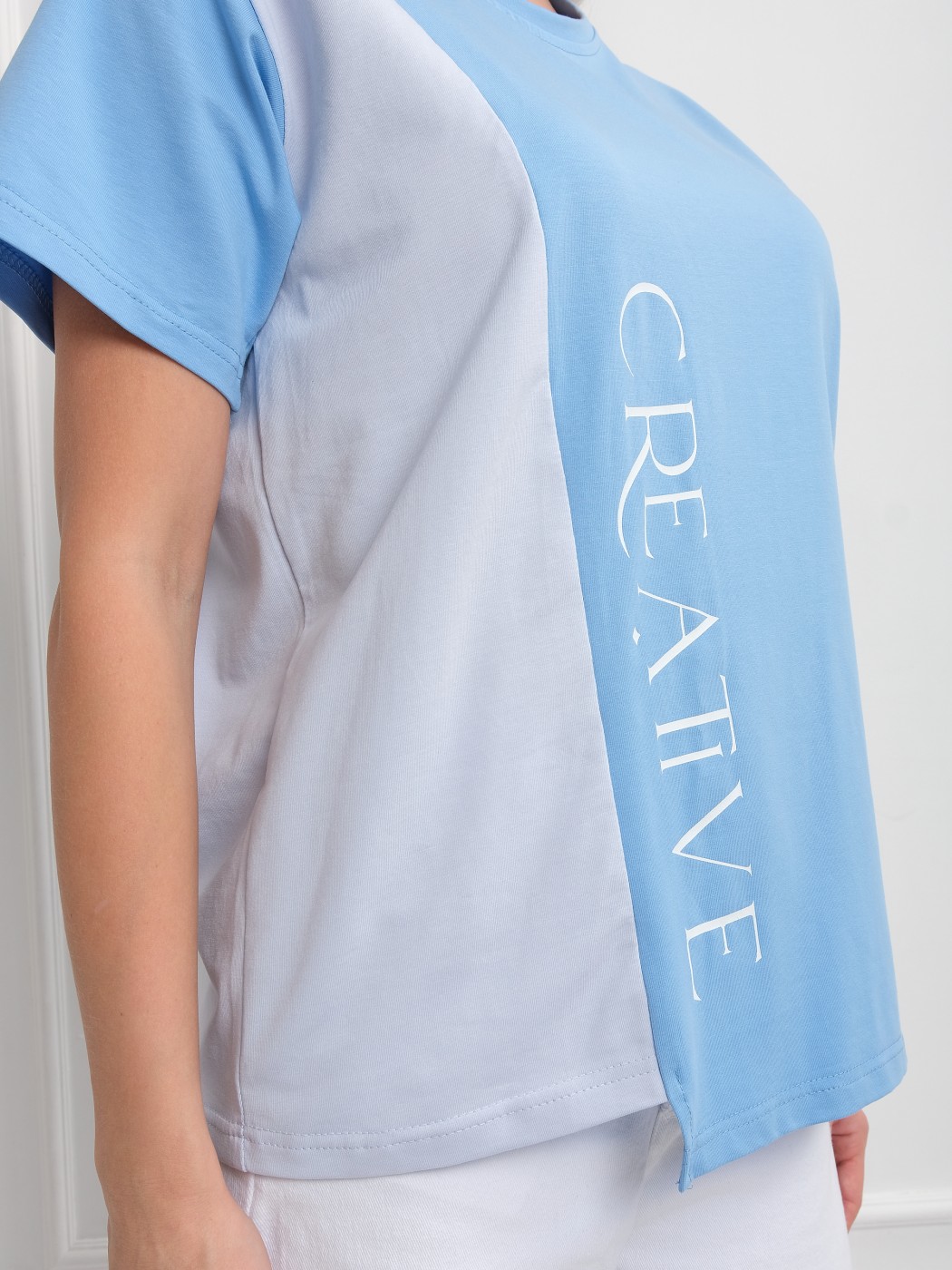 Футболка женская Креатив голубой/св.голубой есть в наличии
