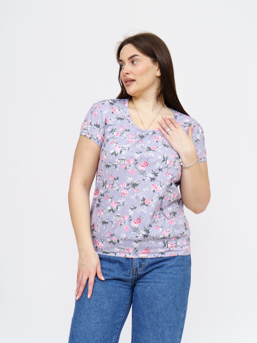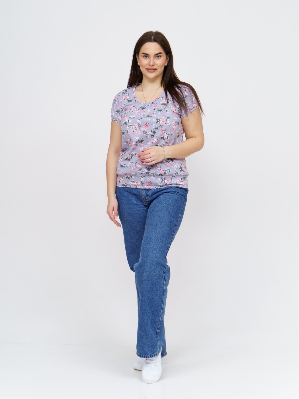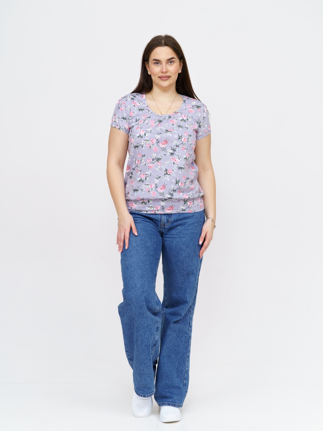 Футболка Фонарик х/б серый/цветы есть в наличии