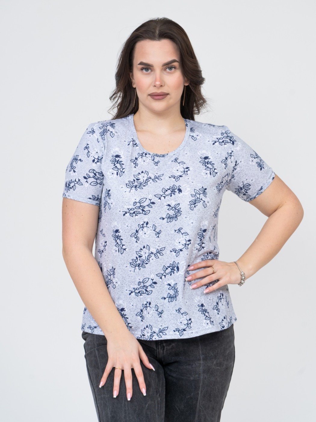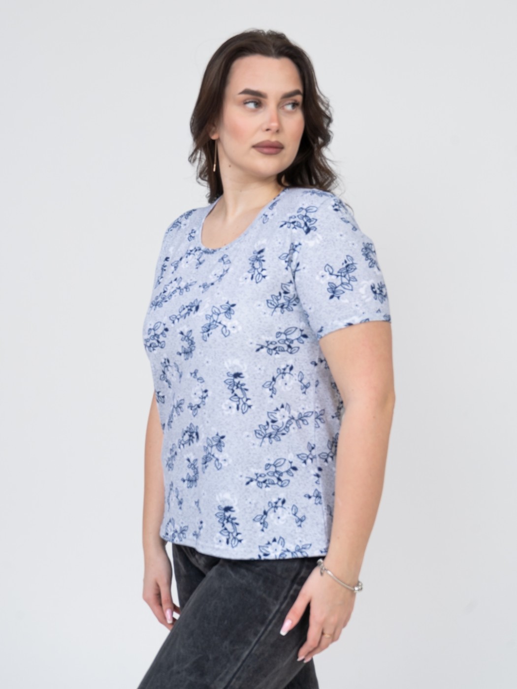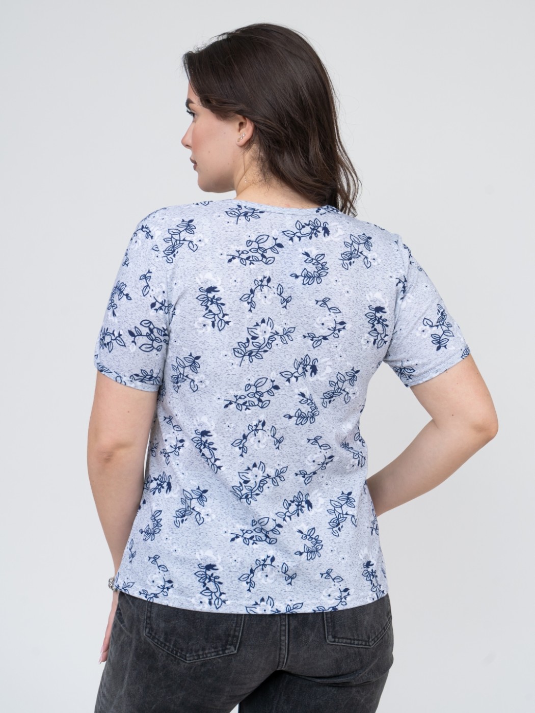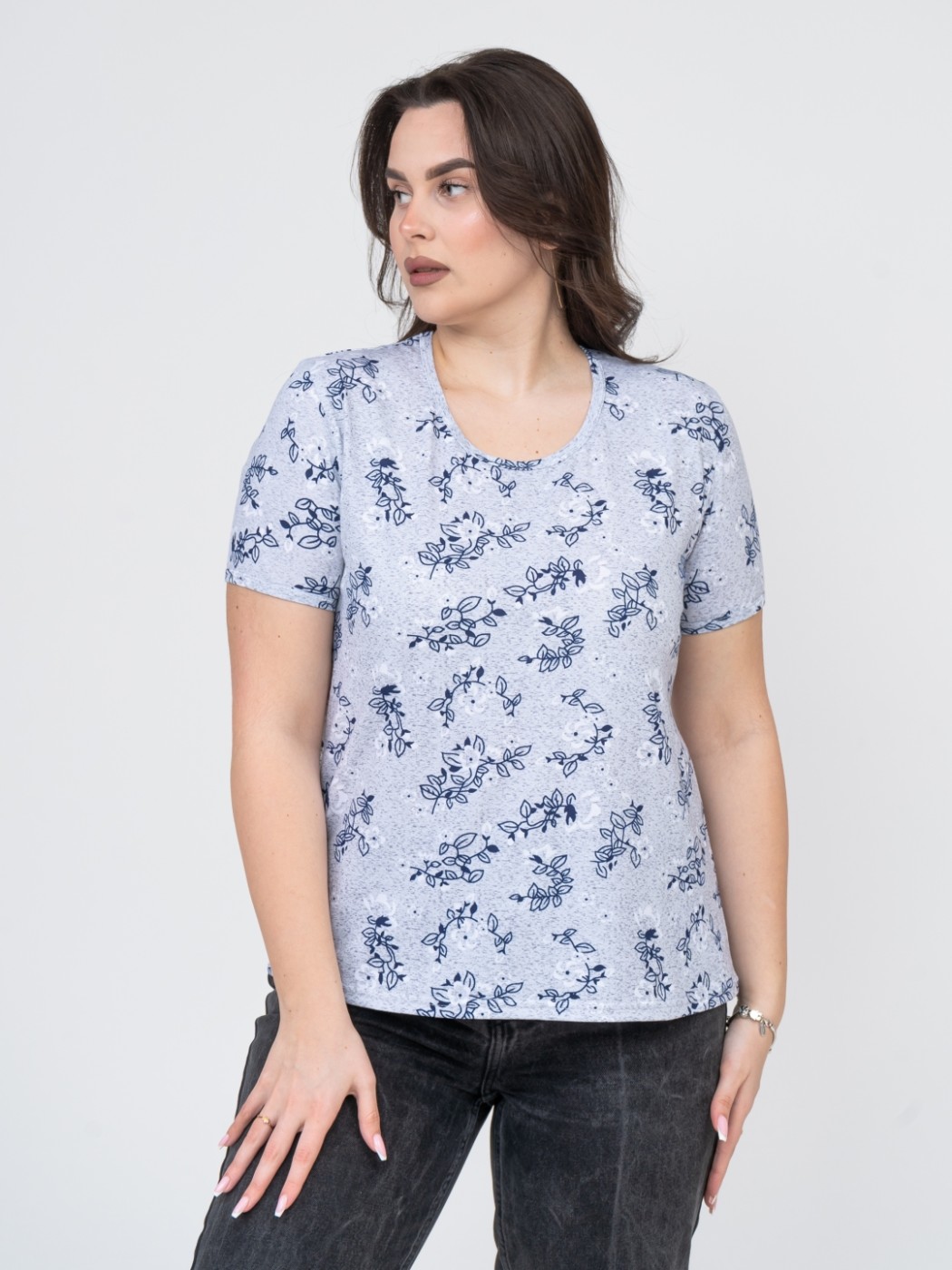 Футболка женская Незабудка серый/цветы есть в наличии