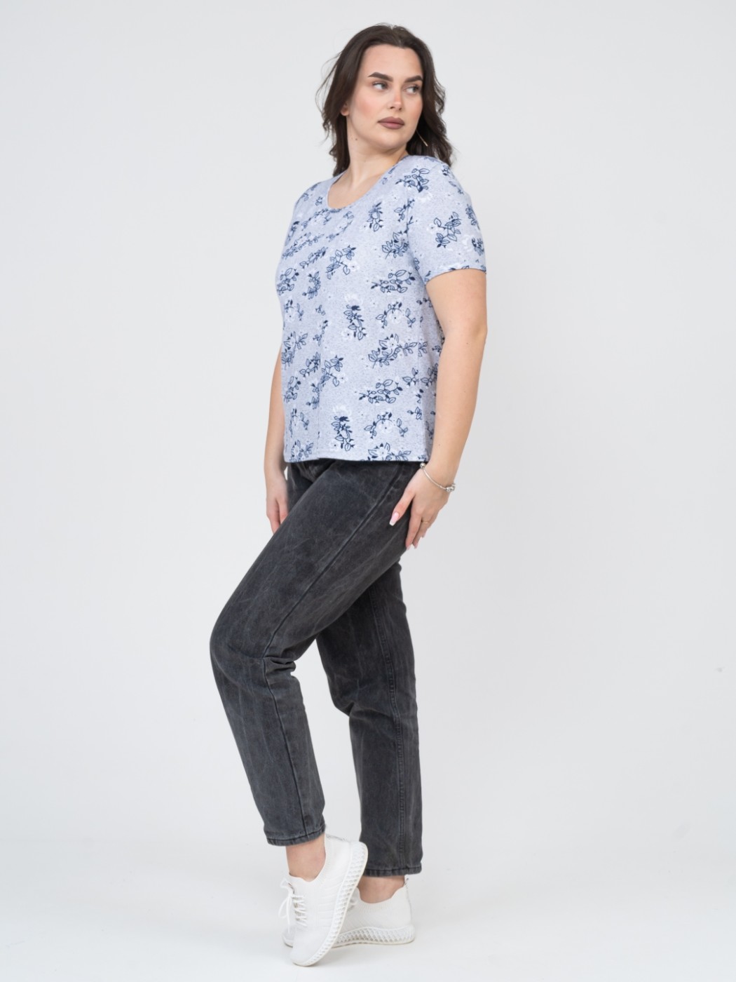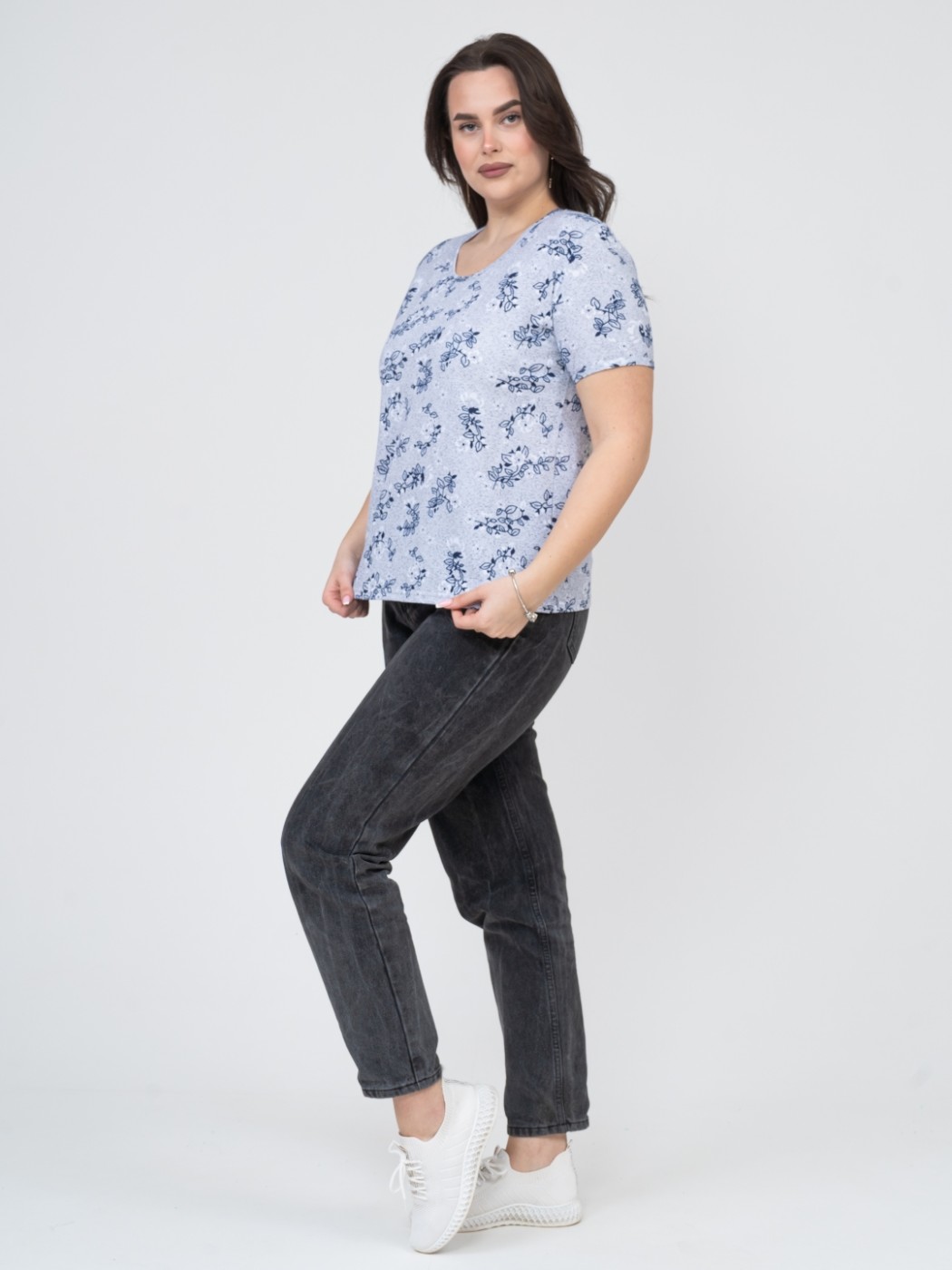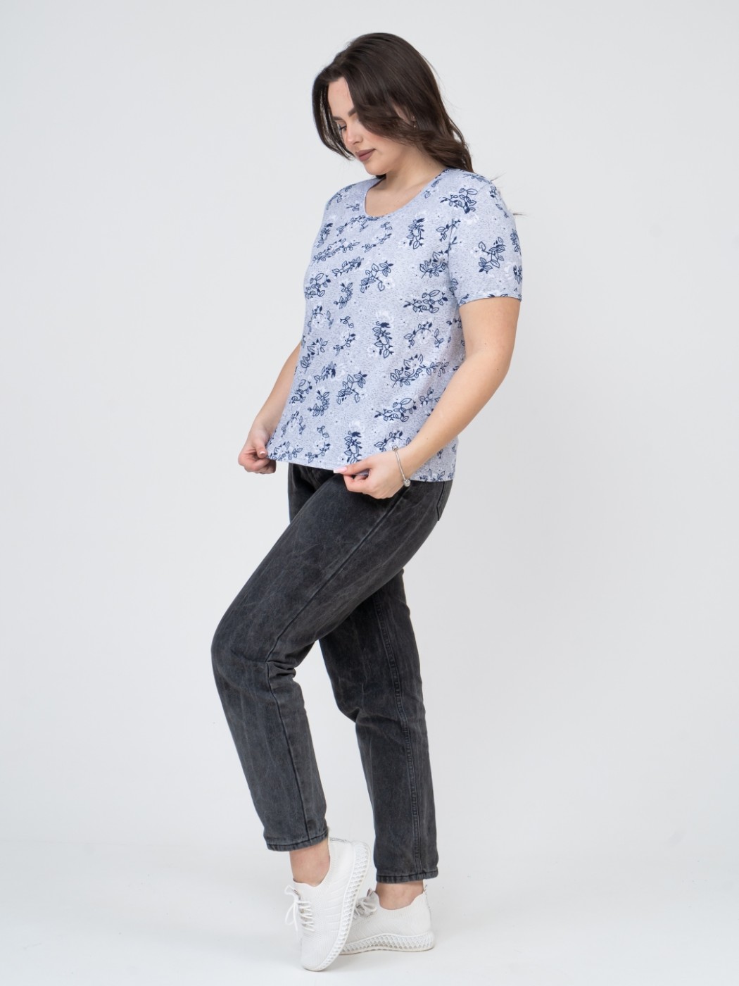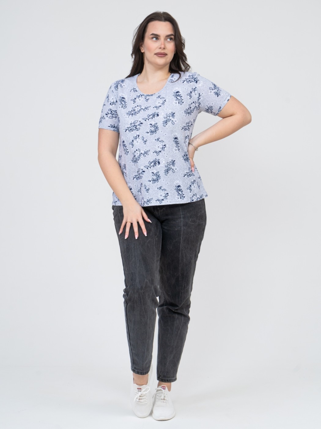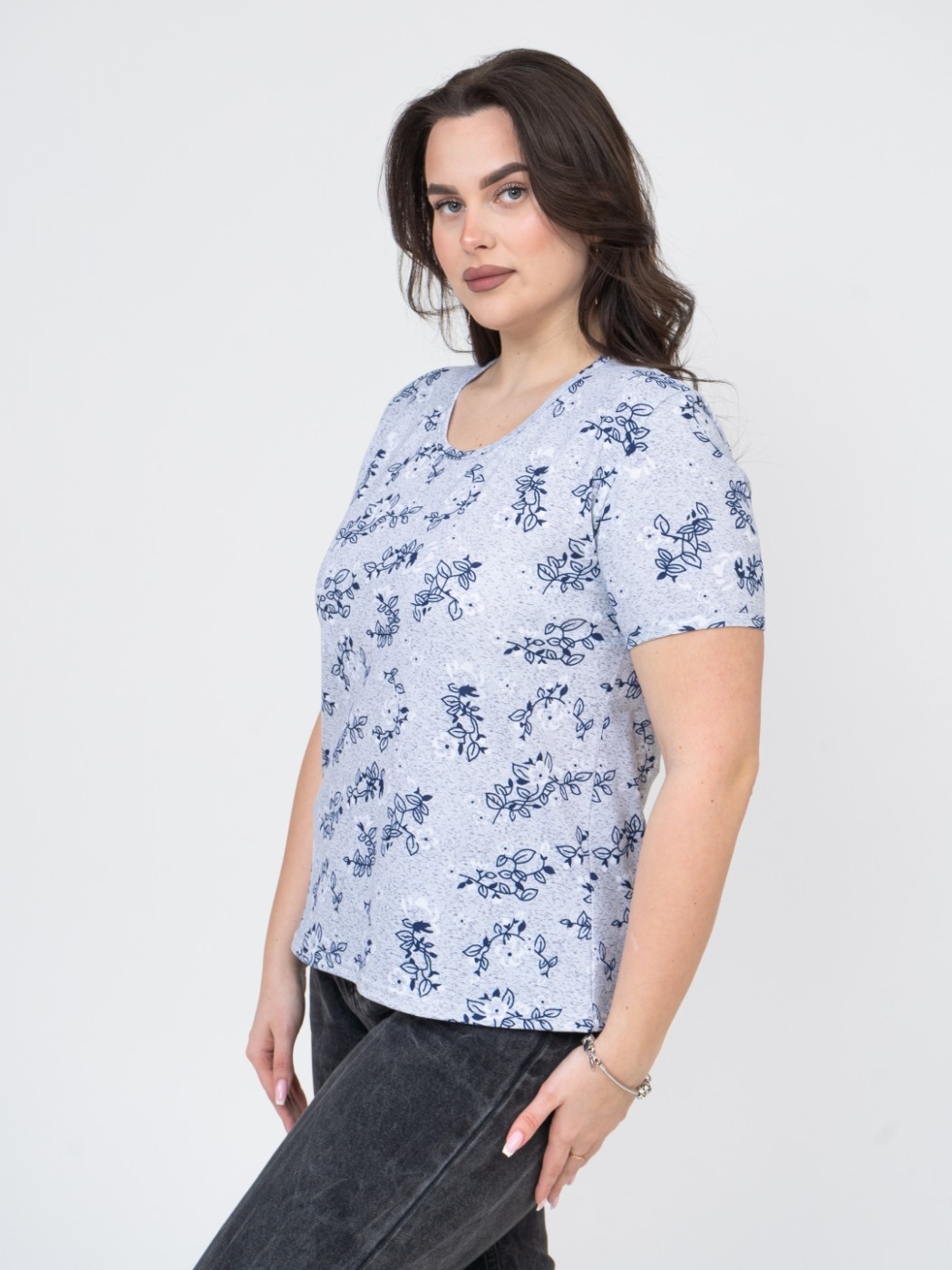 Футболка женская Незабудка серый/цветы есть в наличии