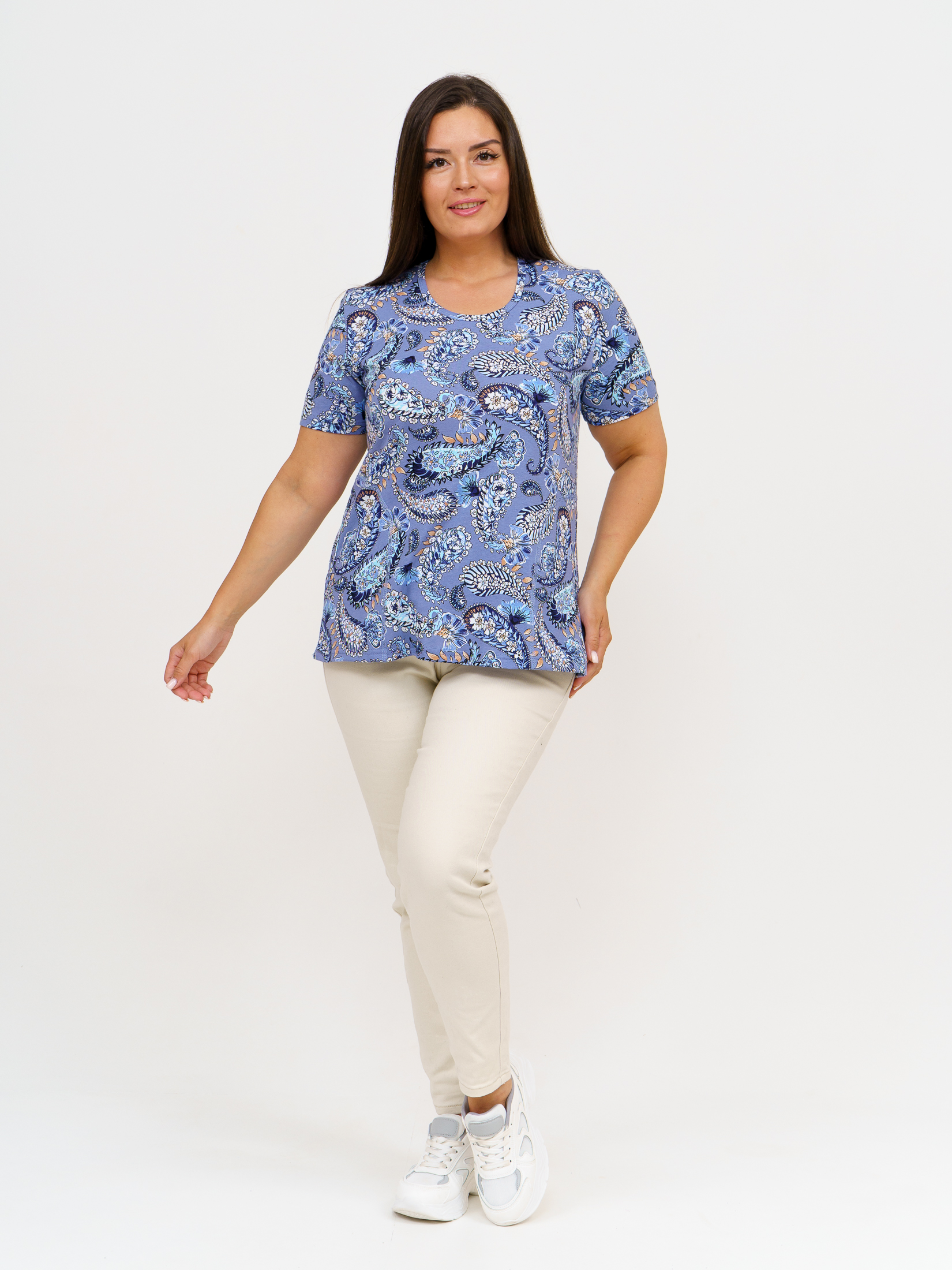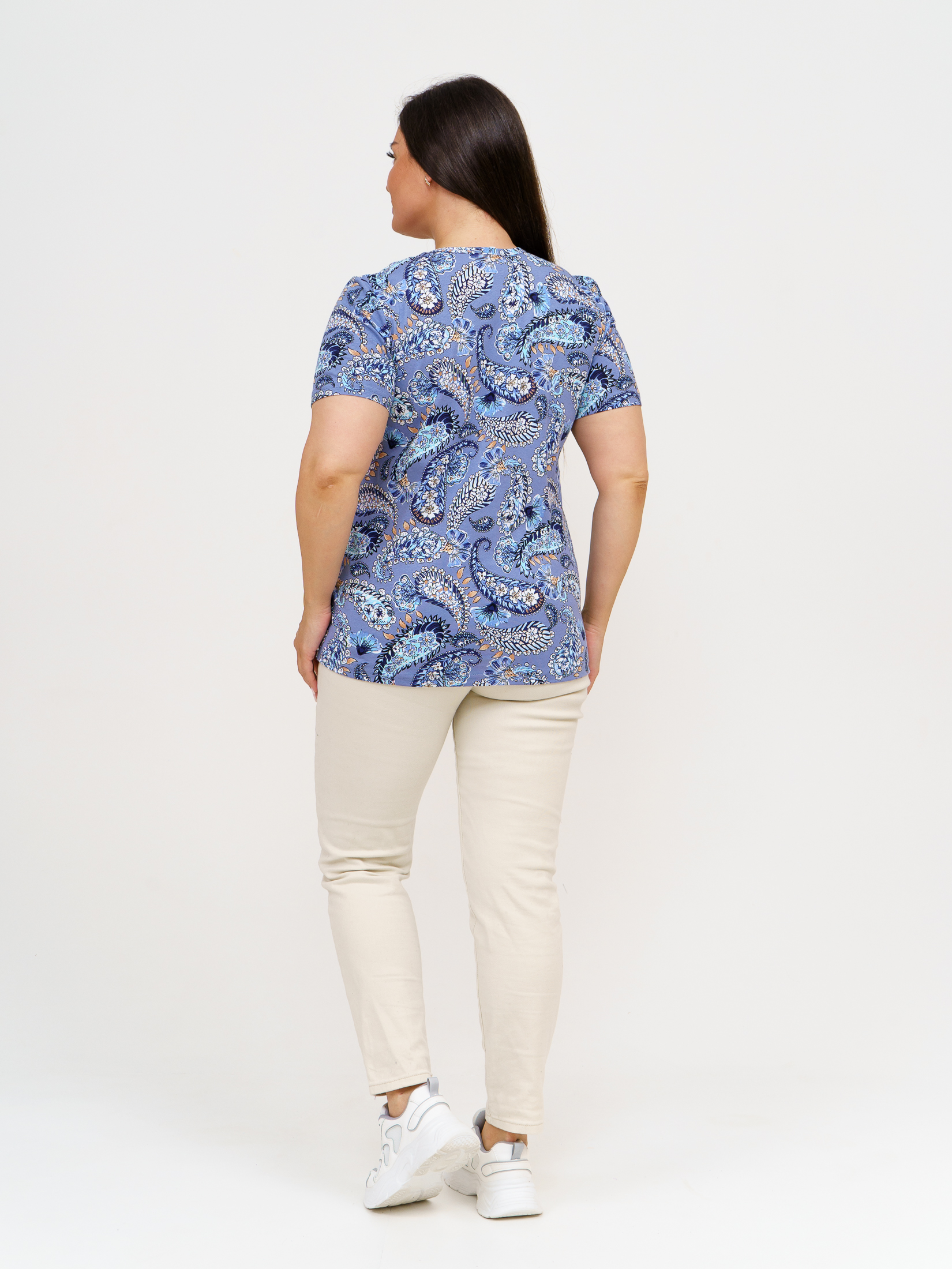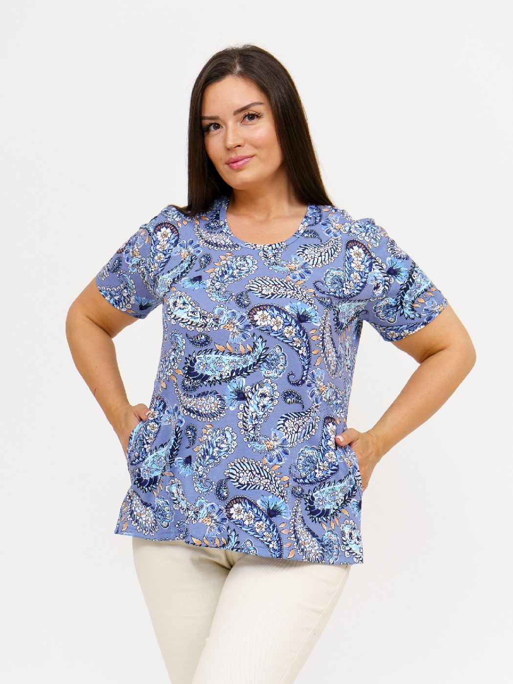 Футболка женская с карманами индиго/узор есть в наличии