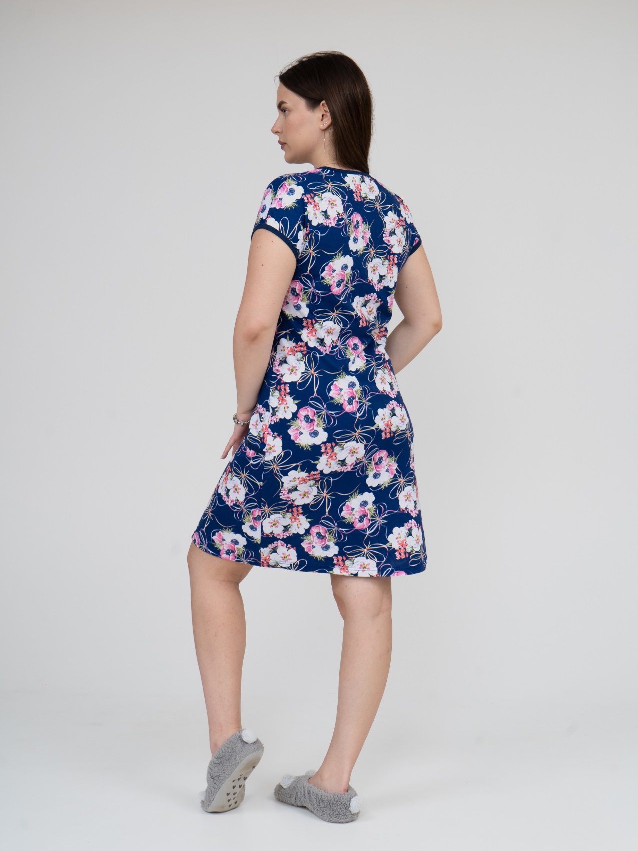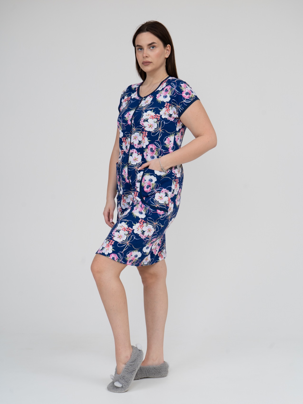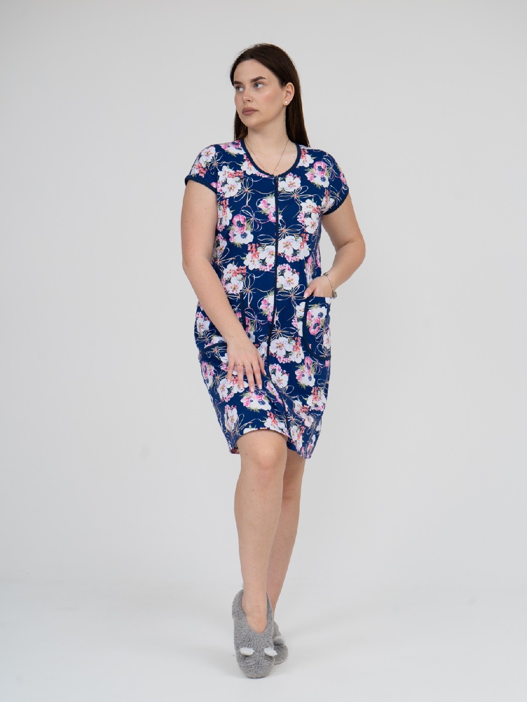 Халат Кира синий/цветы есть в наличии