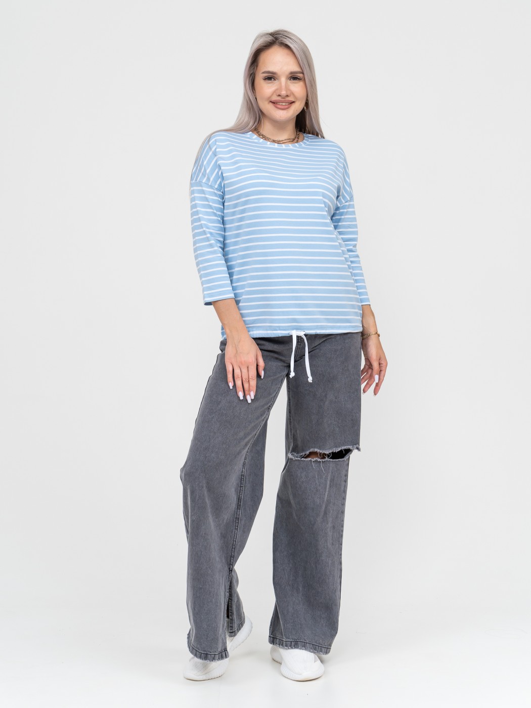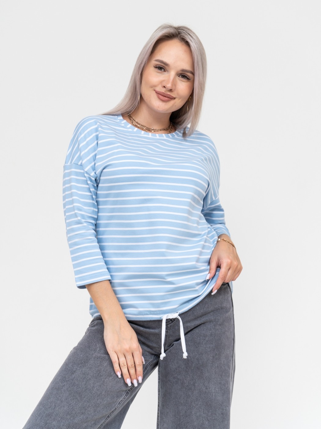 Лонгслив Николь голубой/полоса есть в наличии