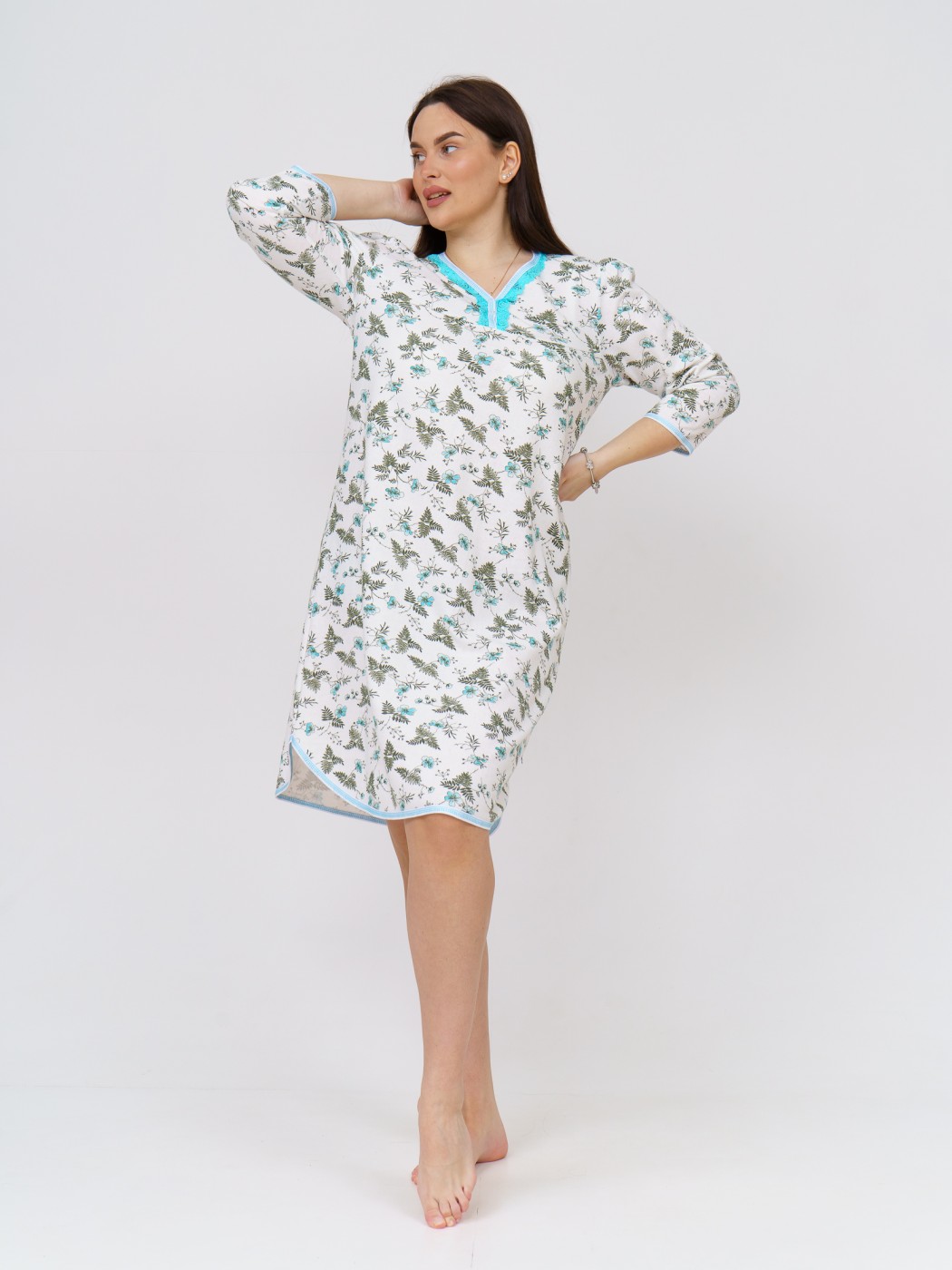 Ночная сорочка Камелия набивная белый/бирюза есть в наличии
