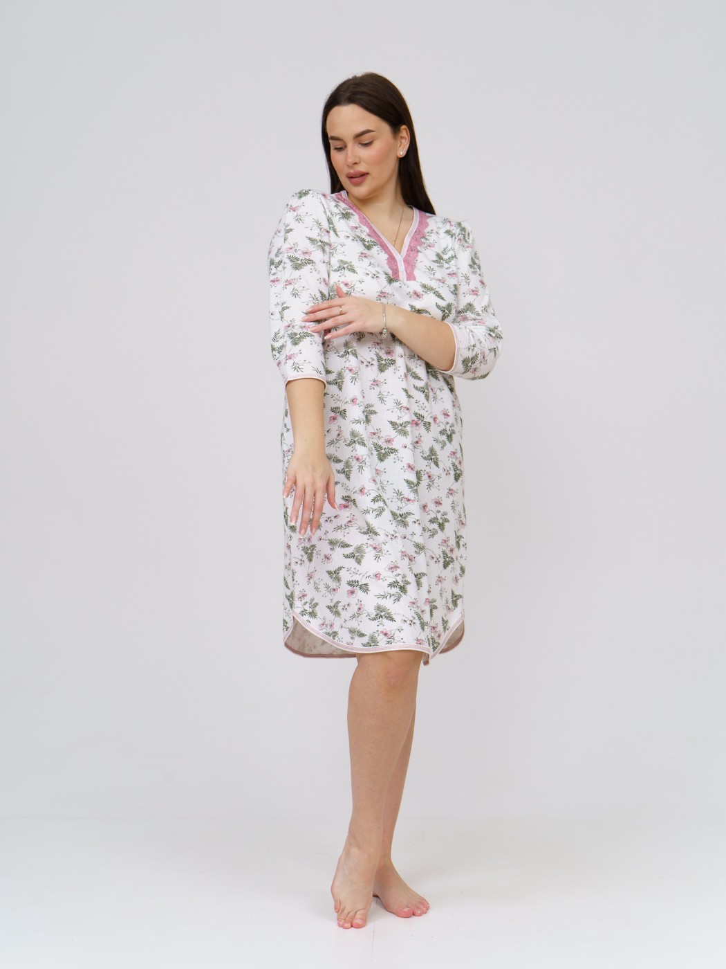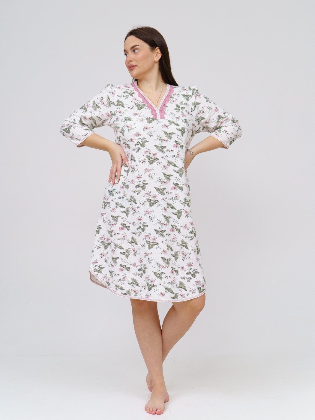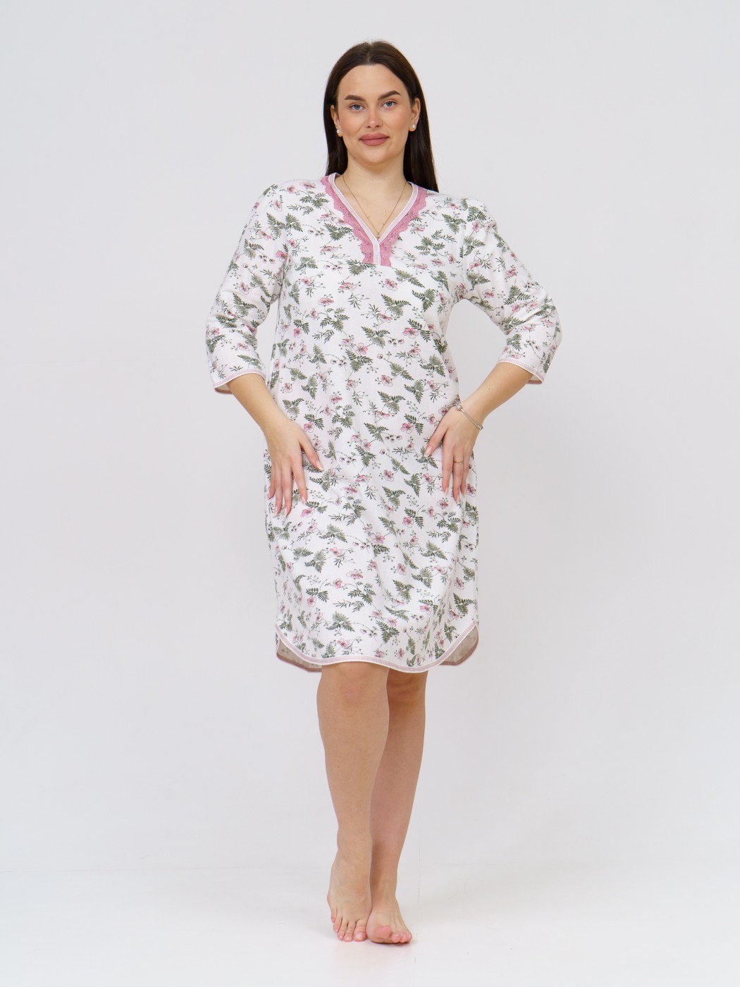 Ночная сорочка Камелия набивная белый/розы есть в наличии