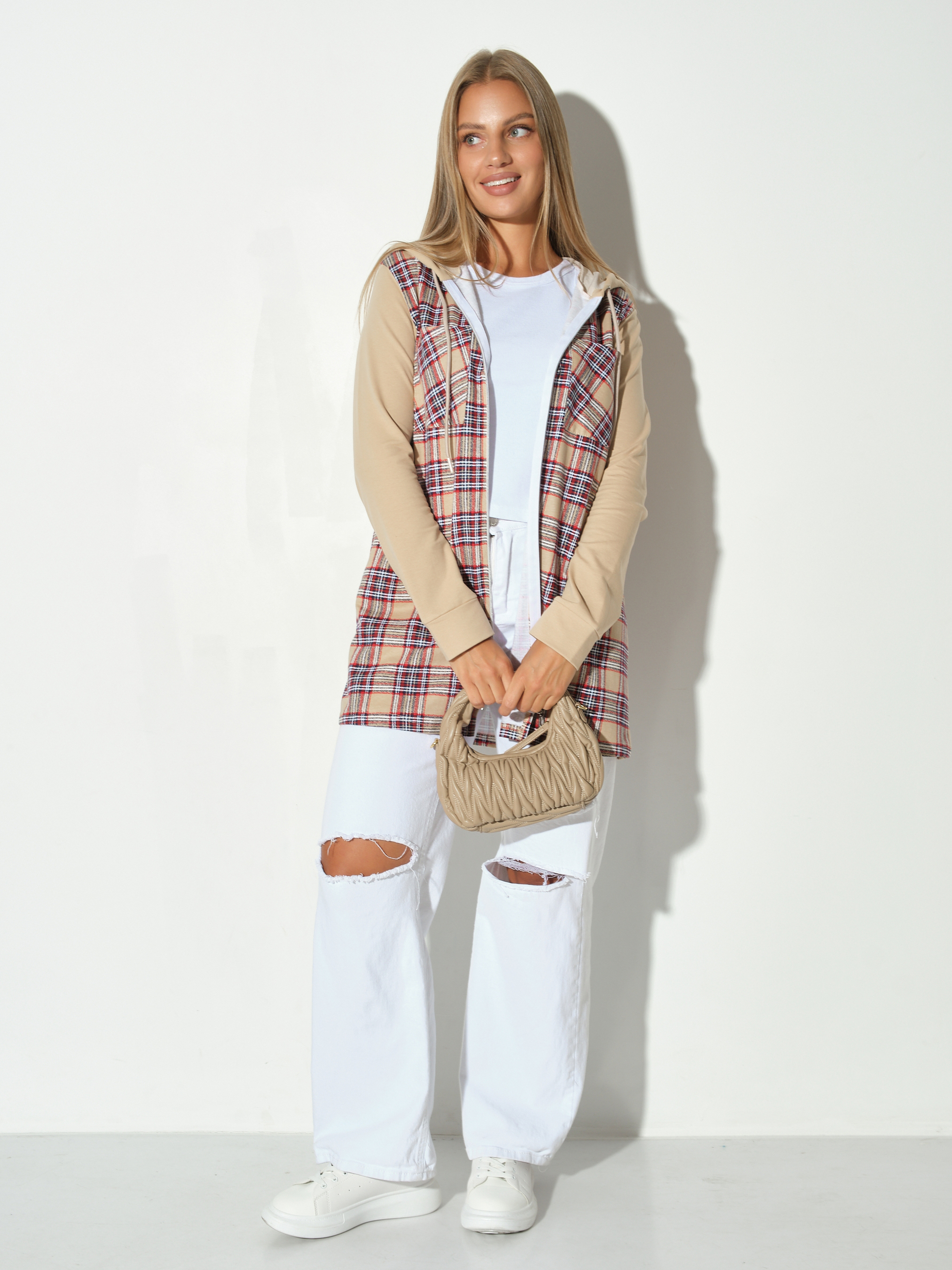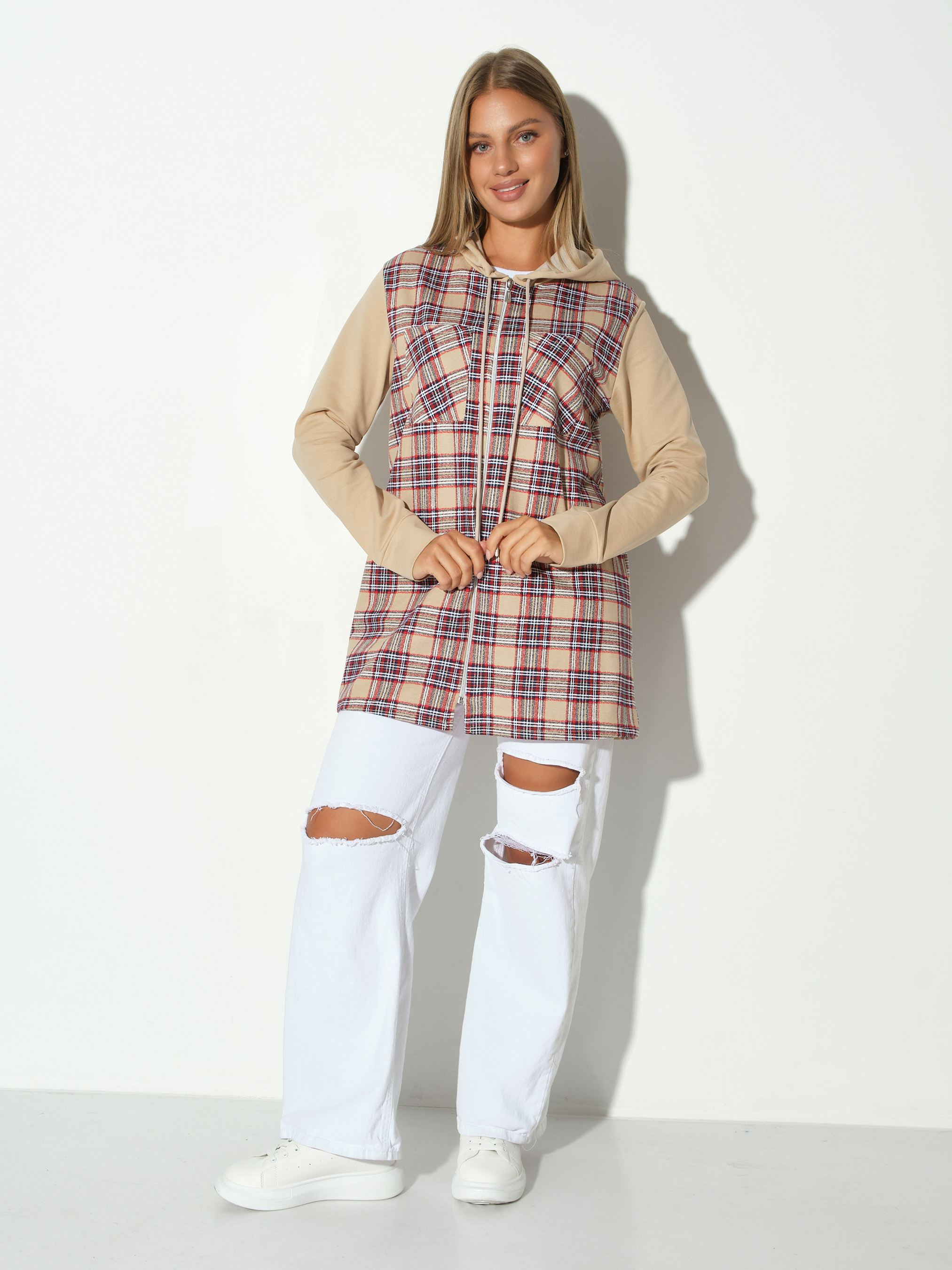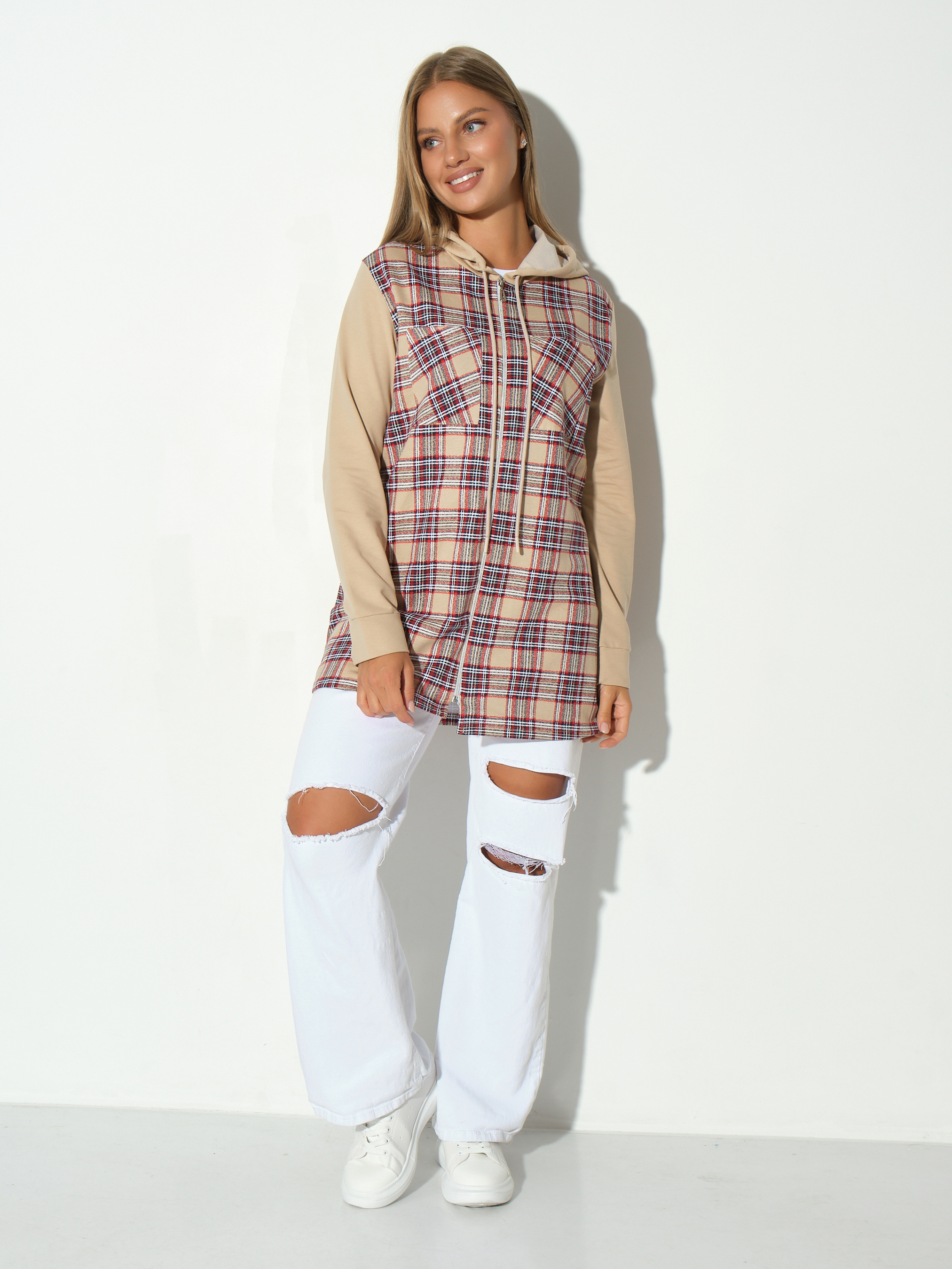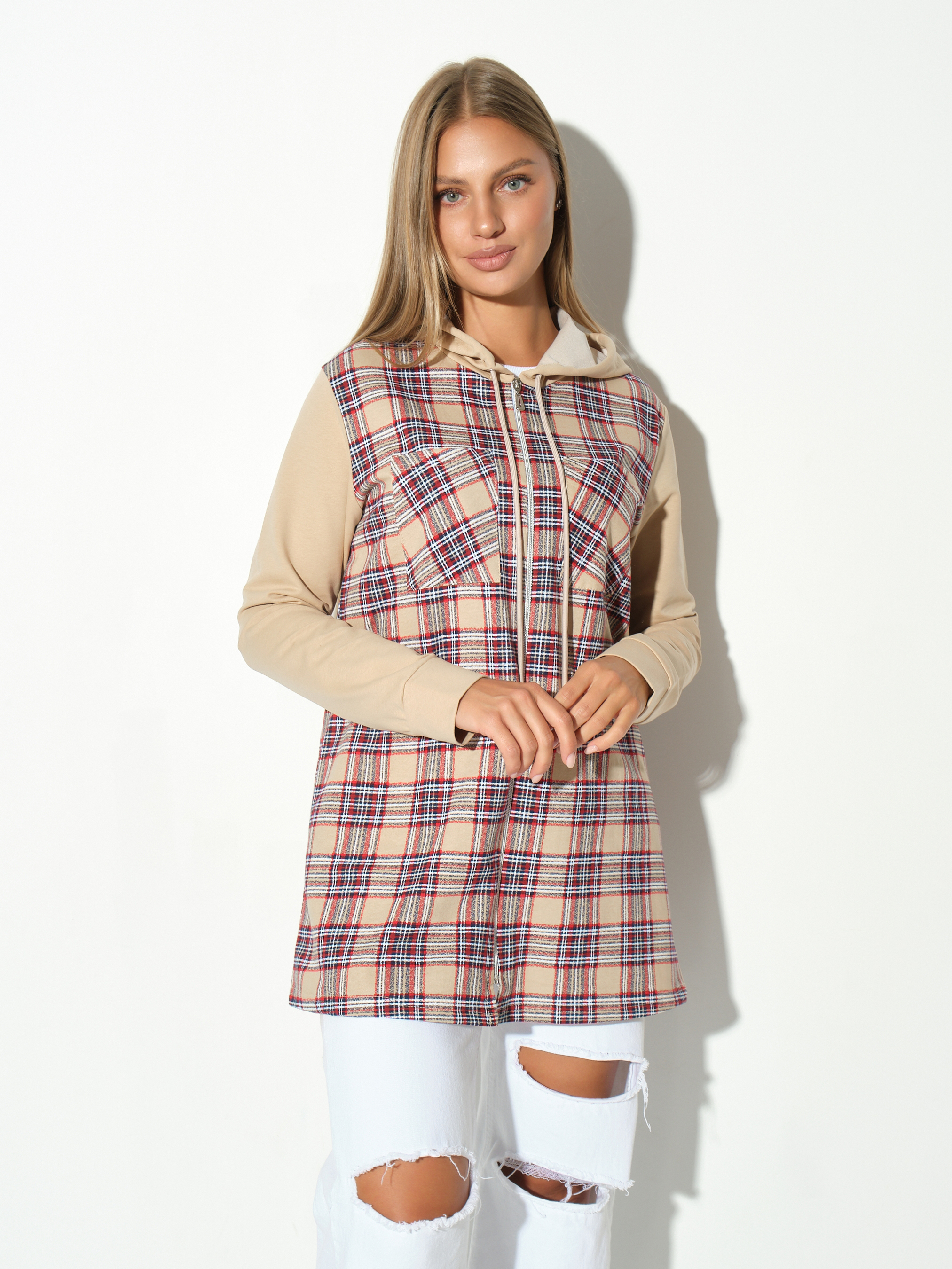 Рубашка жен. Гармония бежевый/клетка есть в наличии