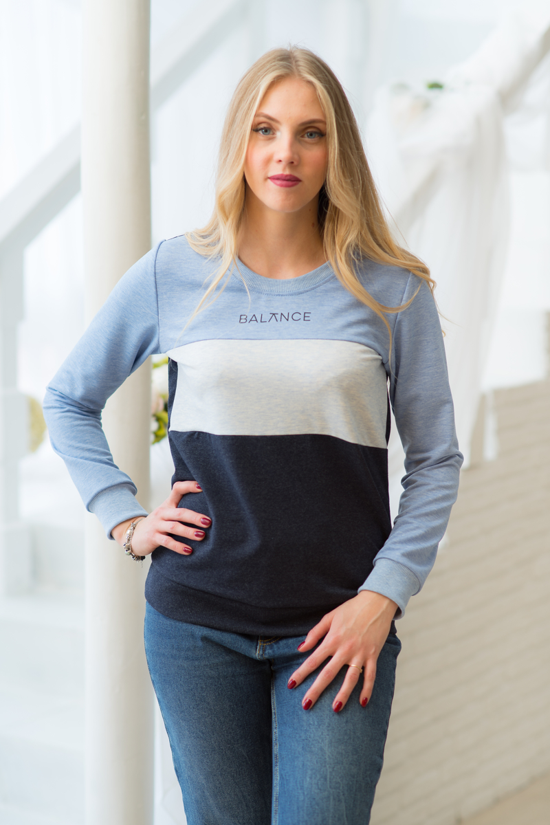 Толстовка женская Триколор синий/меланж есть в наличии