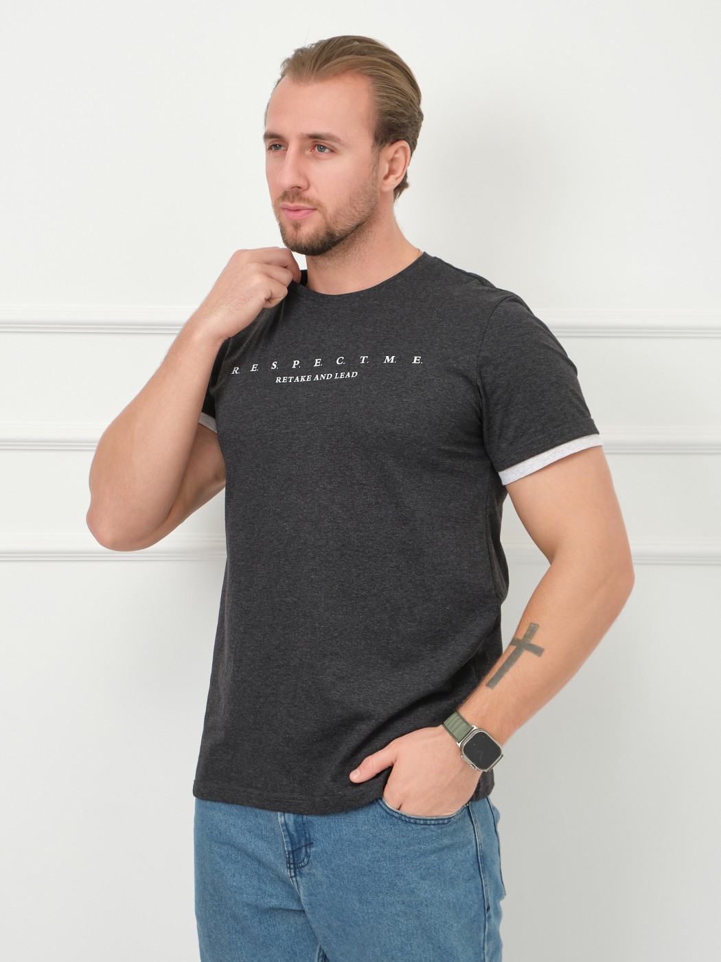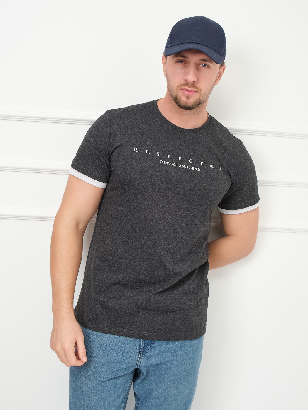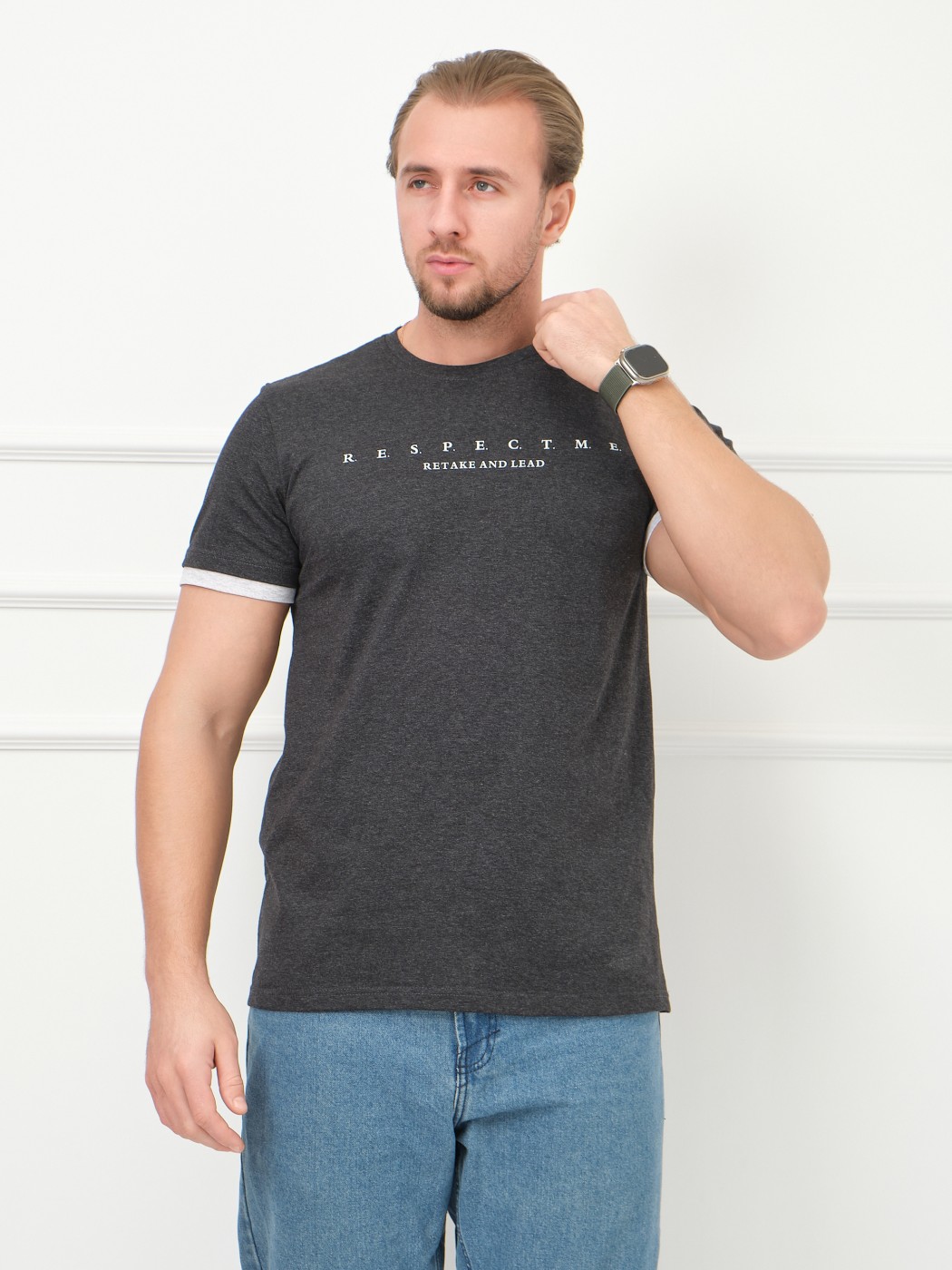 Футболка мужская Респект антрацит/меланж есть в наличии