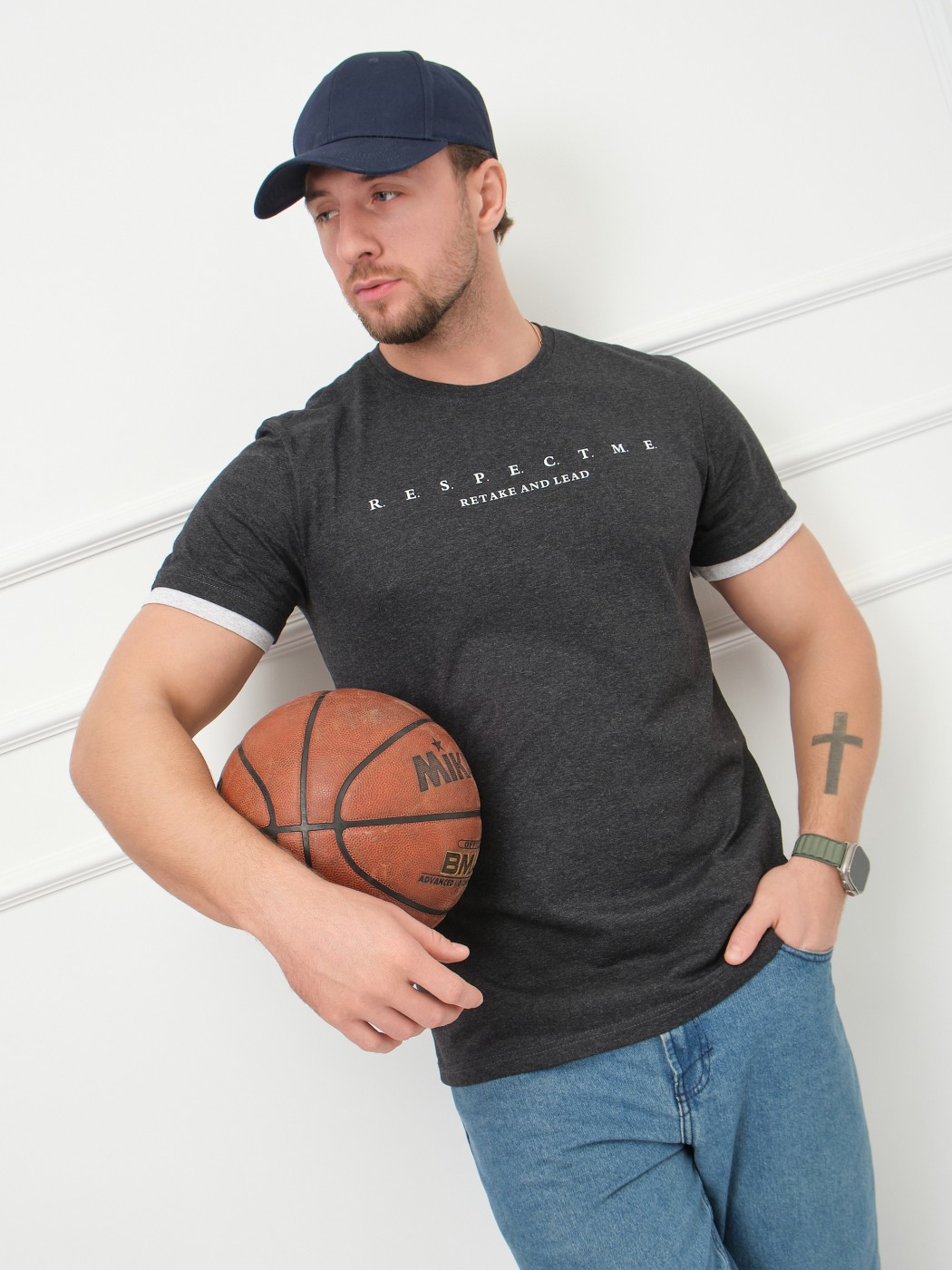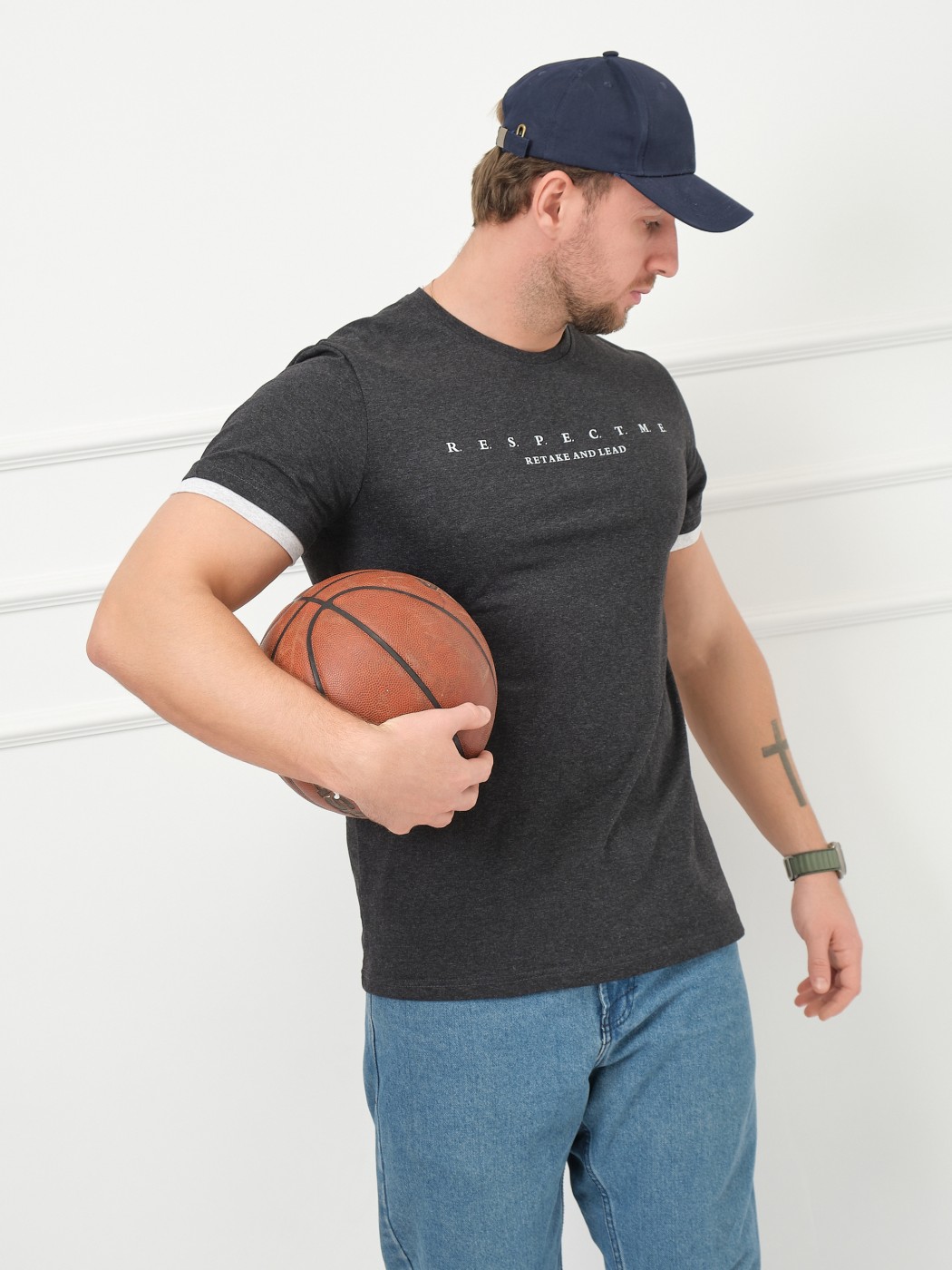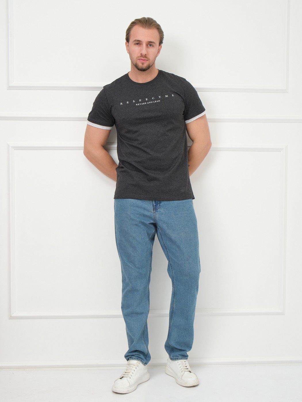 Футболка мужская Респект антрацит/меланж есть в наличии