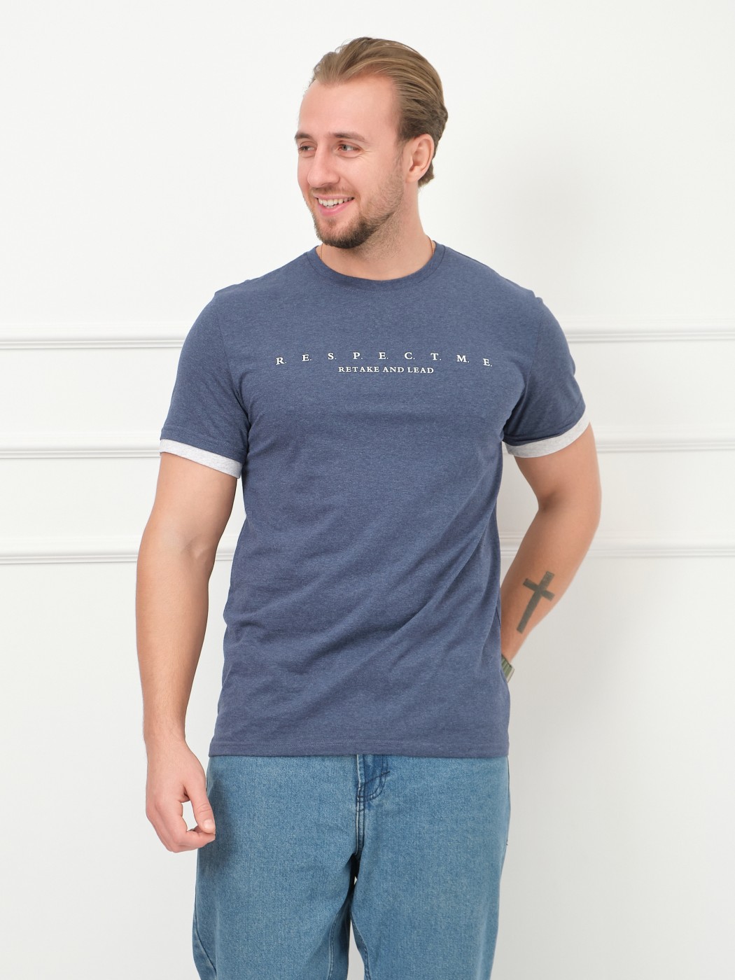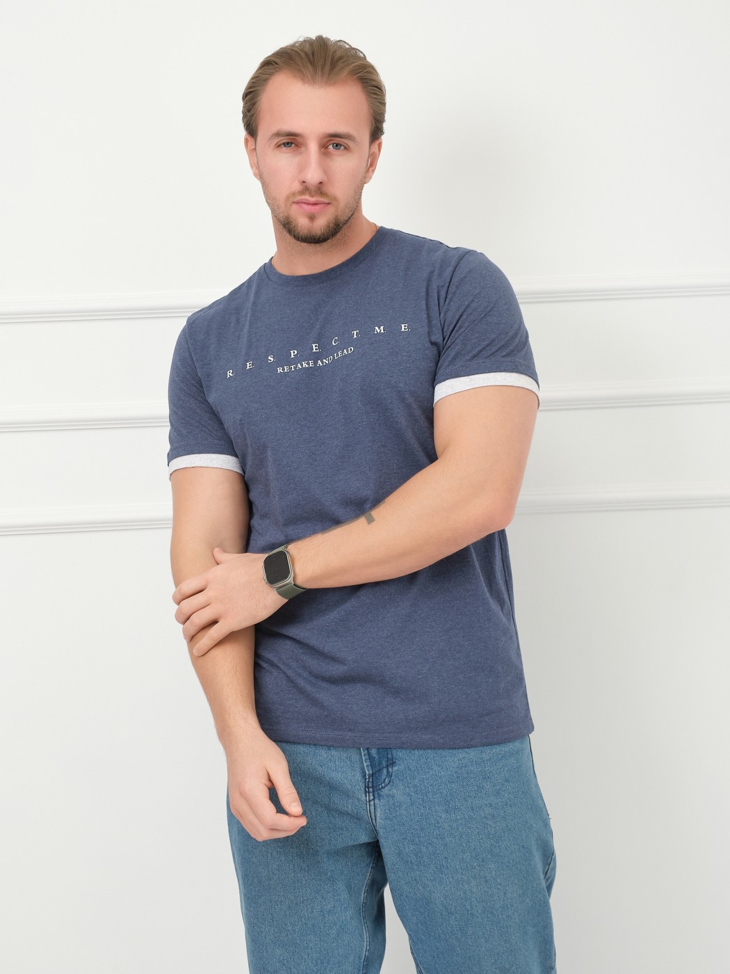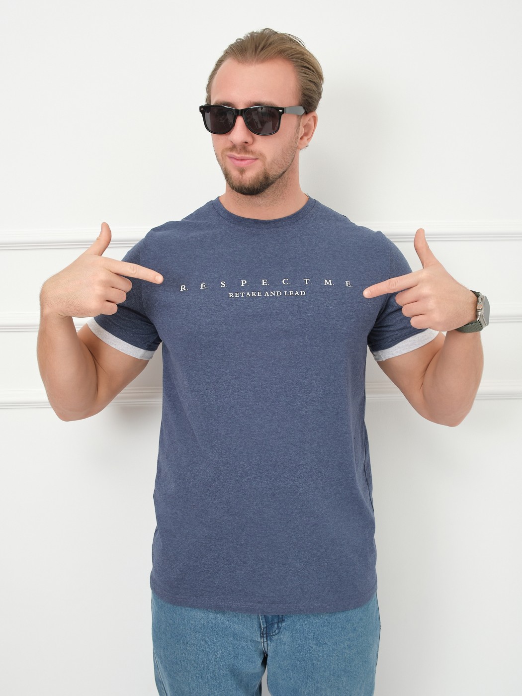 Футболка мужская Респект индиго/меланж есть в наличии