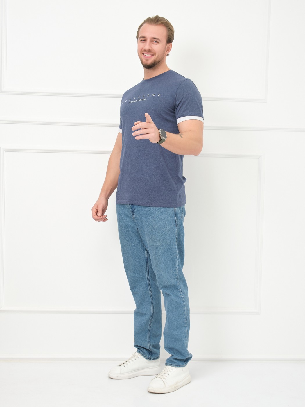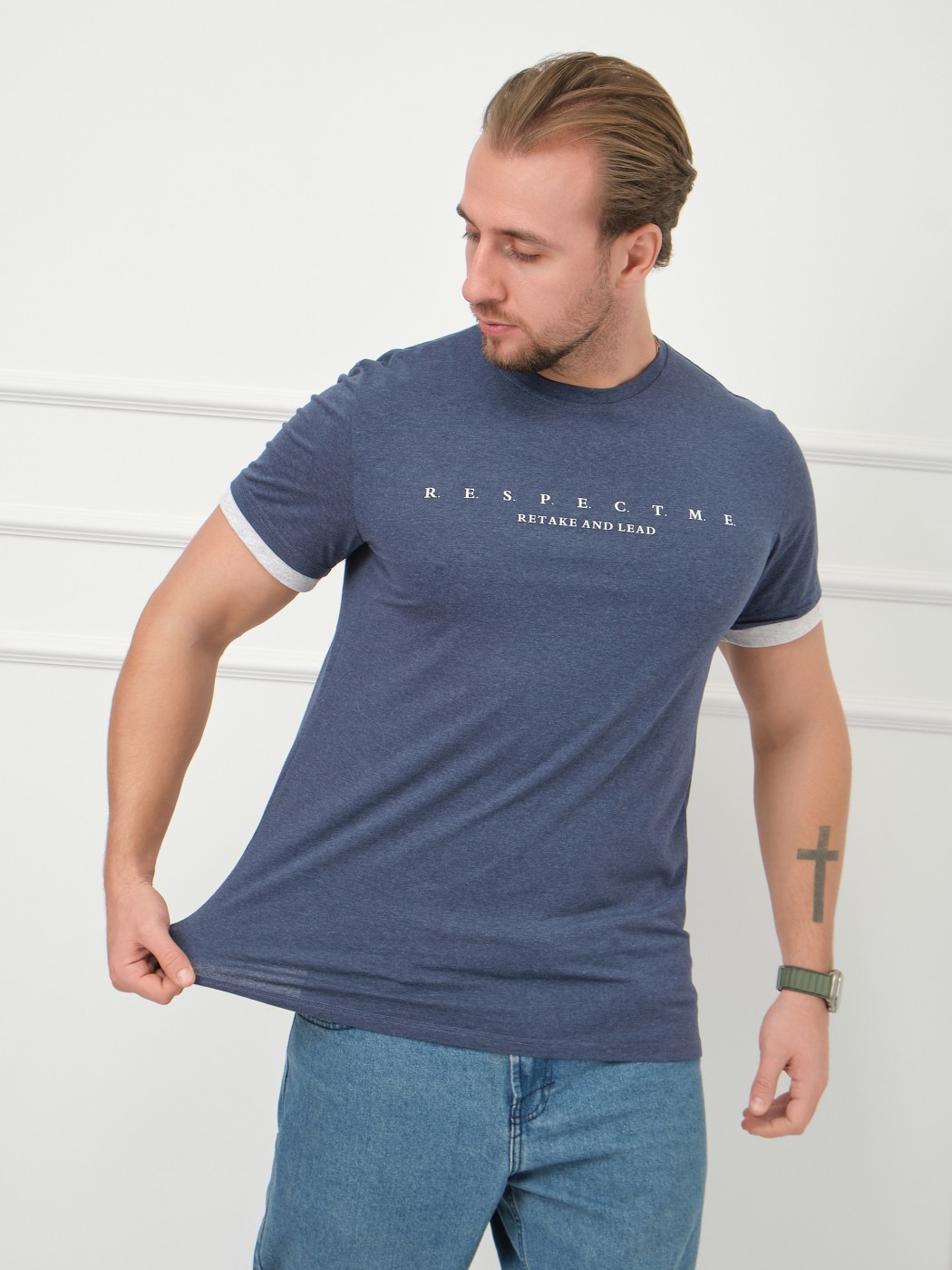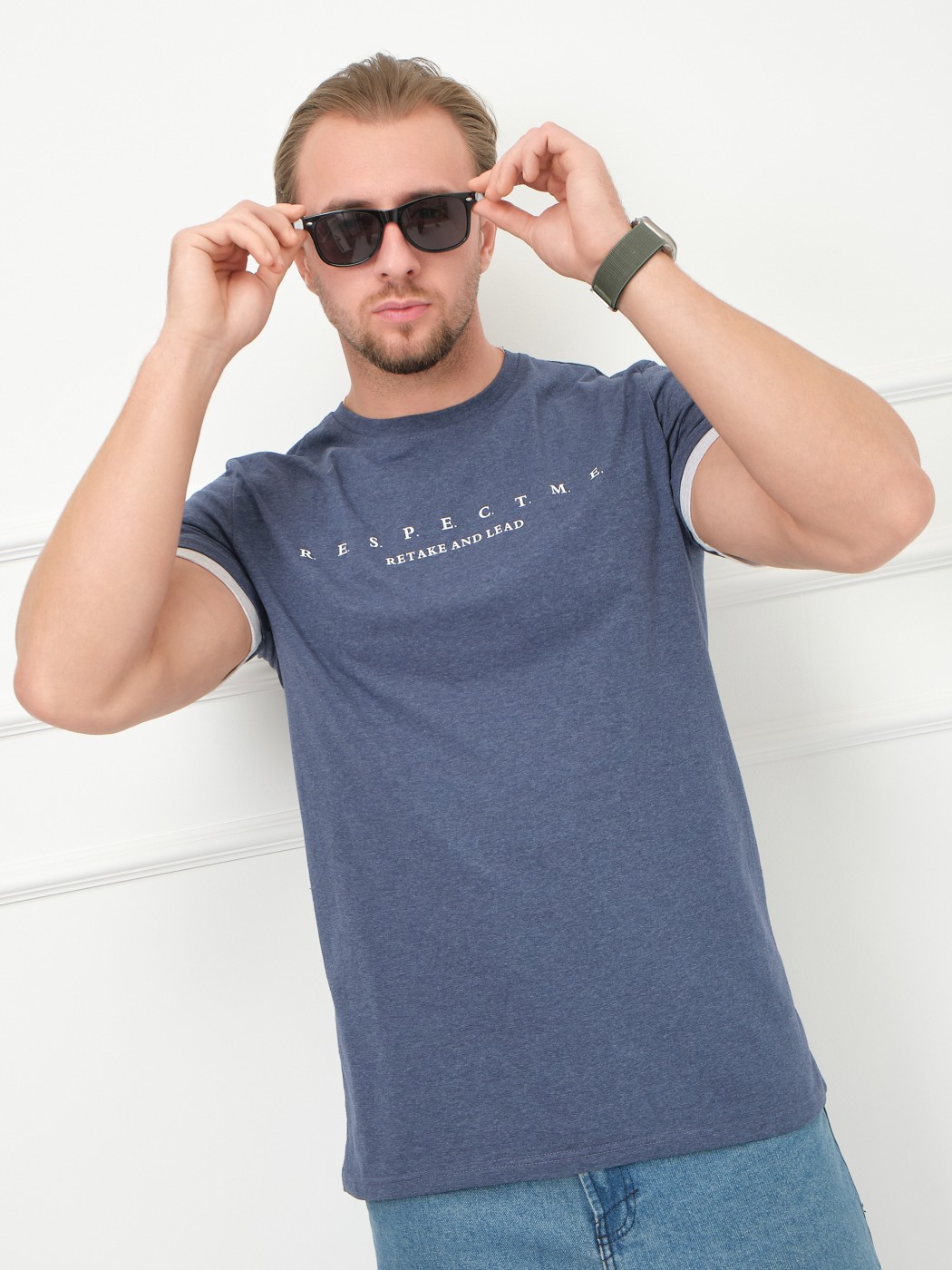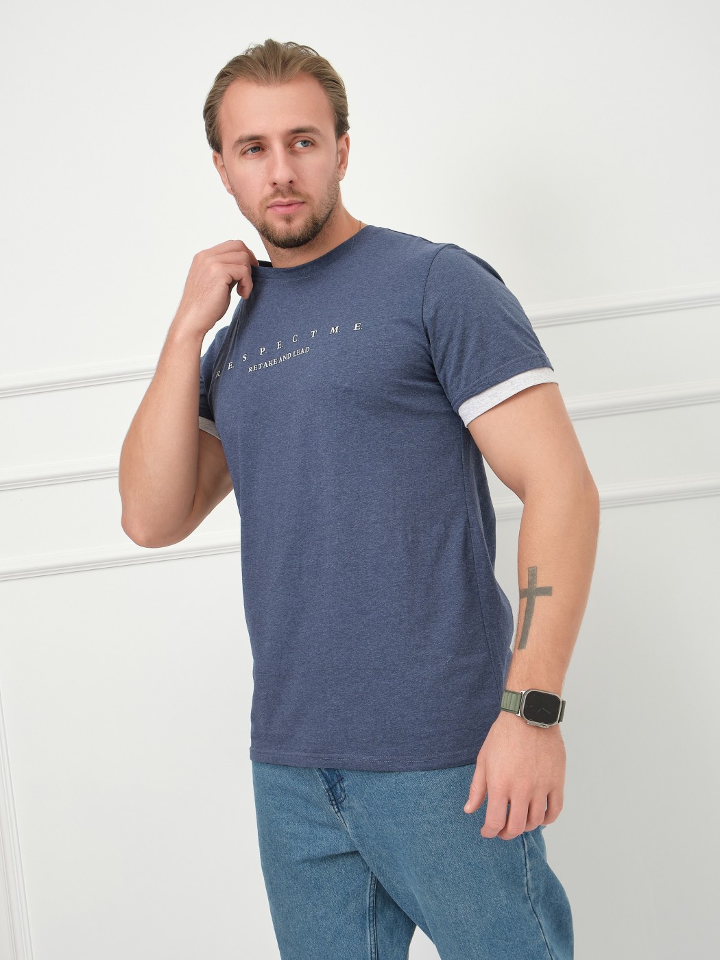 Футболка мужская Респект индиго/меланж есть в наличии