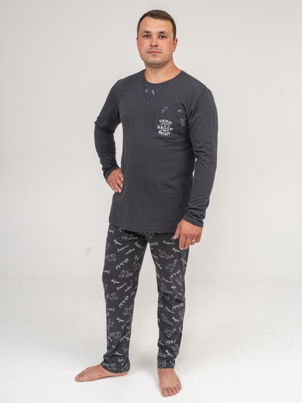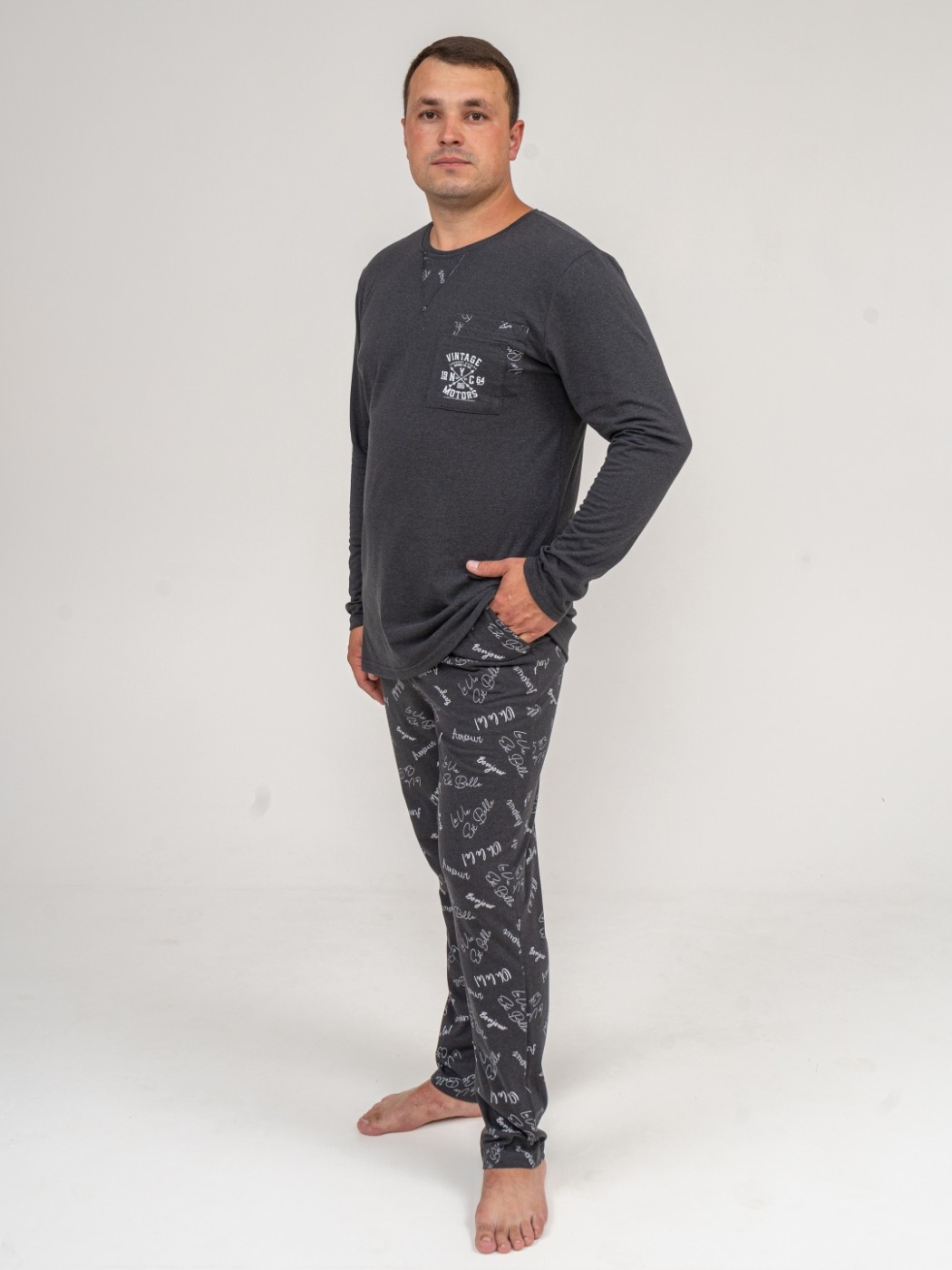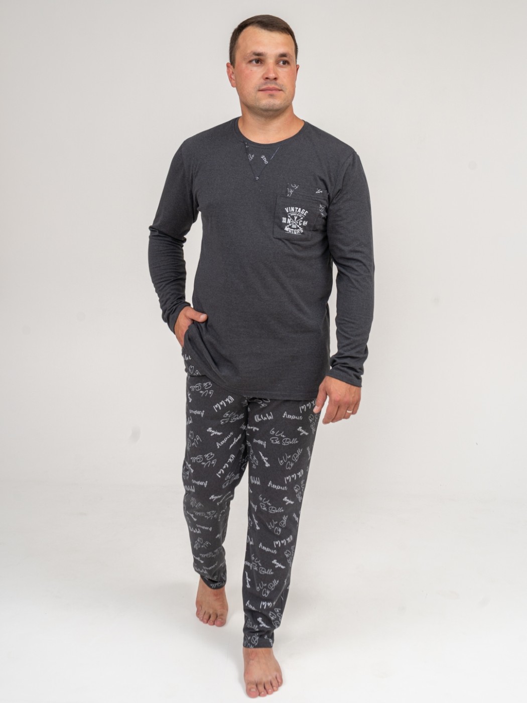 Пижама мужская Олимп дл.рукав антрацит/буквы есть в наличии