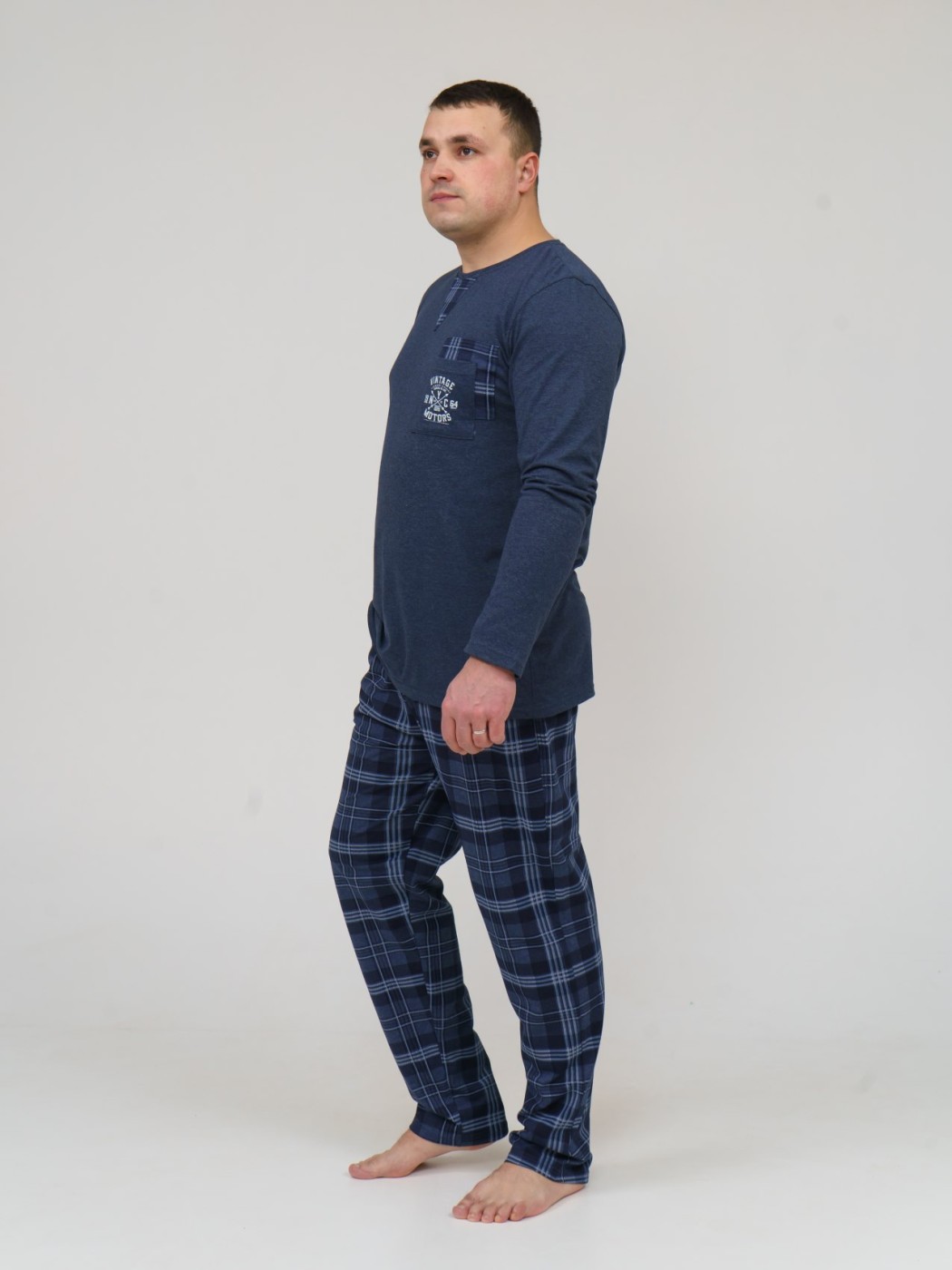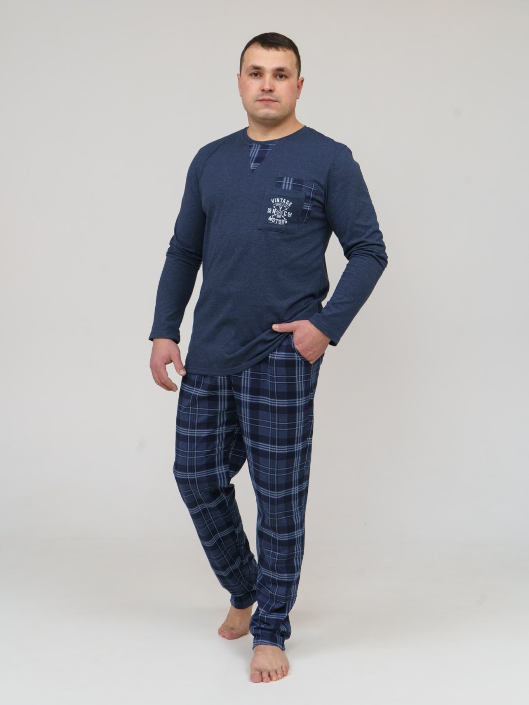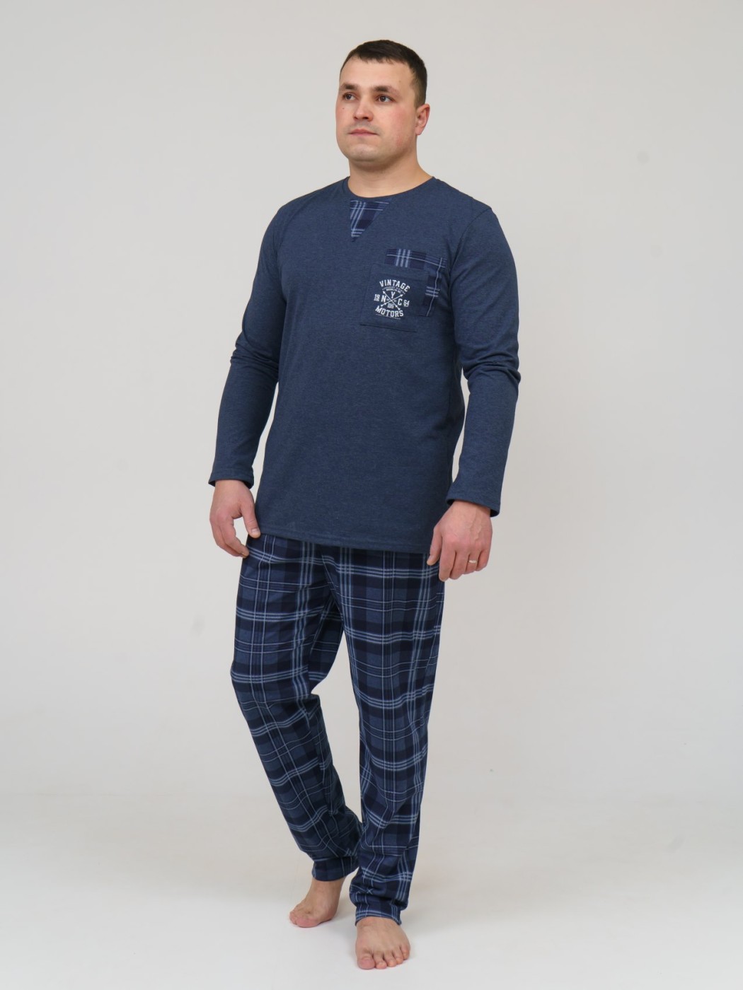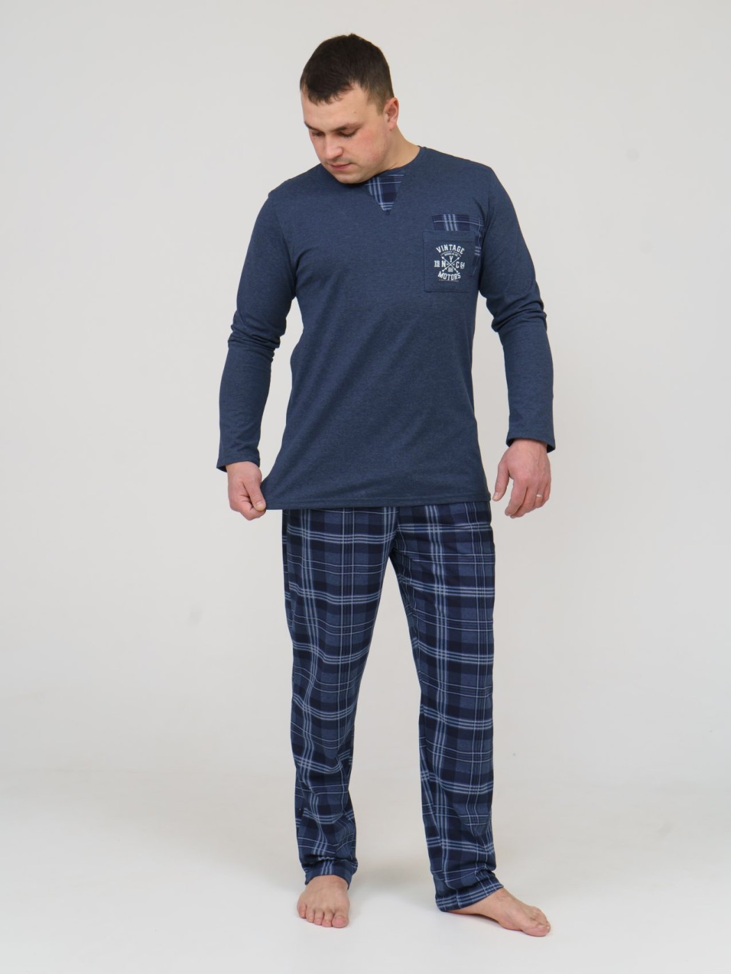Пижама мужская Олимп дл.рукав индиго/клетка есть в наличии