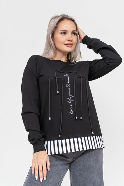Шьем из различных видов трикотажных полотен – пике, футера, кулирки – в зависимости от того, в какой сезон будет использоваться вещь. Летние – из легких тканей, зимние и демисезонные – из теплых, с начесом. Весь трикотаж хлопковый или вискозный. Да, вискоза – сырье, из него делают полотна. Есть модели из ткани с добавление лайкры и ПЭ, ПАН. Выбор материала зависит от характеристик, которых мы хотим добиться от одежды. Например, лайкра придает им большую прочность и эластичность. Фасоны есть на женщин приталенные для стройных и со свободным покроем. Размеры от 42 по 66. Расцветки модные – от зверушек до клетки и цветочных принтов. Используем различные стили, чтобы у нас нашли себе модельку по вкусу женщины всех возрастов.