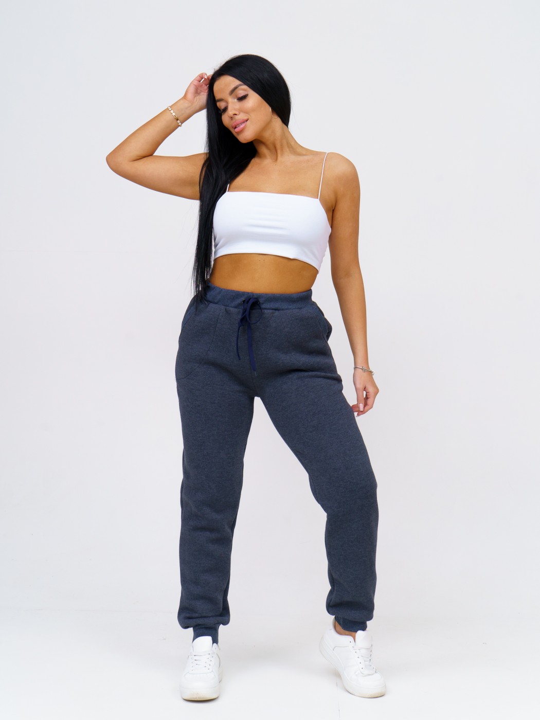 Брюки женские футер 3-х нитка синий/меланж есть в наличии