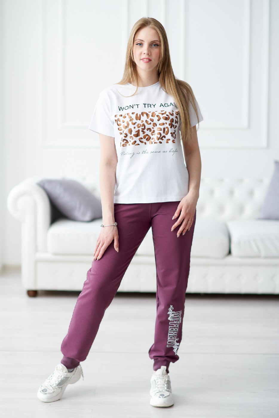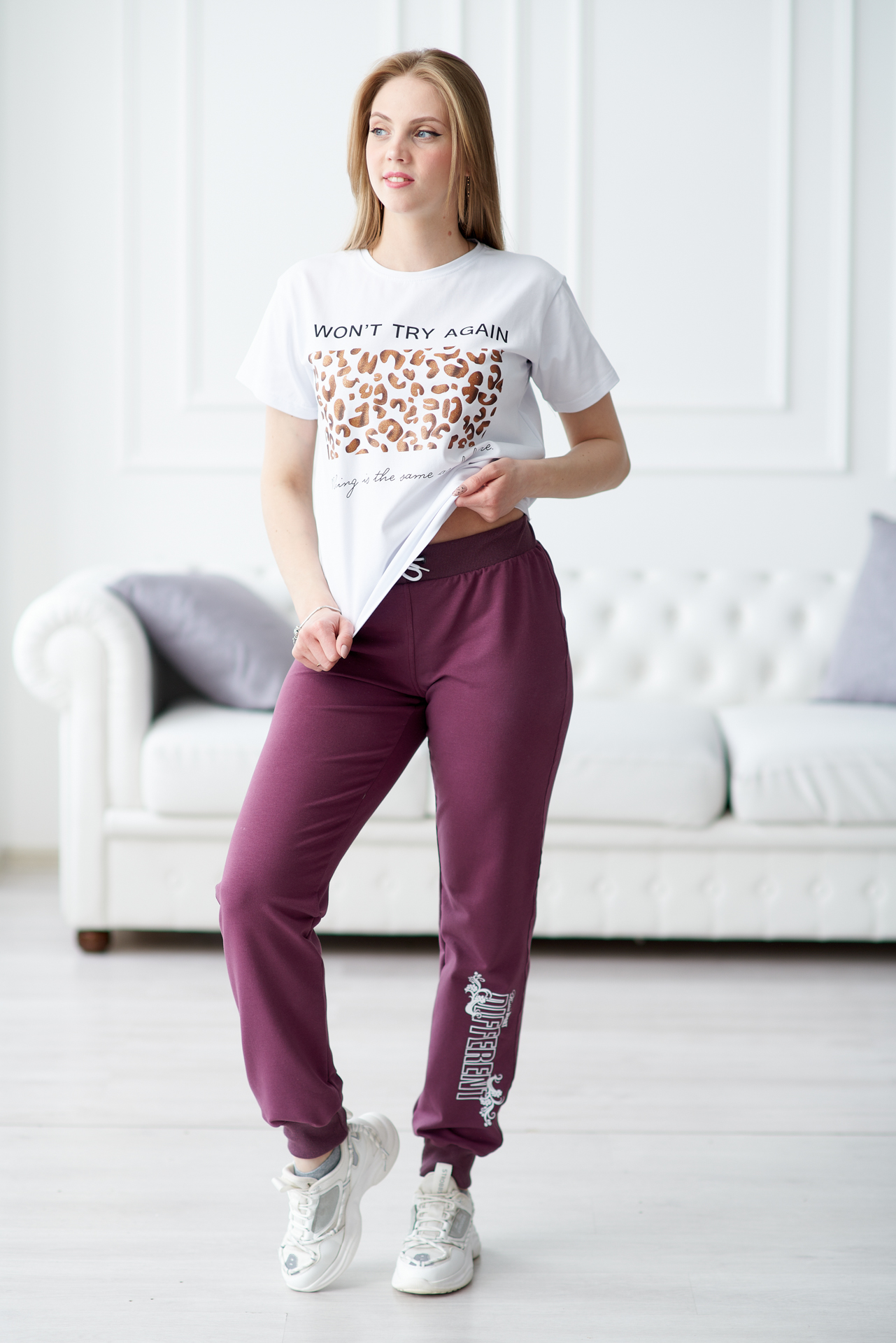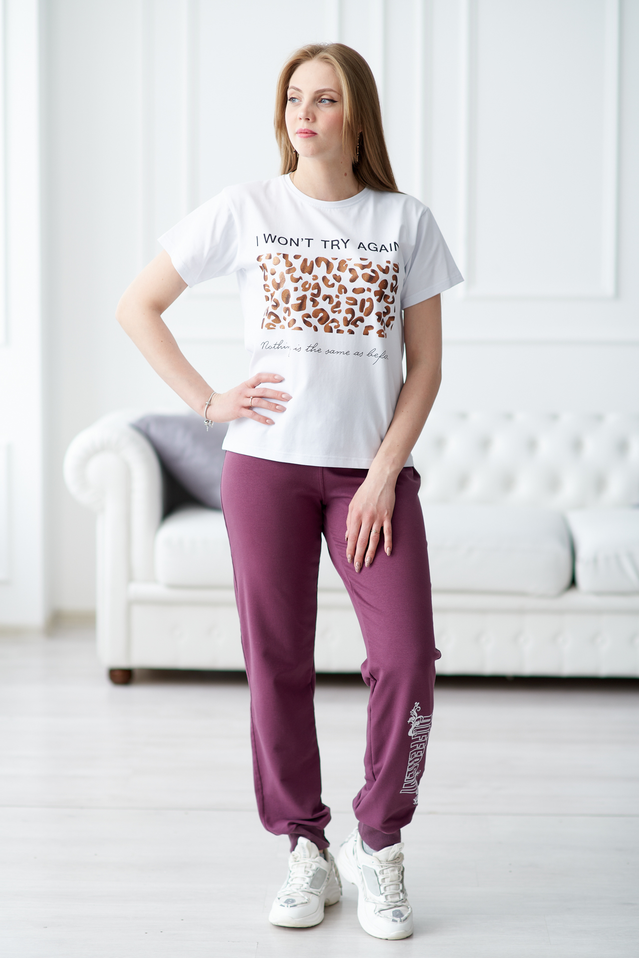 Брюки женские с печатью-2 манжет слива есть в наличии
