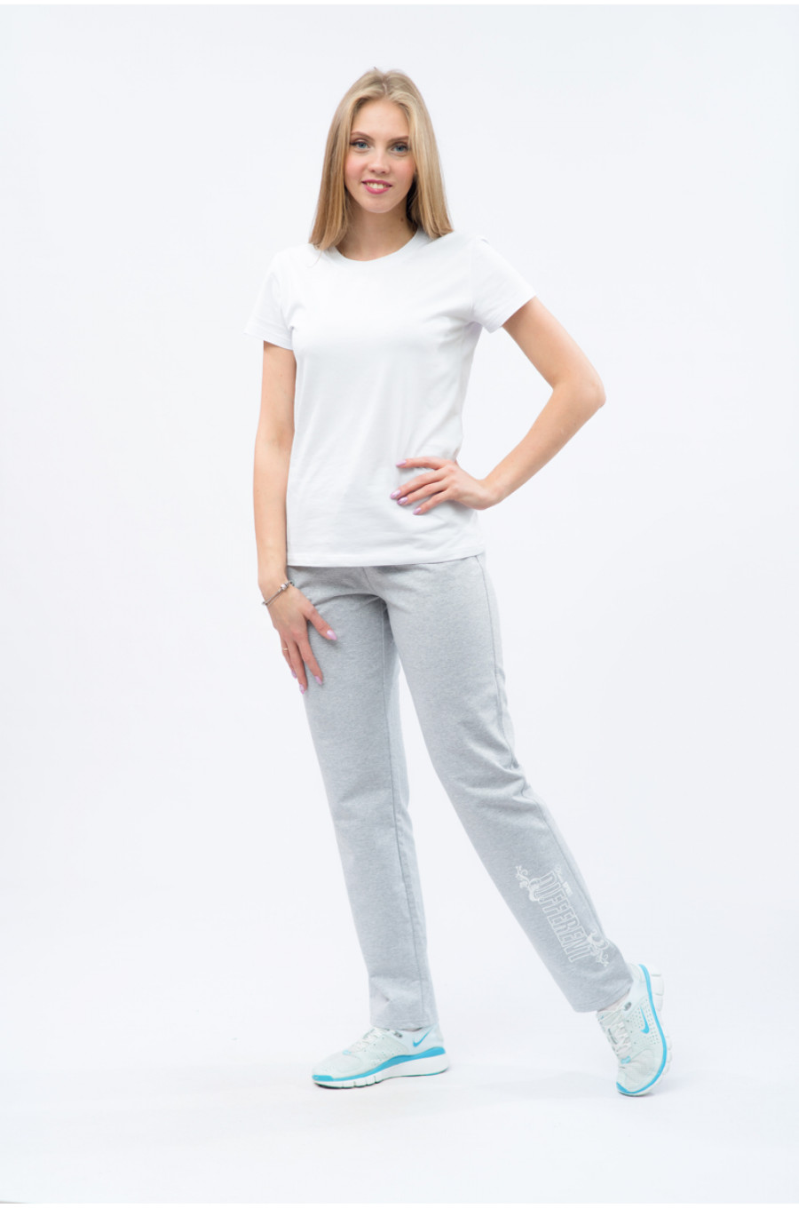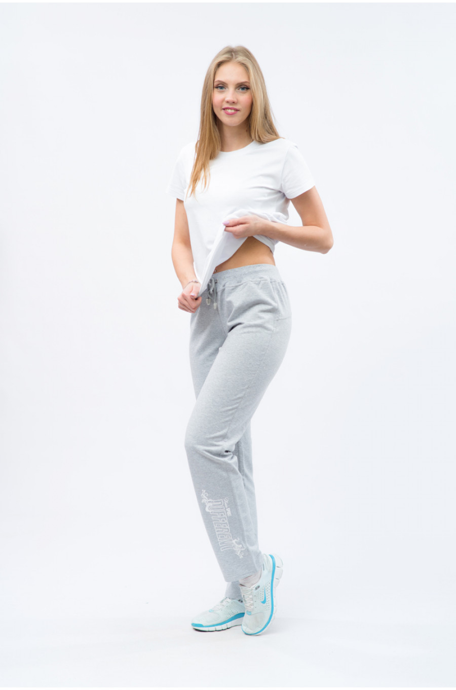 Брюки женские с печатью-2 без манжет серые есть в наличии