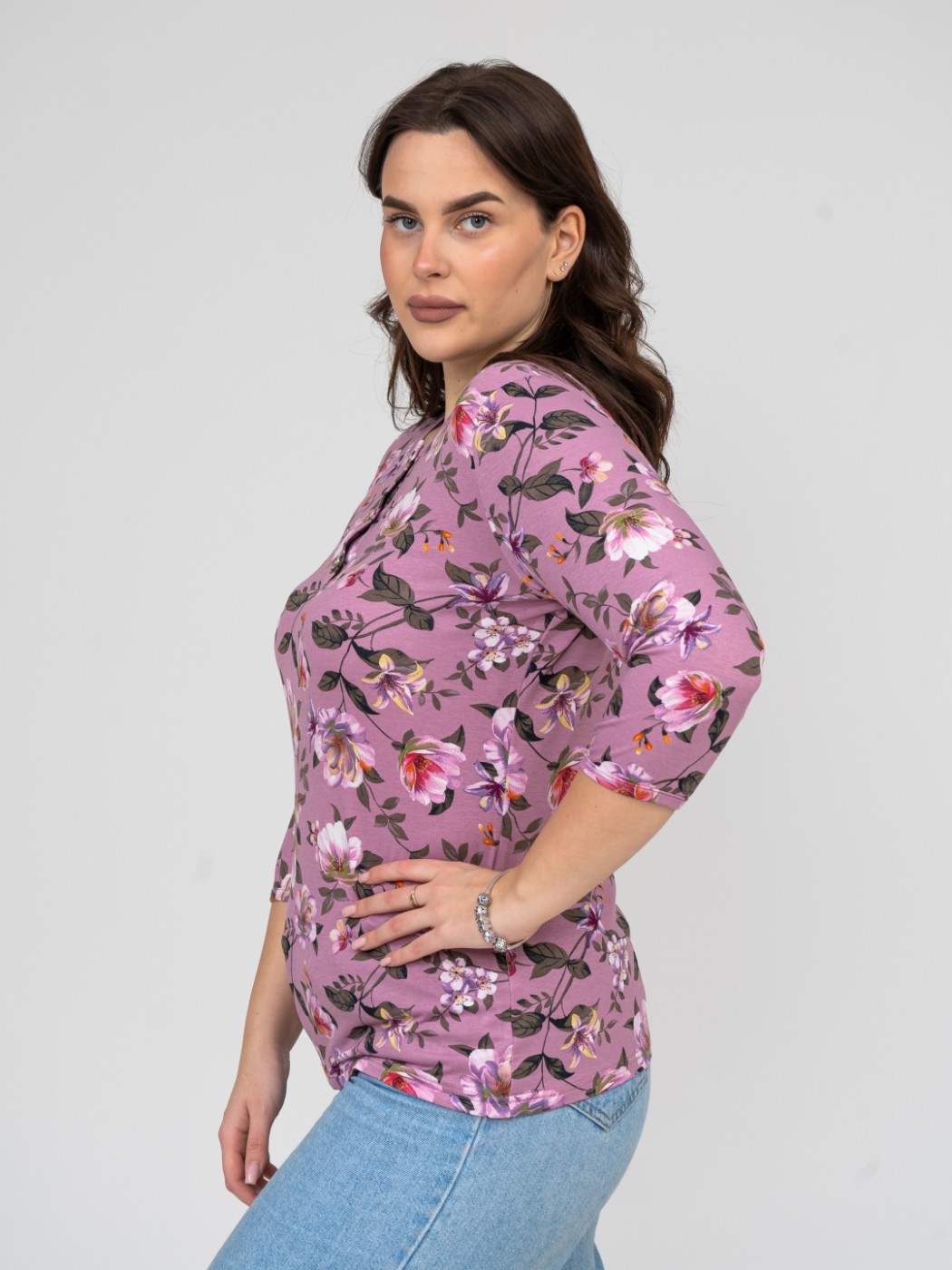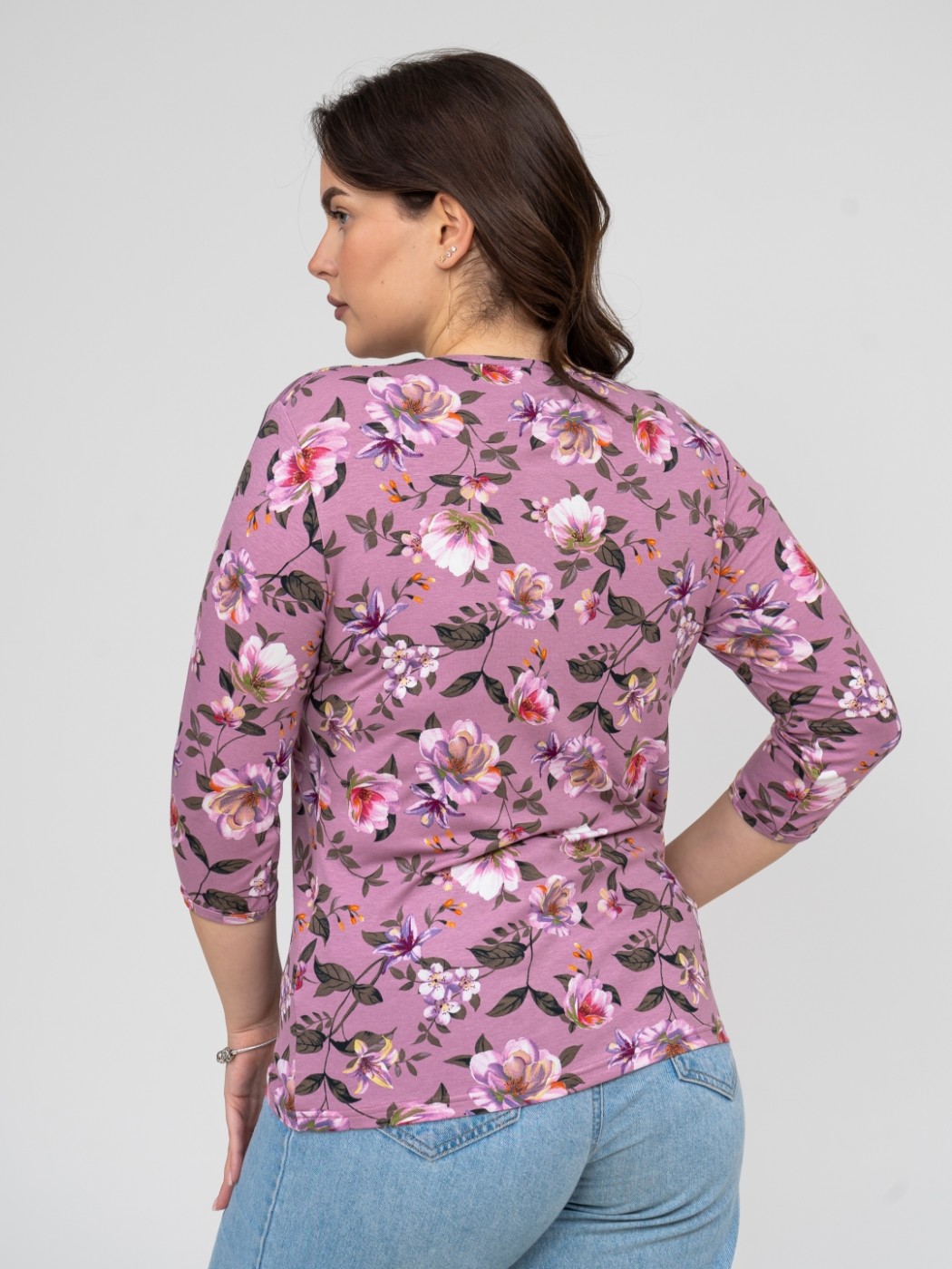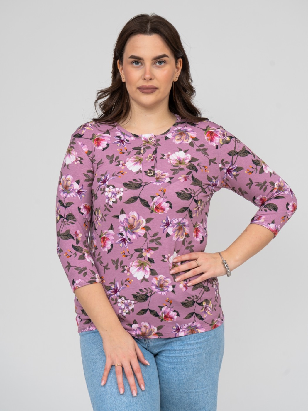 Джемпер Планка рукав 3/4 брусника/цветы есть в наличии