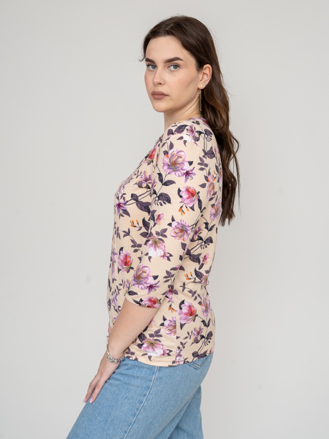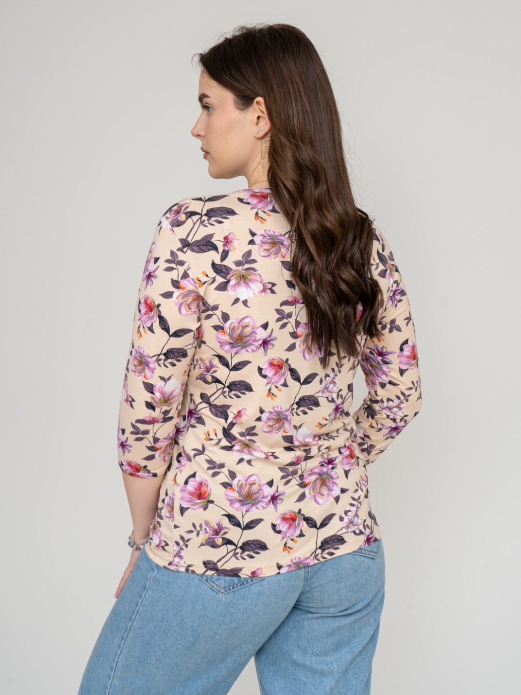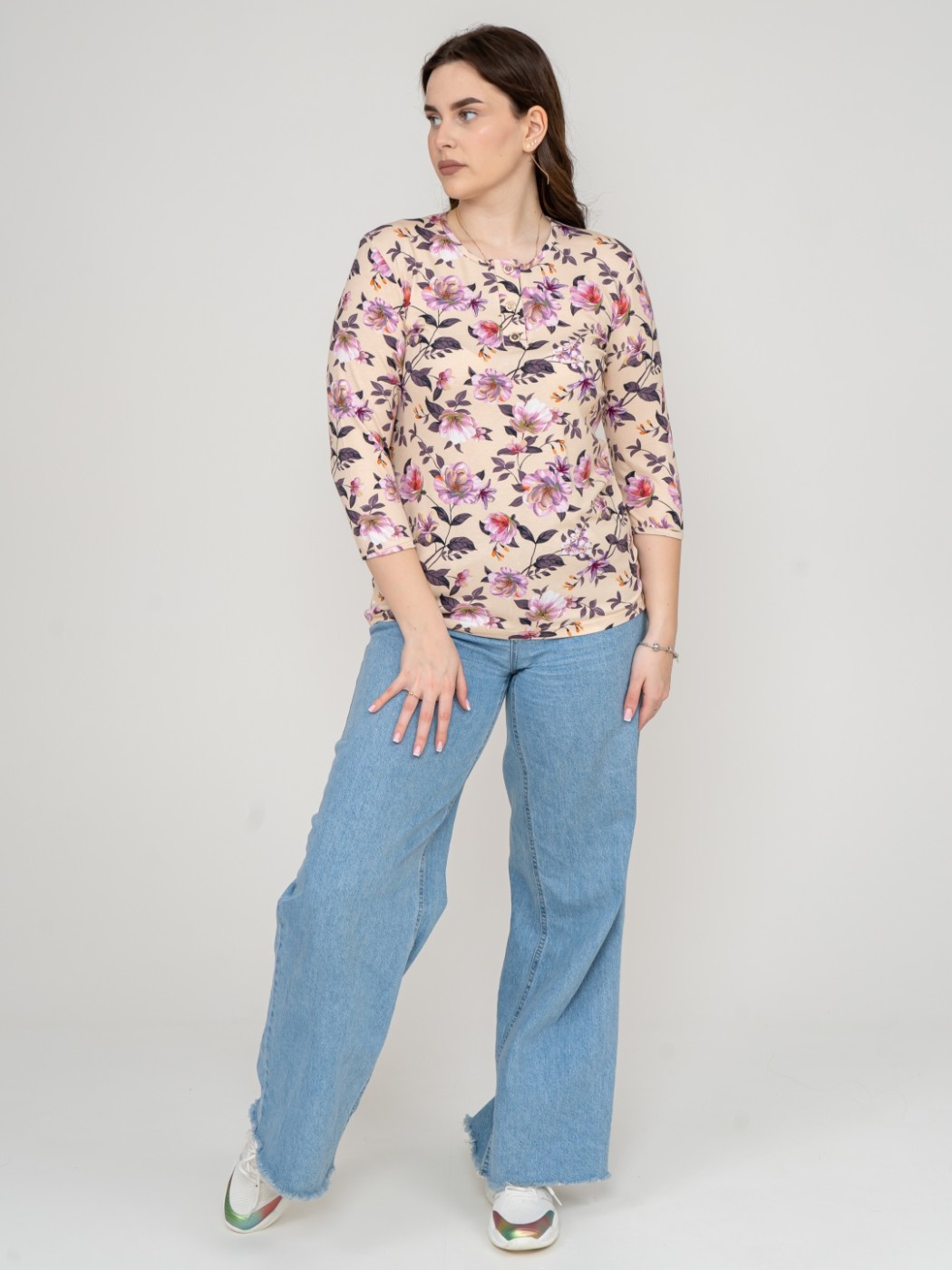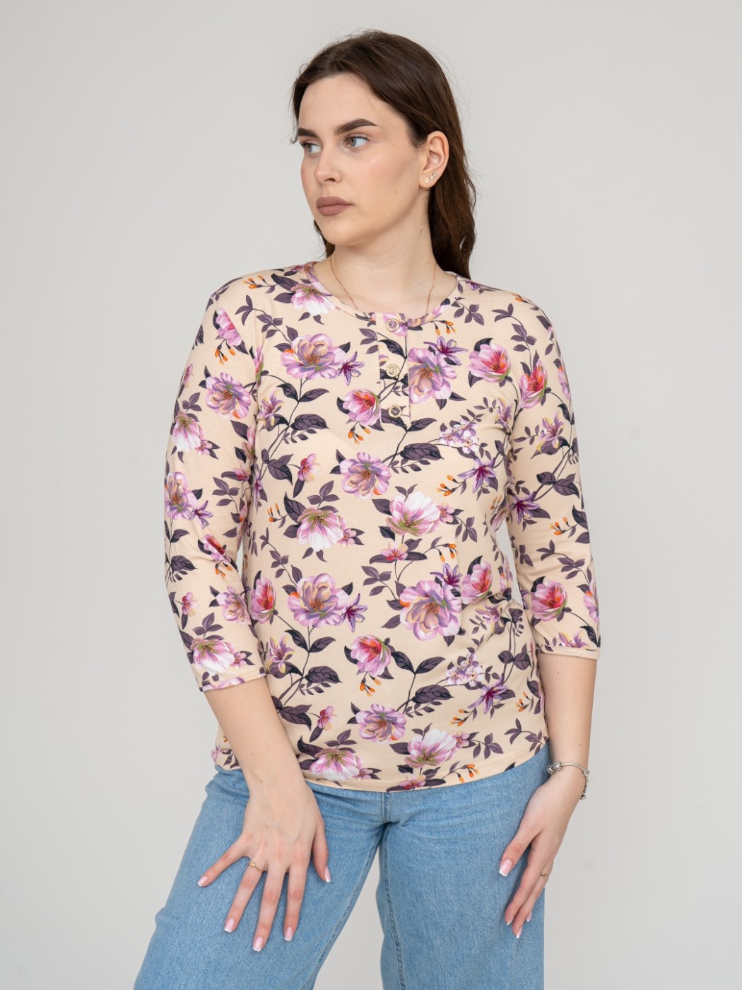 Джемпер Планка рукав 3/4 лимонный/цветы есть в наличии