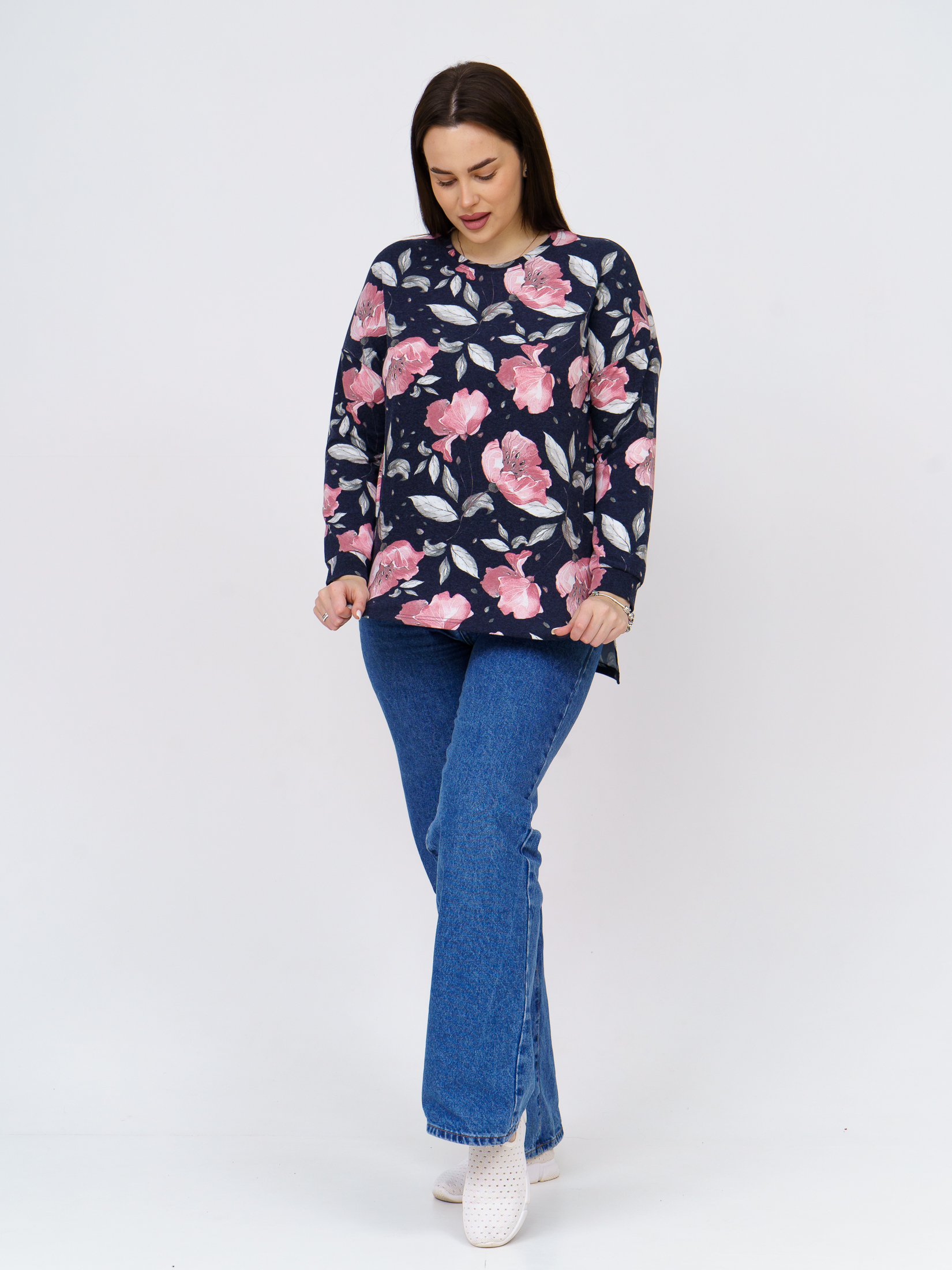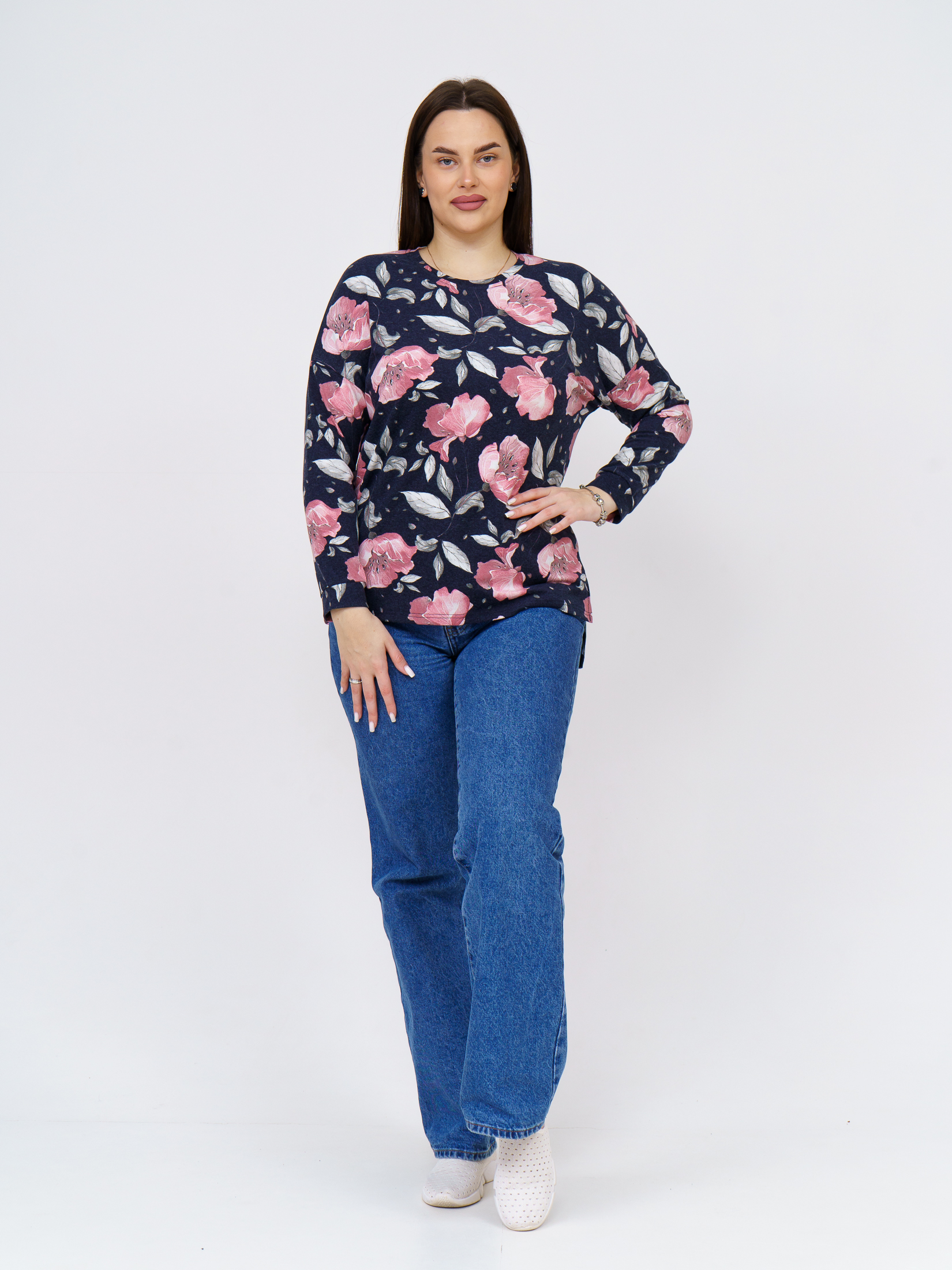 Джемпер Ворожея ангора т-синий-цветы есть в наличии
