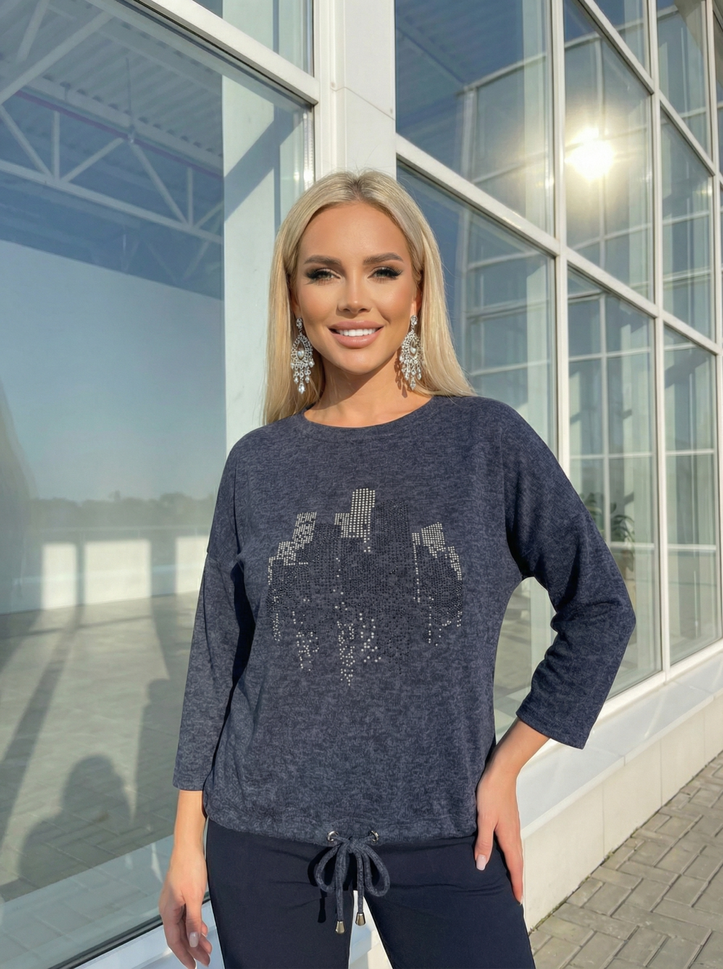 Джемпер женский Мегаполис 3/4 рукав синий есть в наличии
