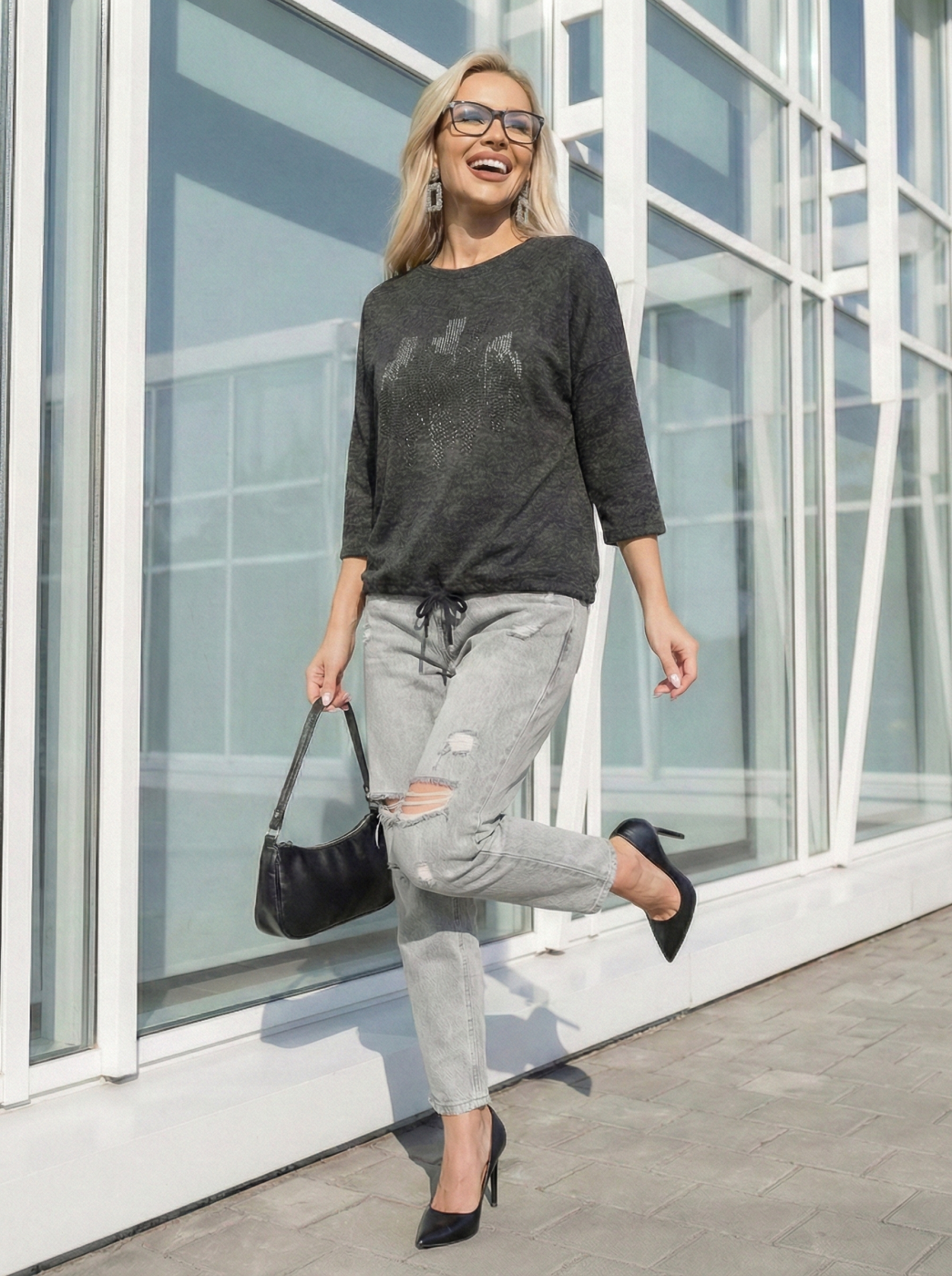 Джемпер женский Мегаполис 3/4 рукав т.серый есть в наличии