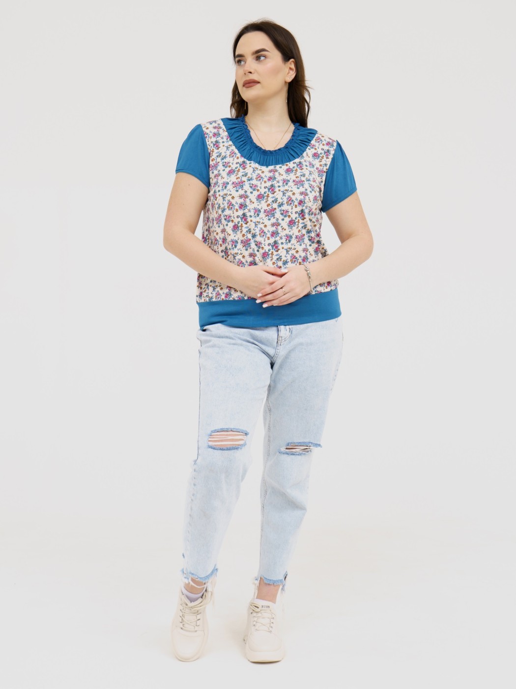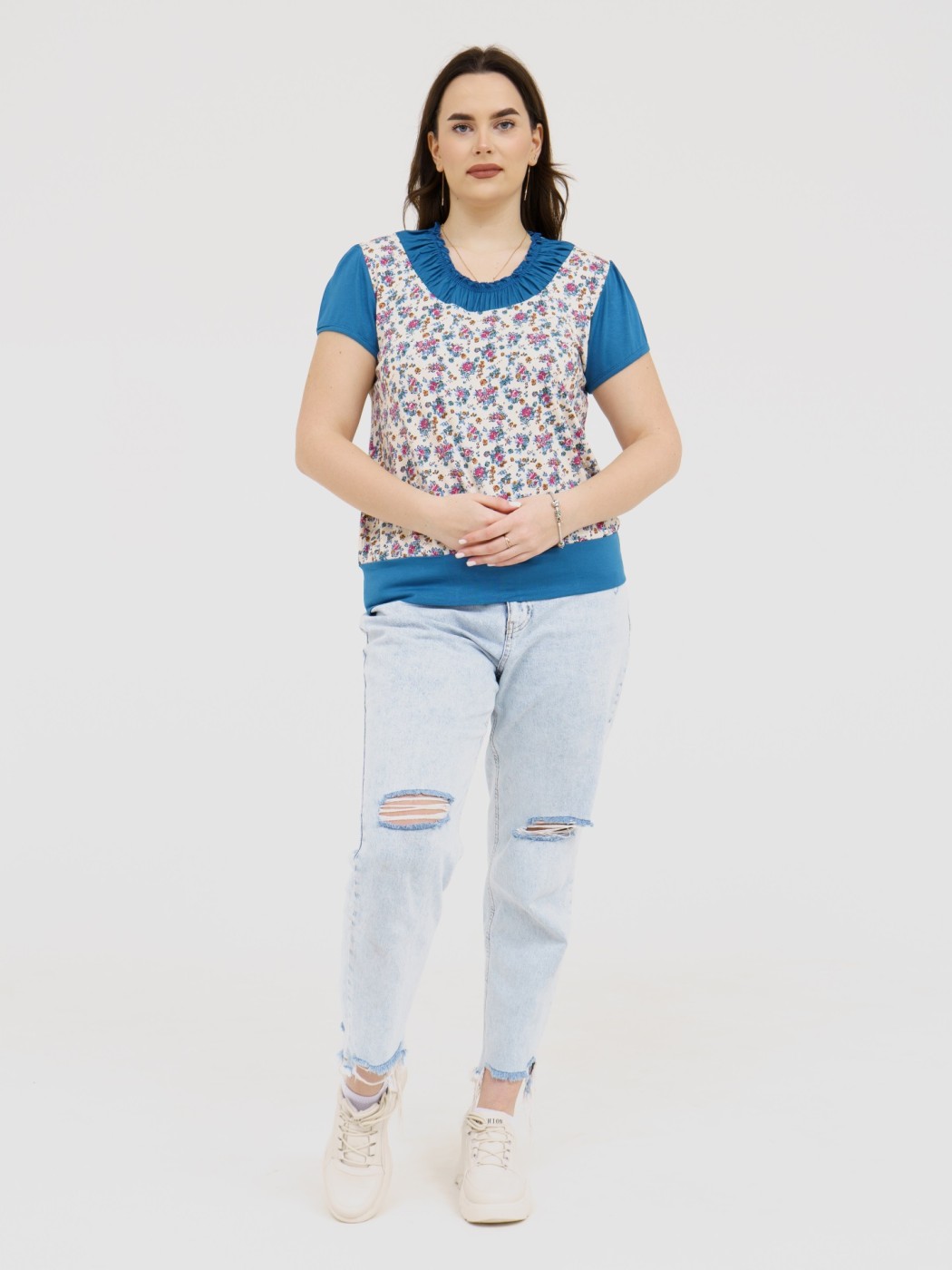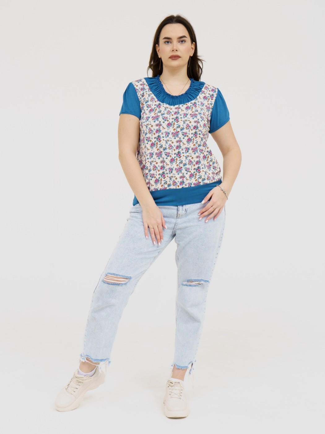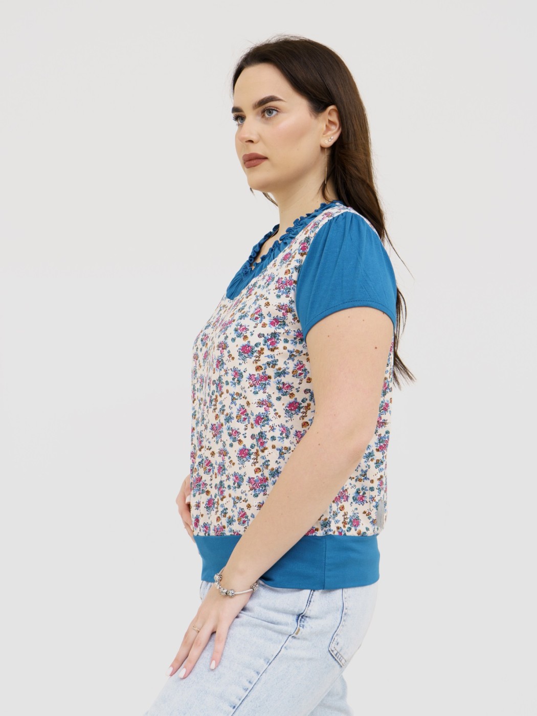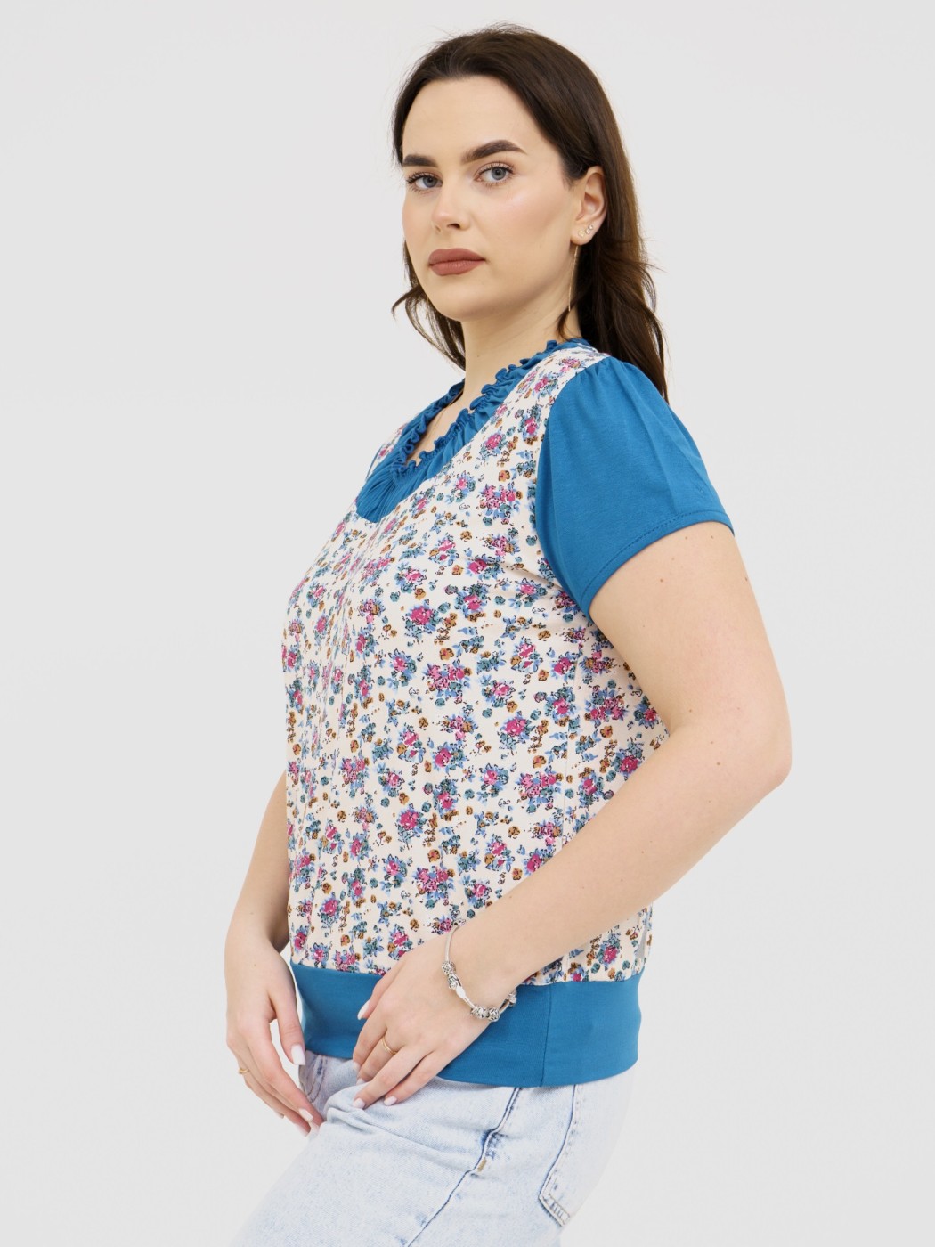 Футболка Фаина с кокеткой бирюза есть в наличии