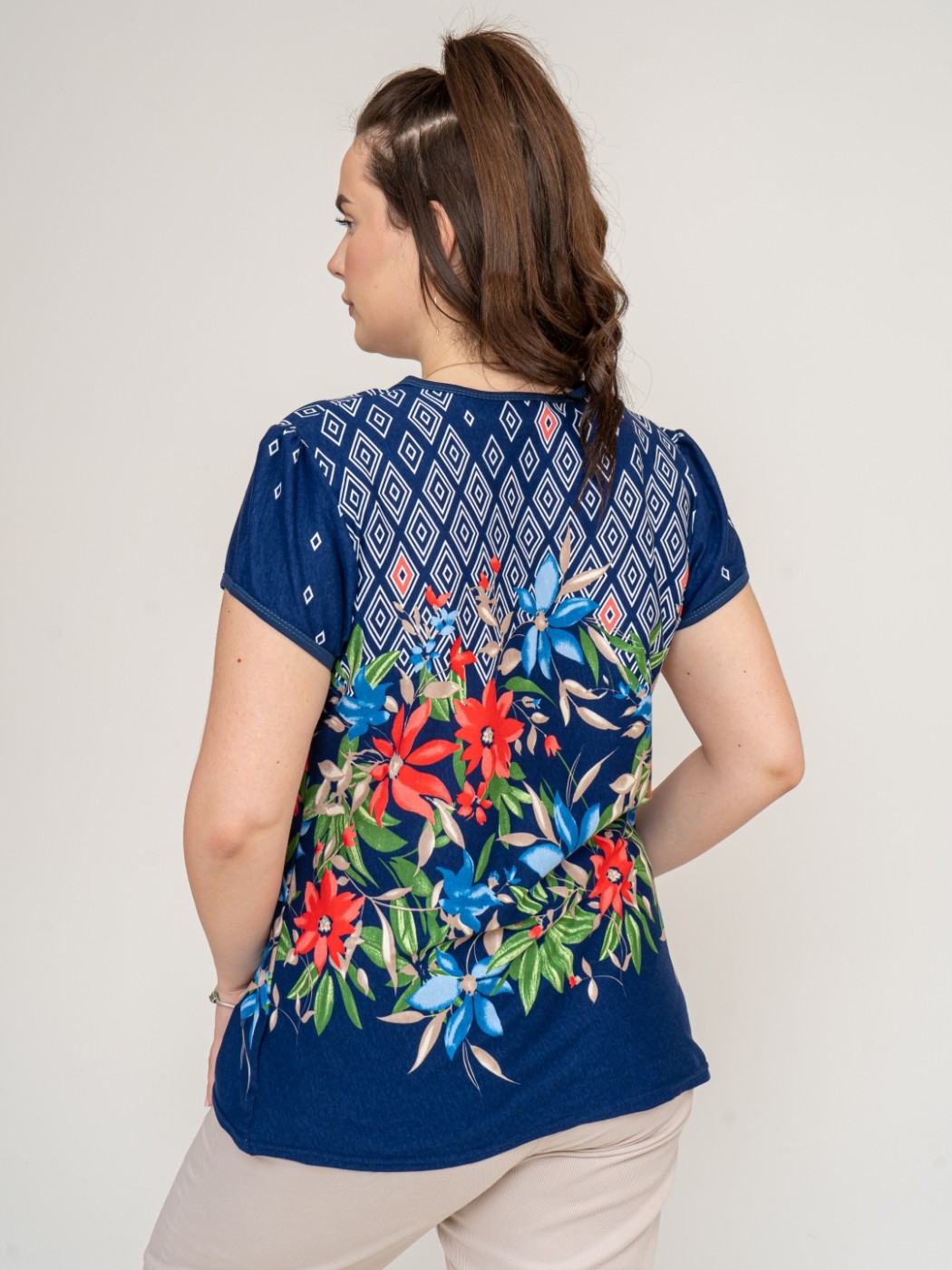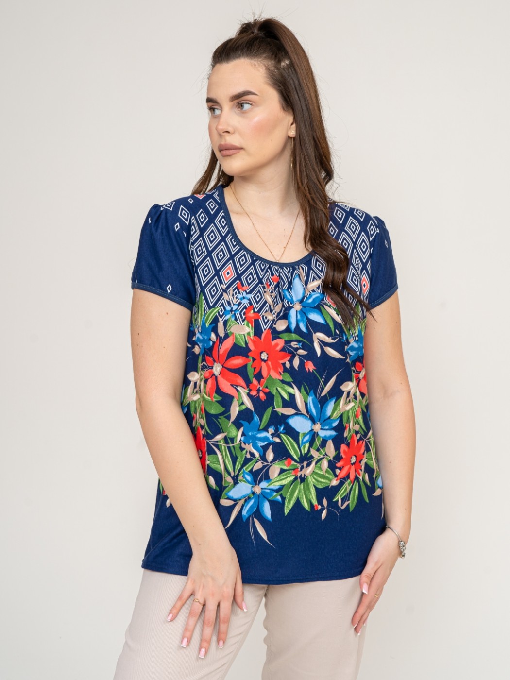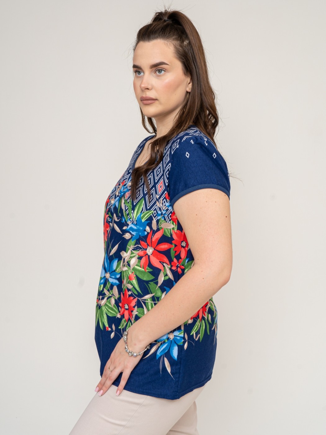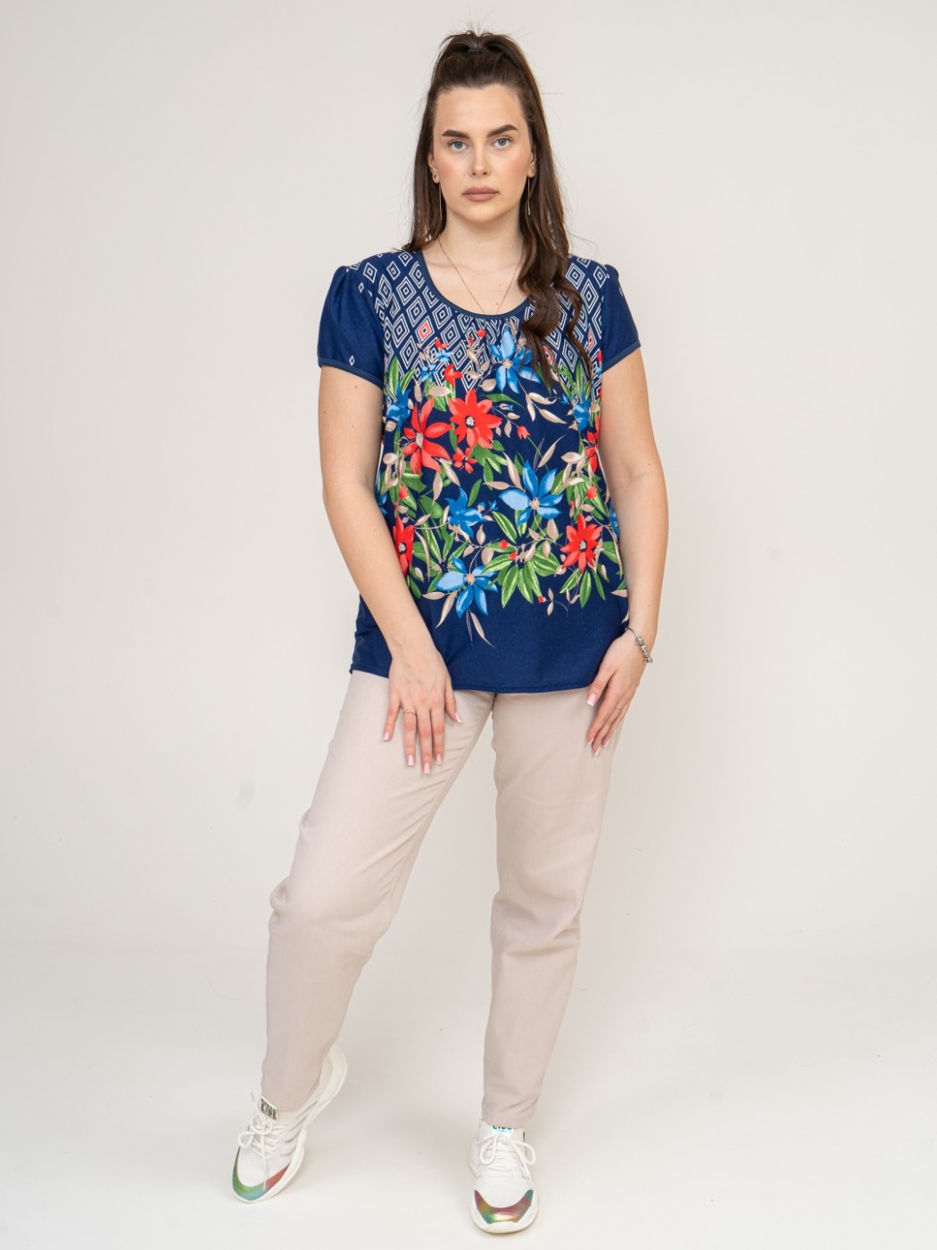 Футболка Сердечное тепло синий/цветы есть в наличии