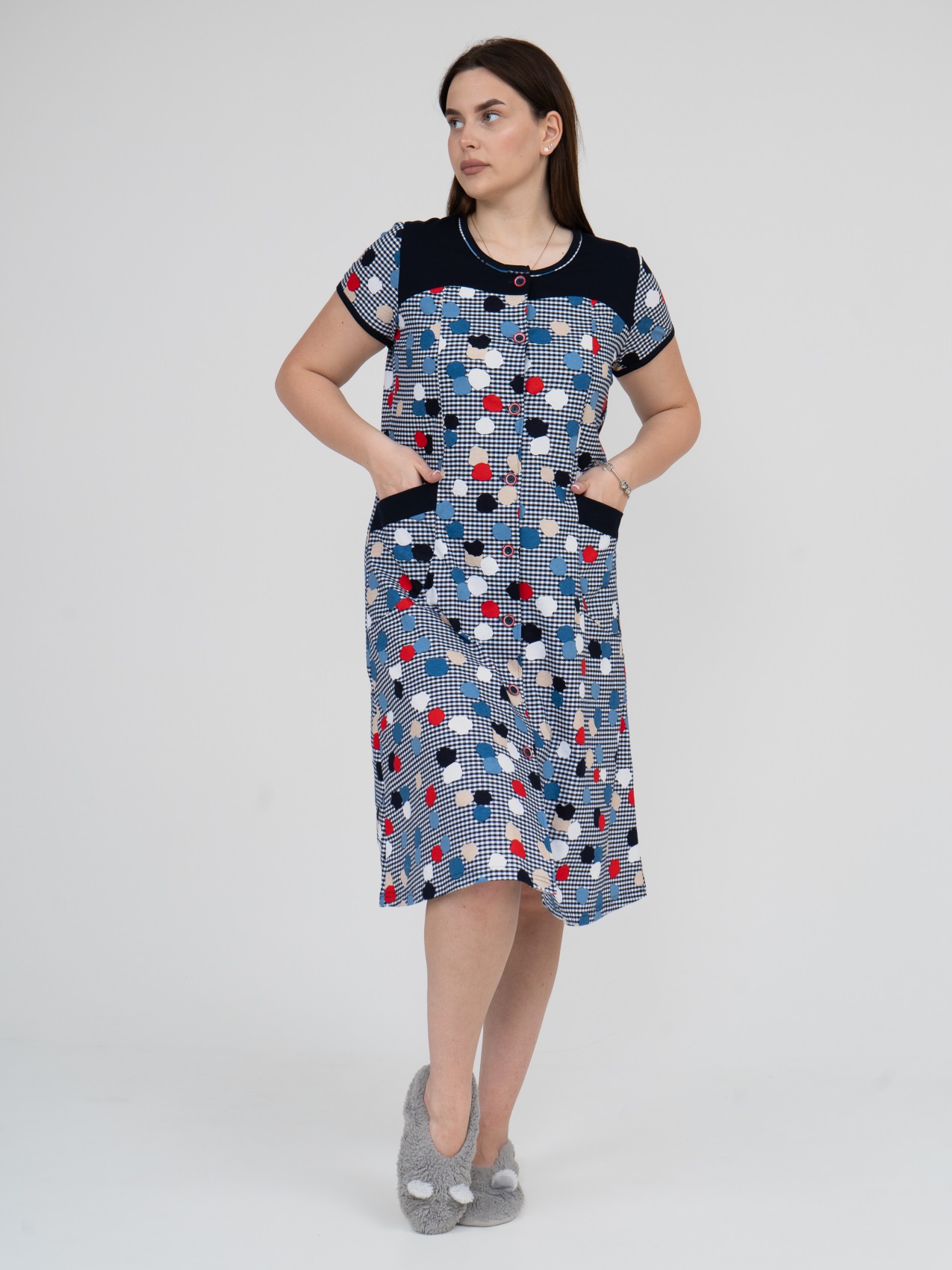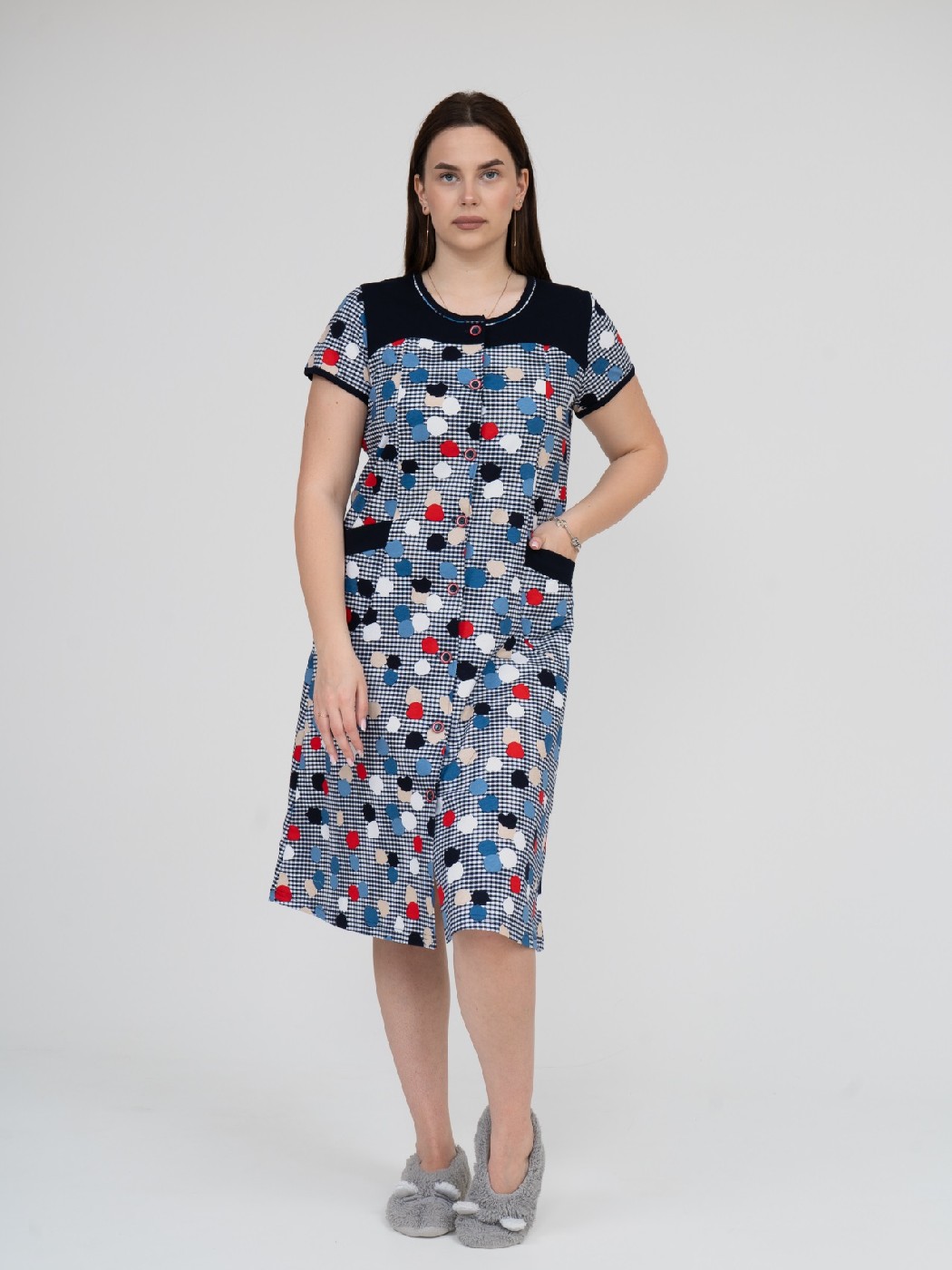 Халат Дыхание Лета синий/клетка есть в наличии