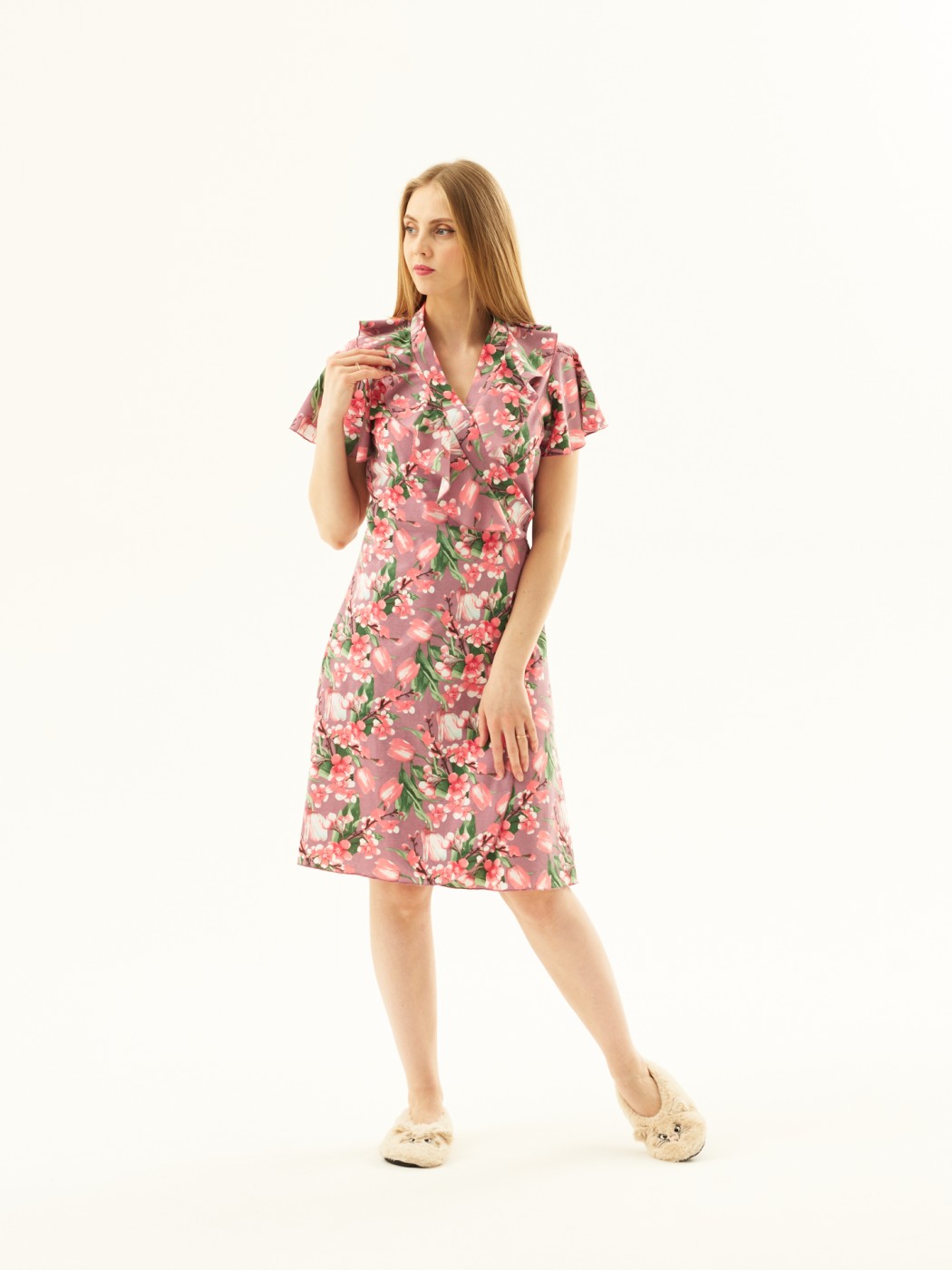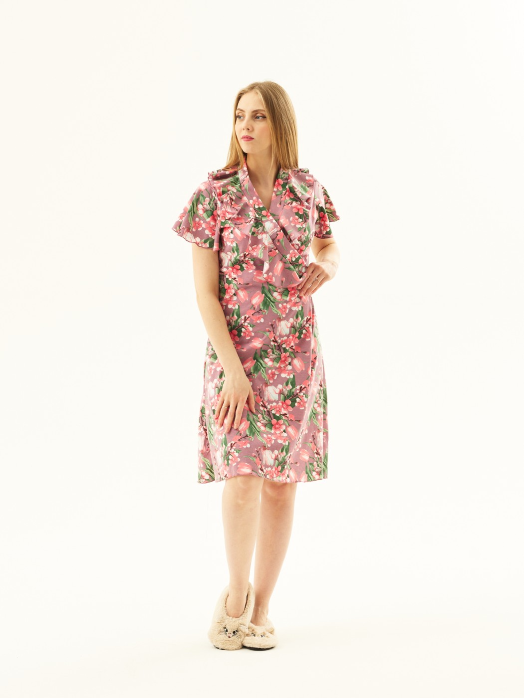 Халат Джульетта брусника/цветы есть в наличии