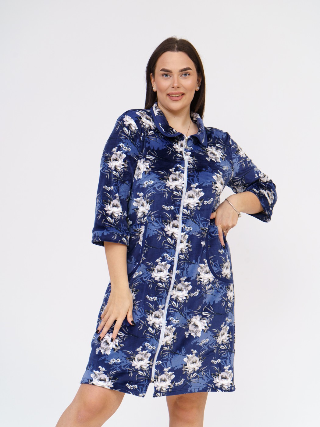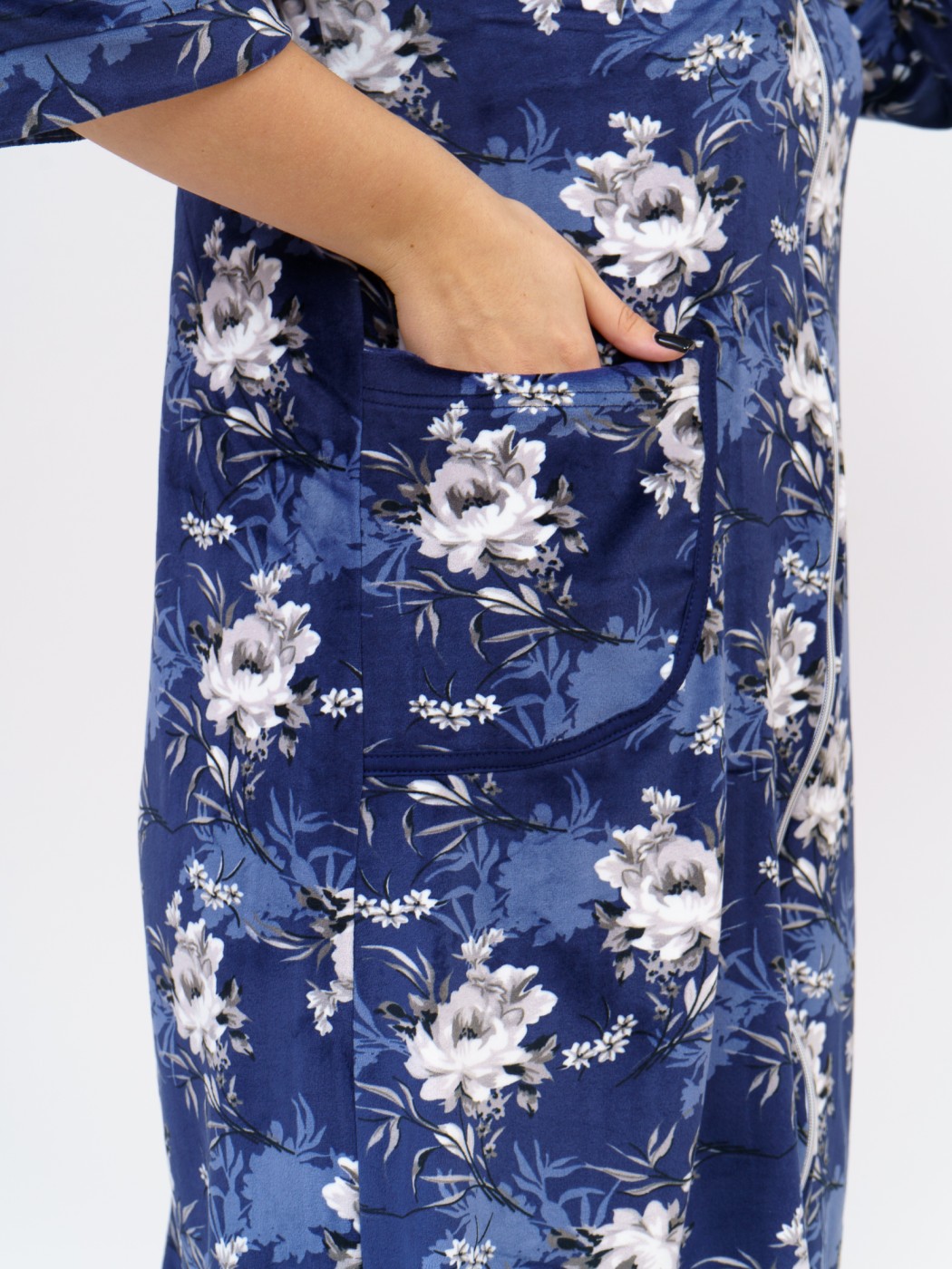 Халат Фантазия велюр набивка индиго/цветы есть в наличии