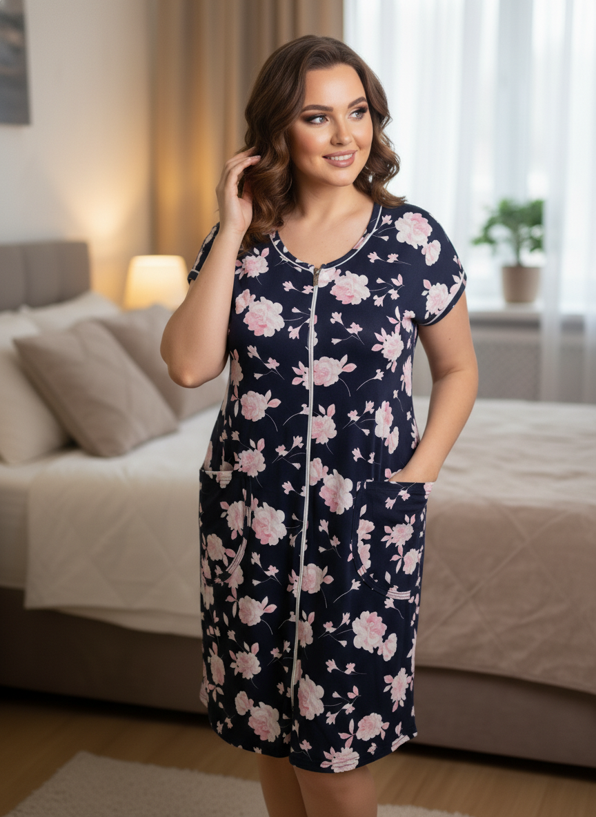 Халат Кира синий/розы есть в наличии