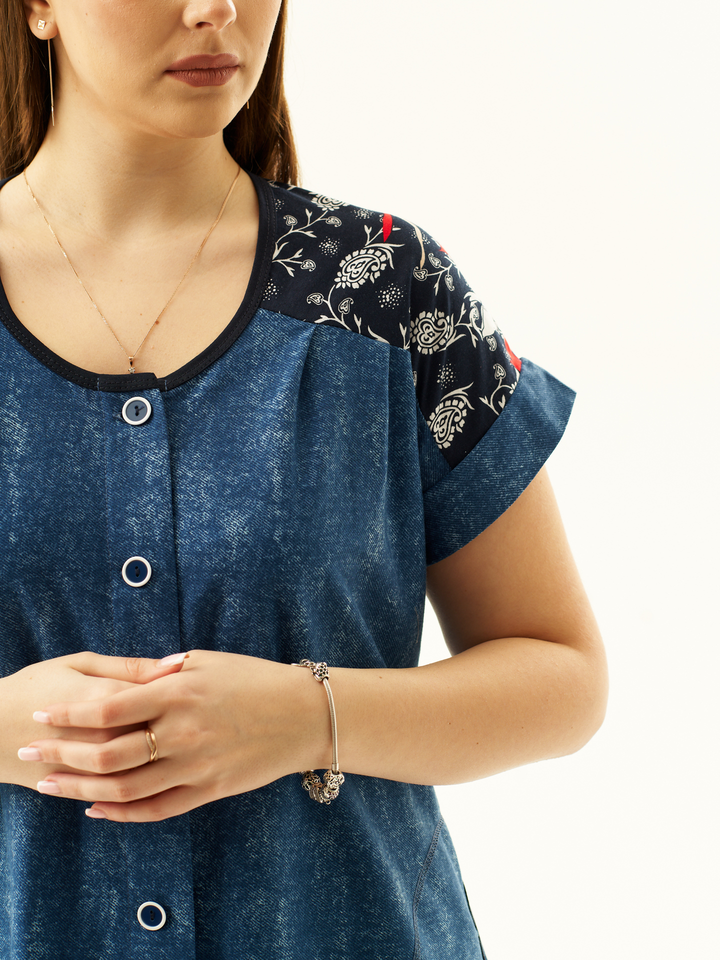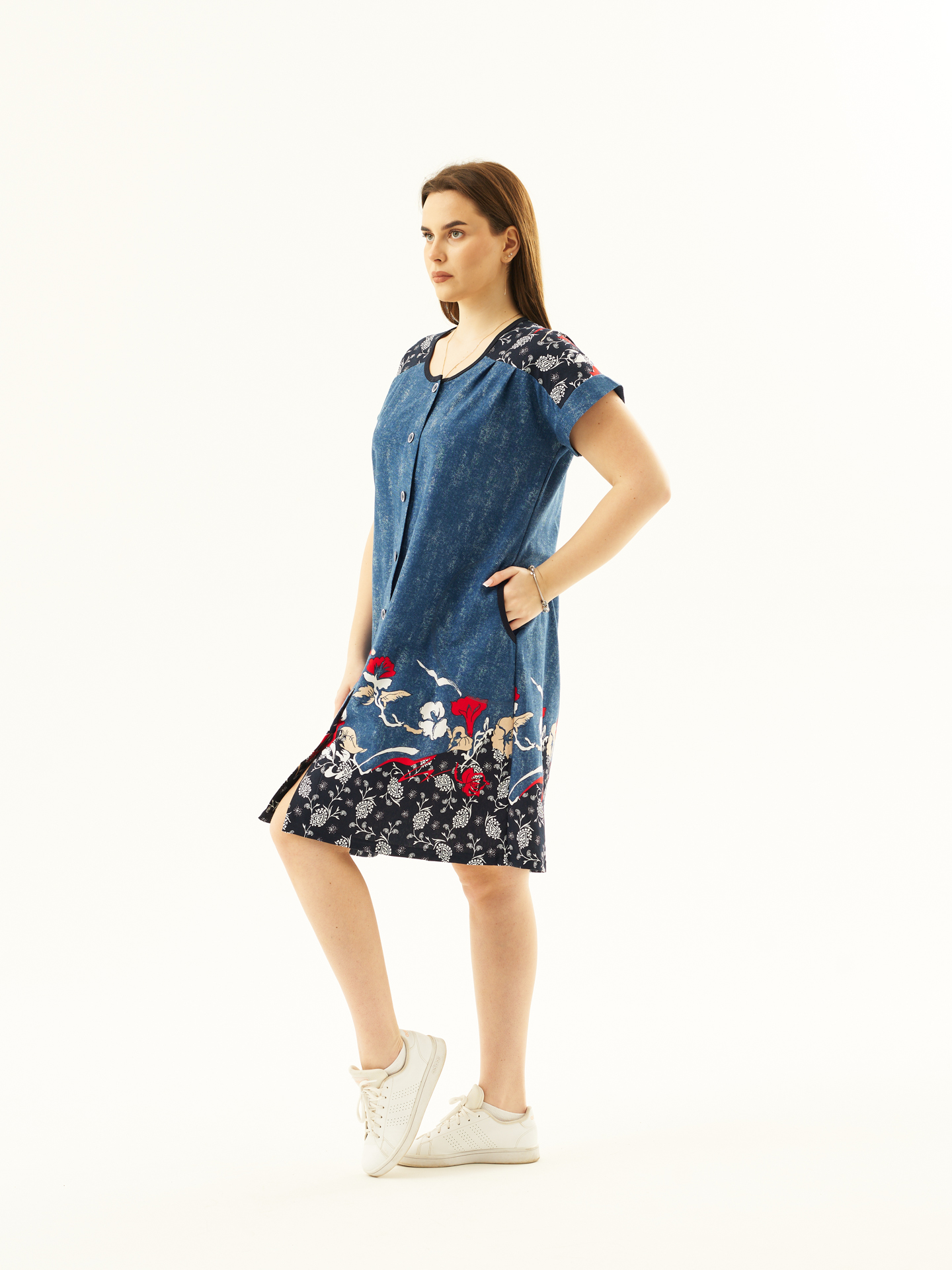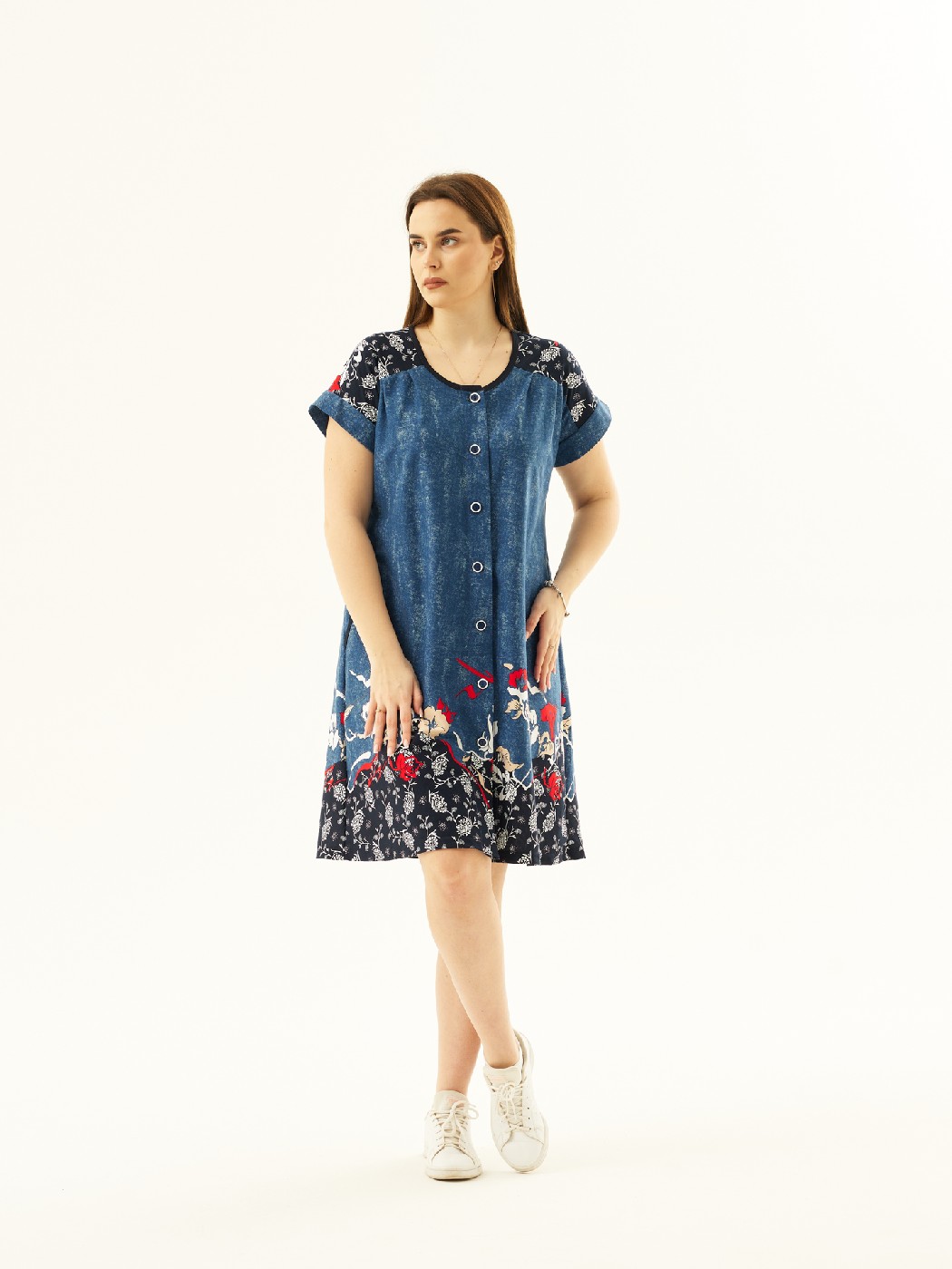 Халат Комфорт джинс/цветы есть в наличии