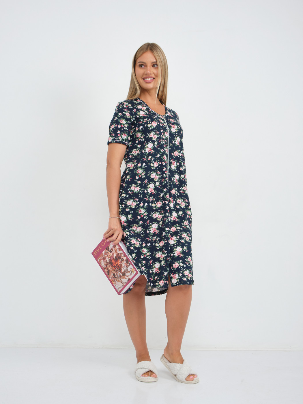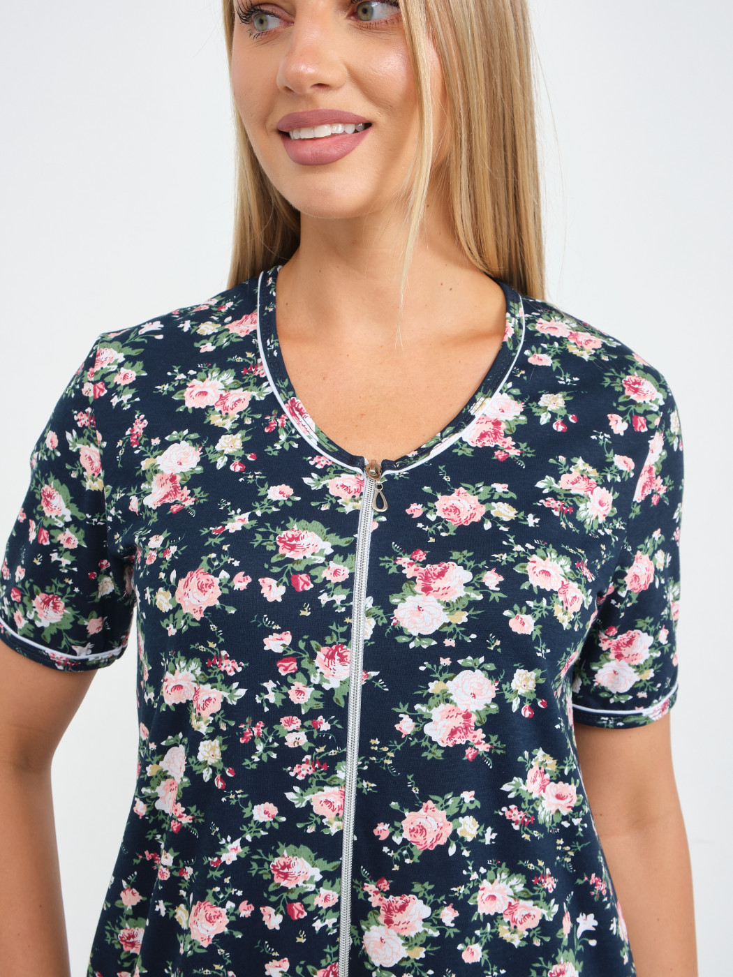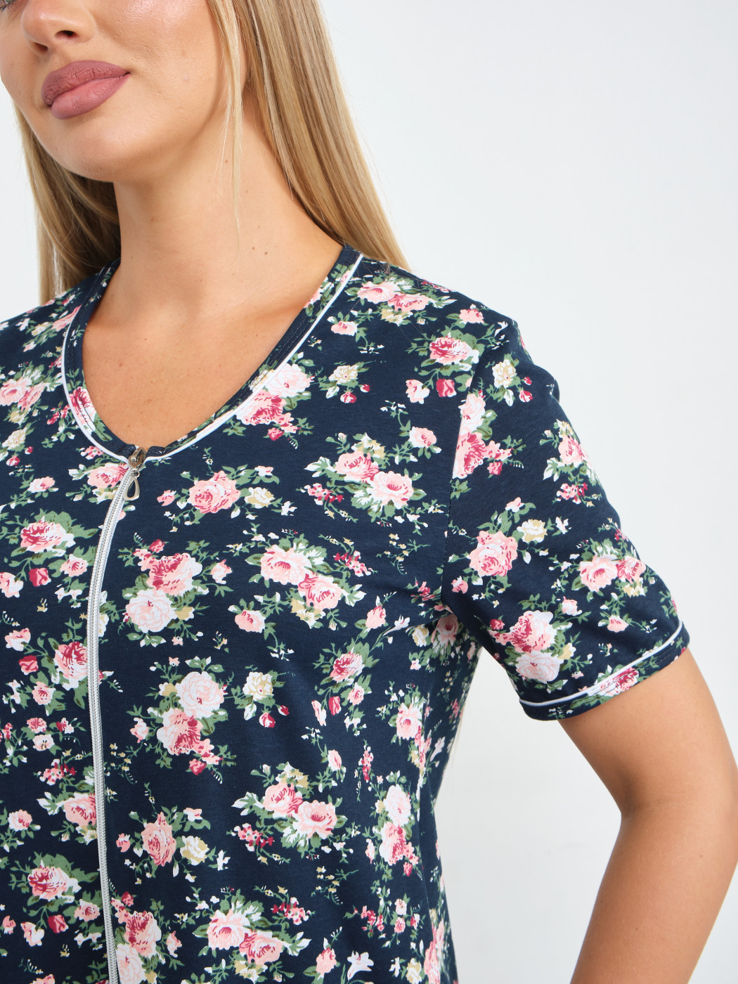 Халат Лотос набивка т.синий/цветы есть в наличии
