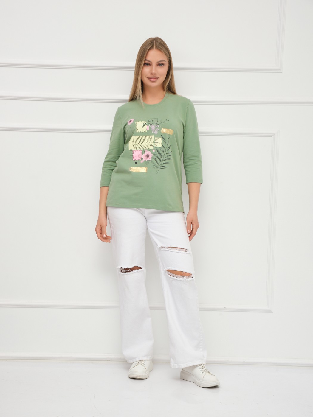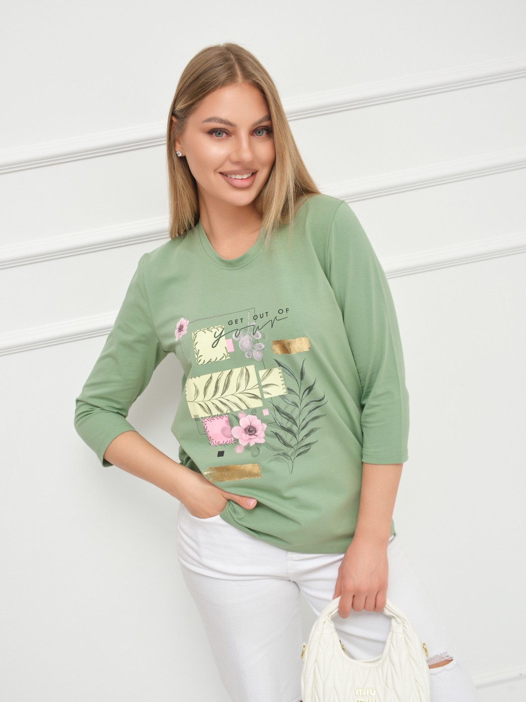Лонгслив Элис рукав 3/4 фисташка есть в наличии