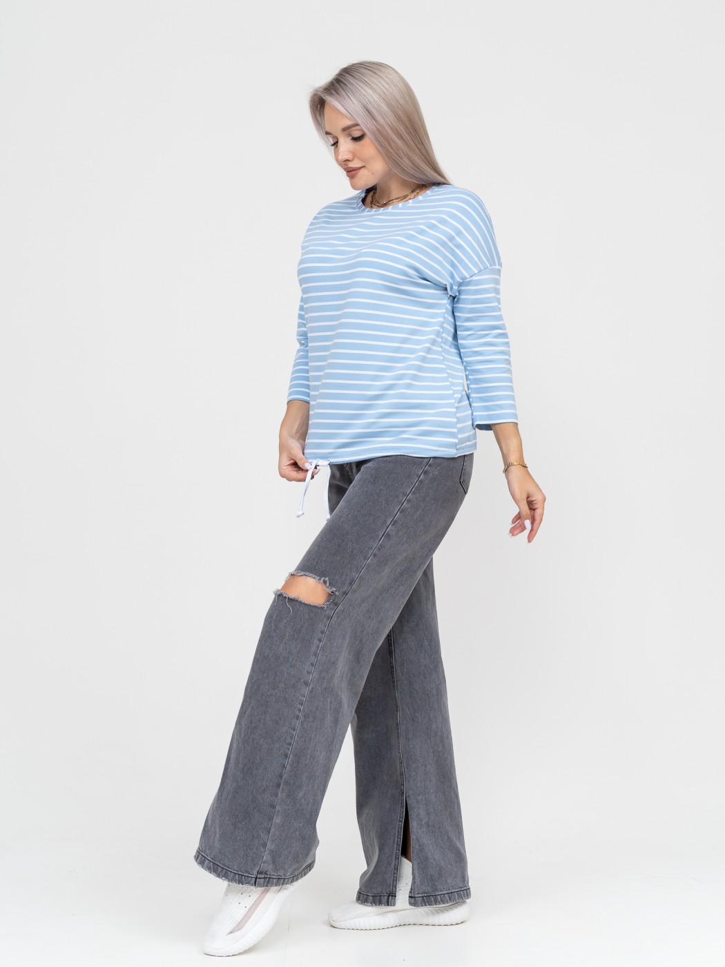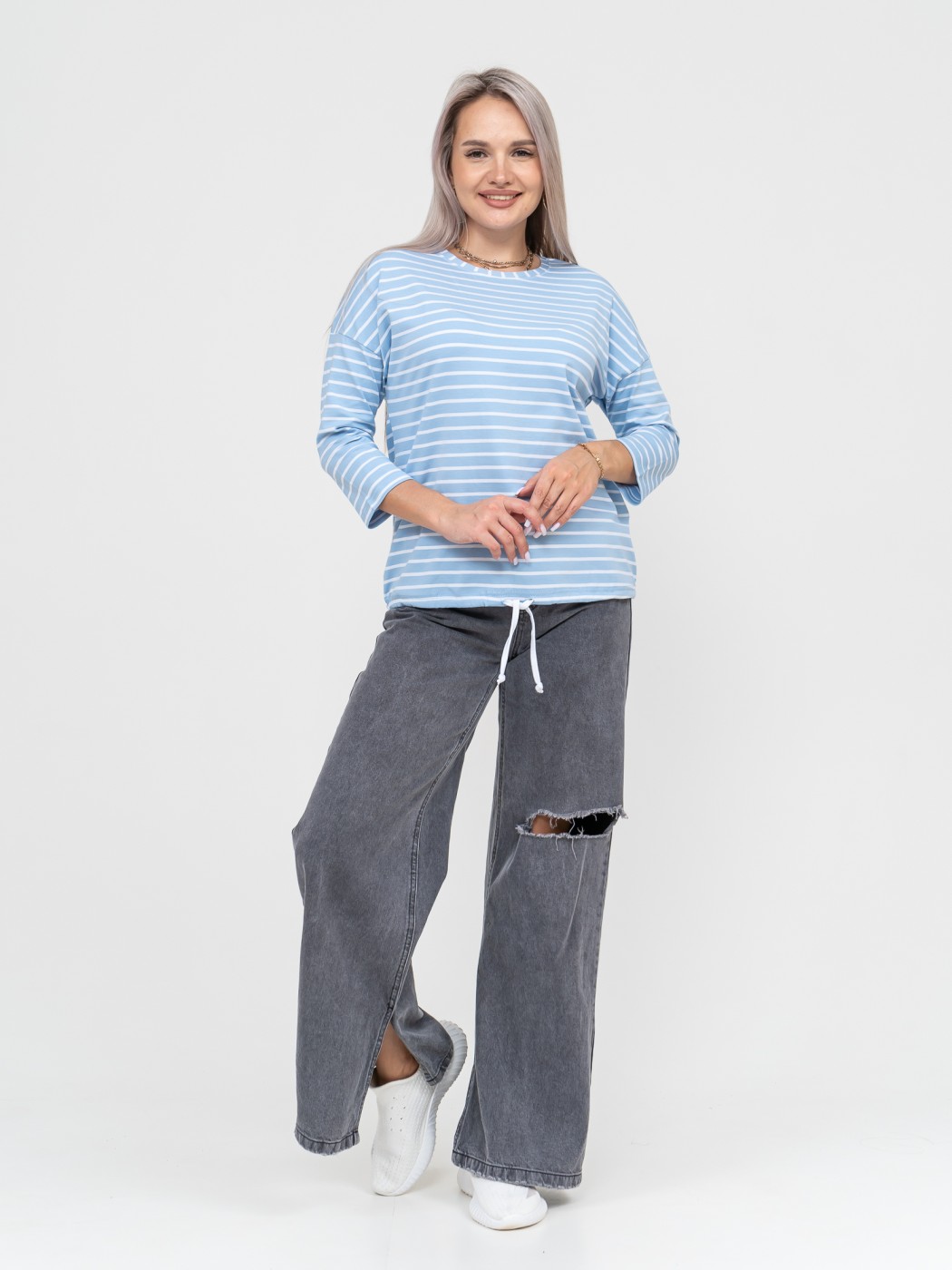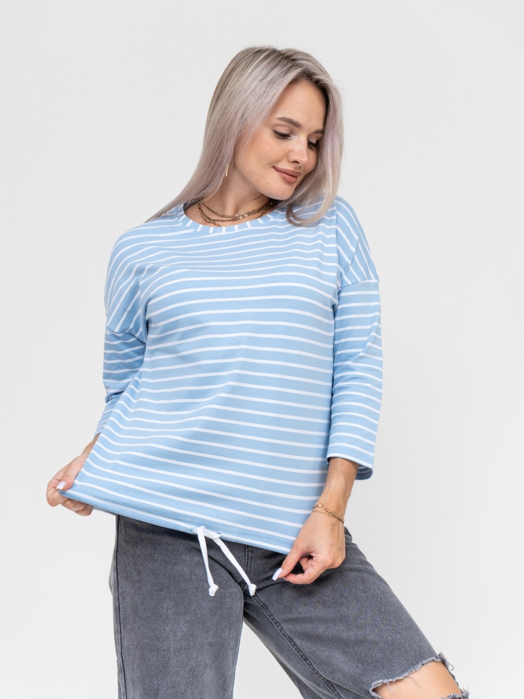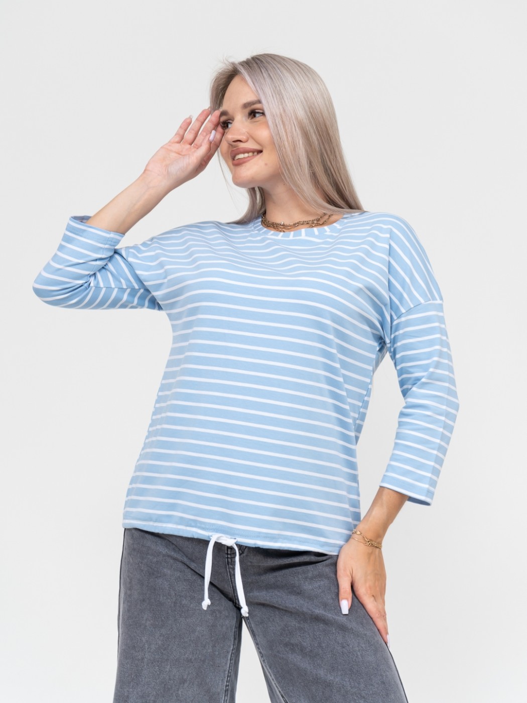 Лонгслив Николь голубой/полоса есть в наличии
