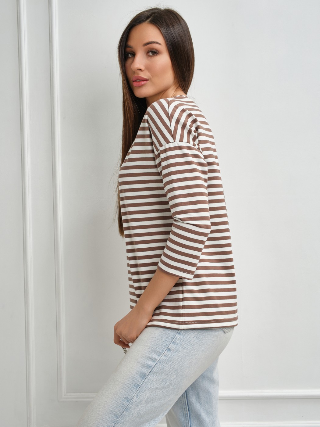 Лонгслив Николь какао/полоса есть в наличии