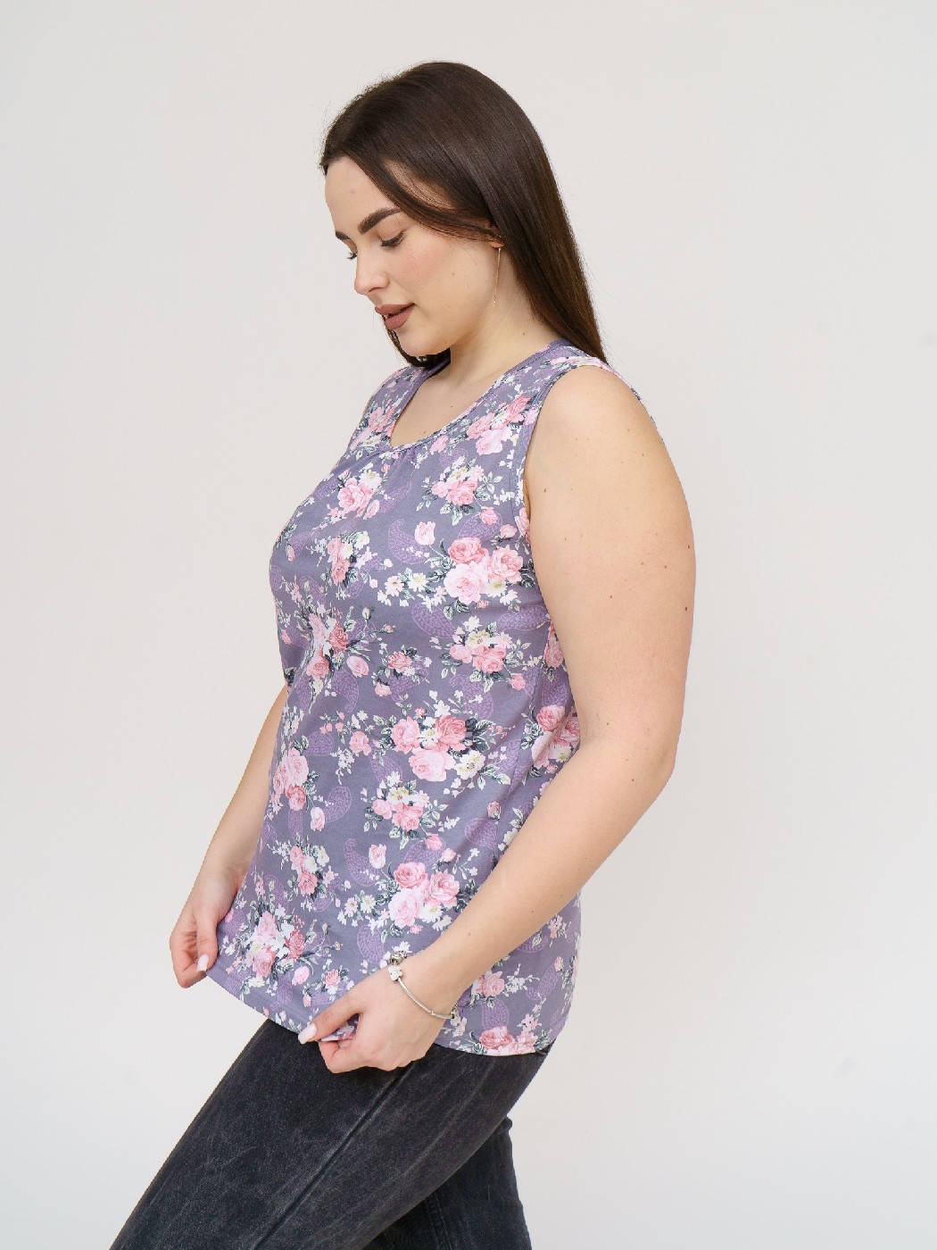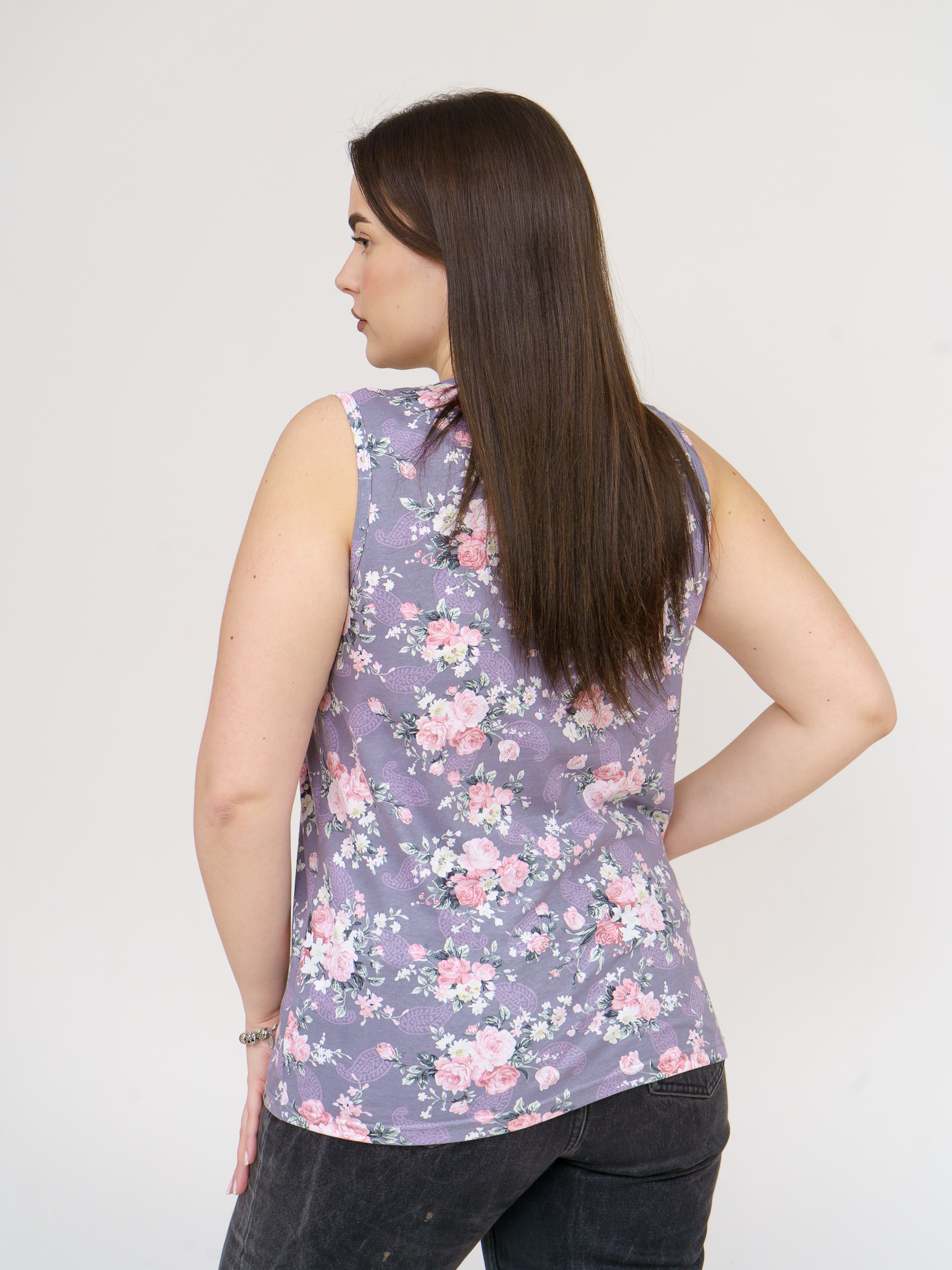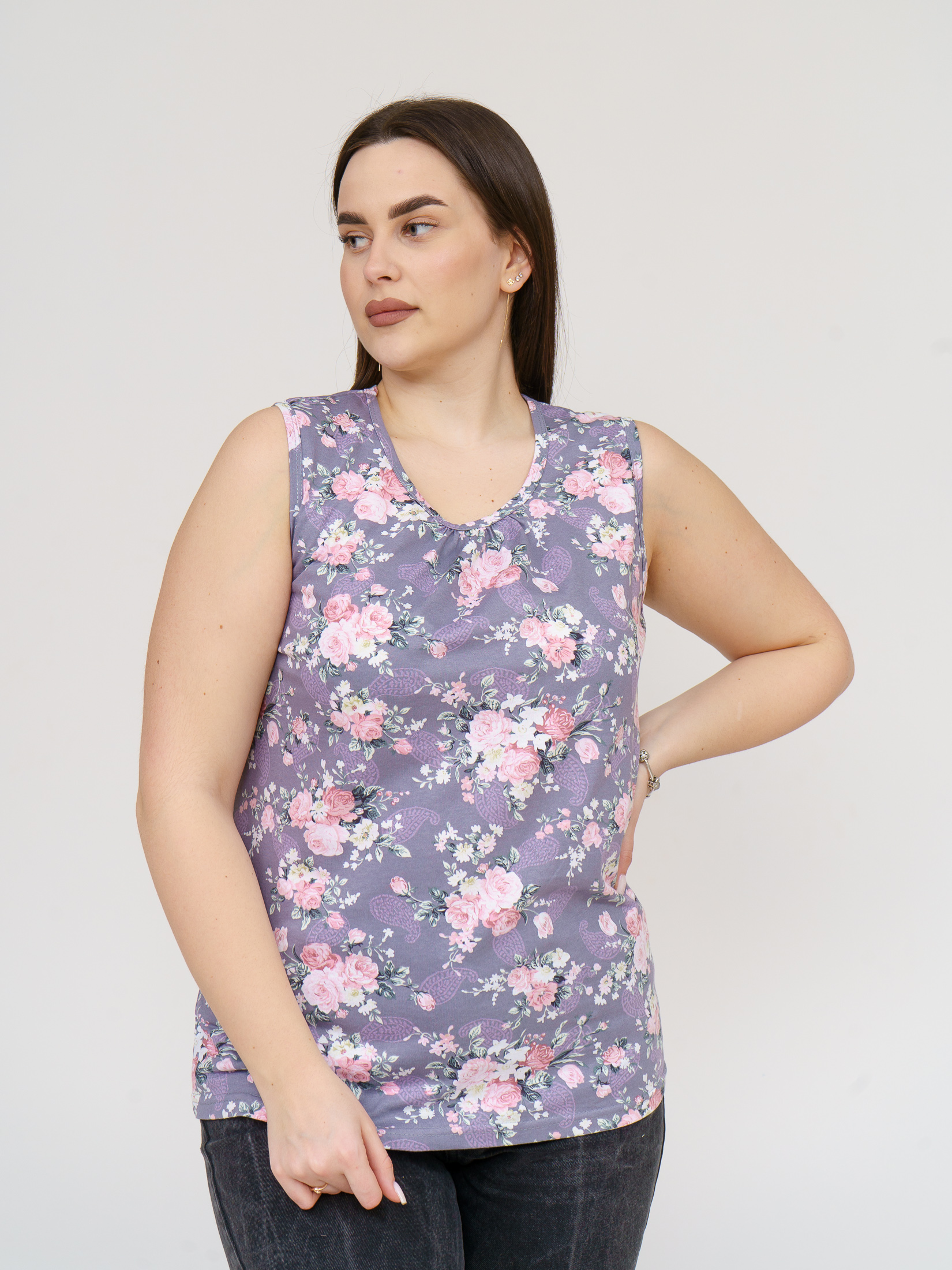 Майка Летнее признание серый/цветы есть в наличии