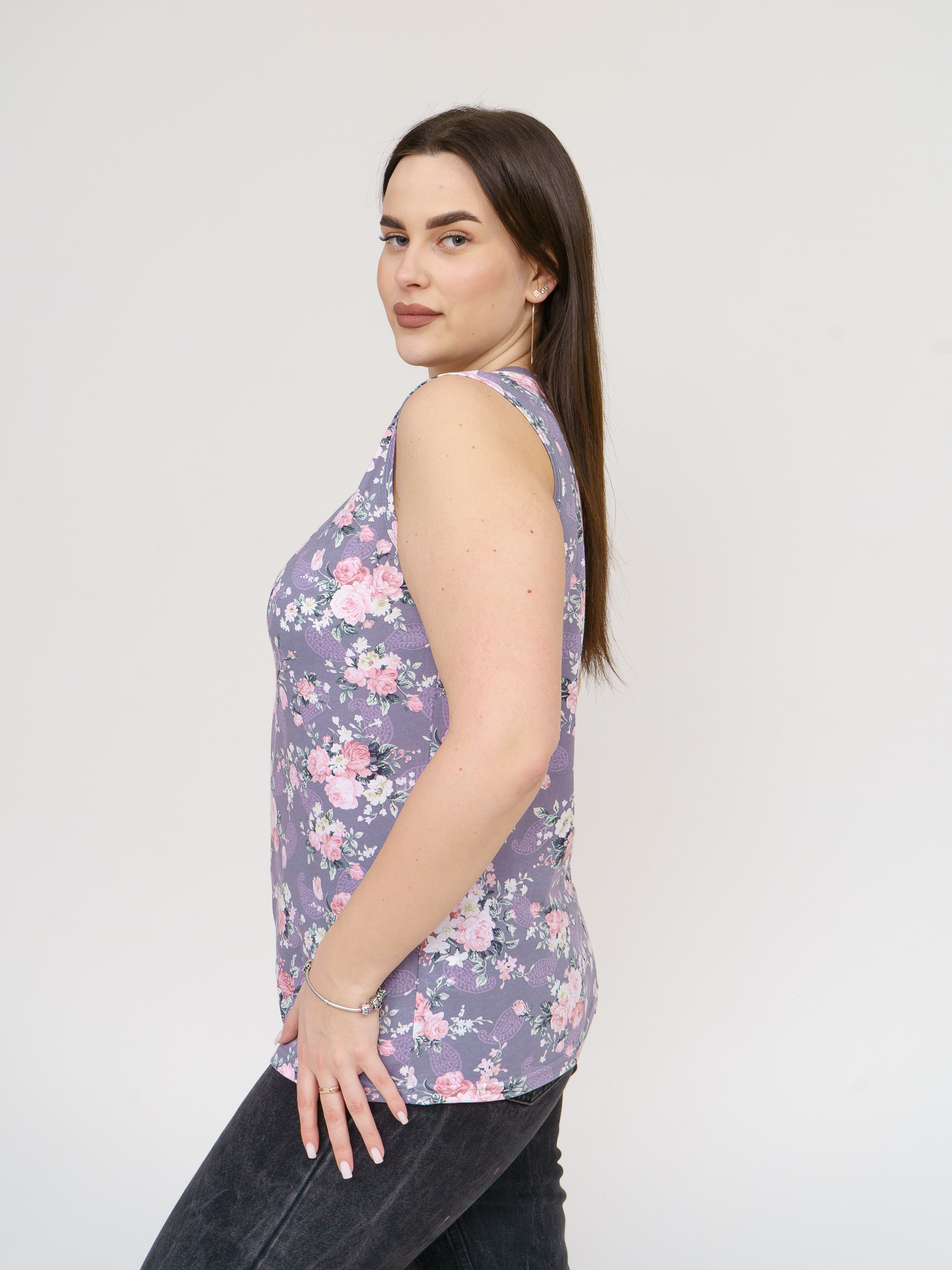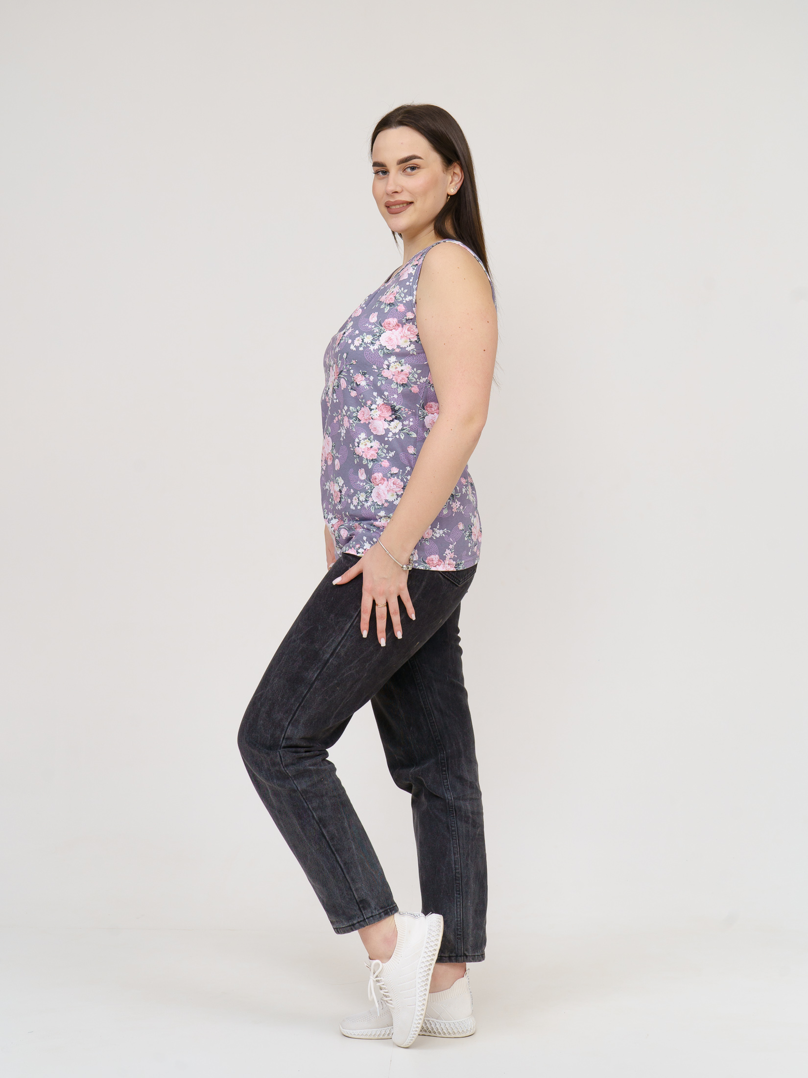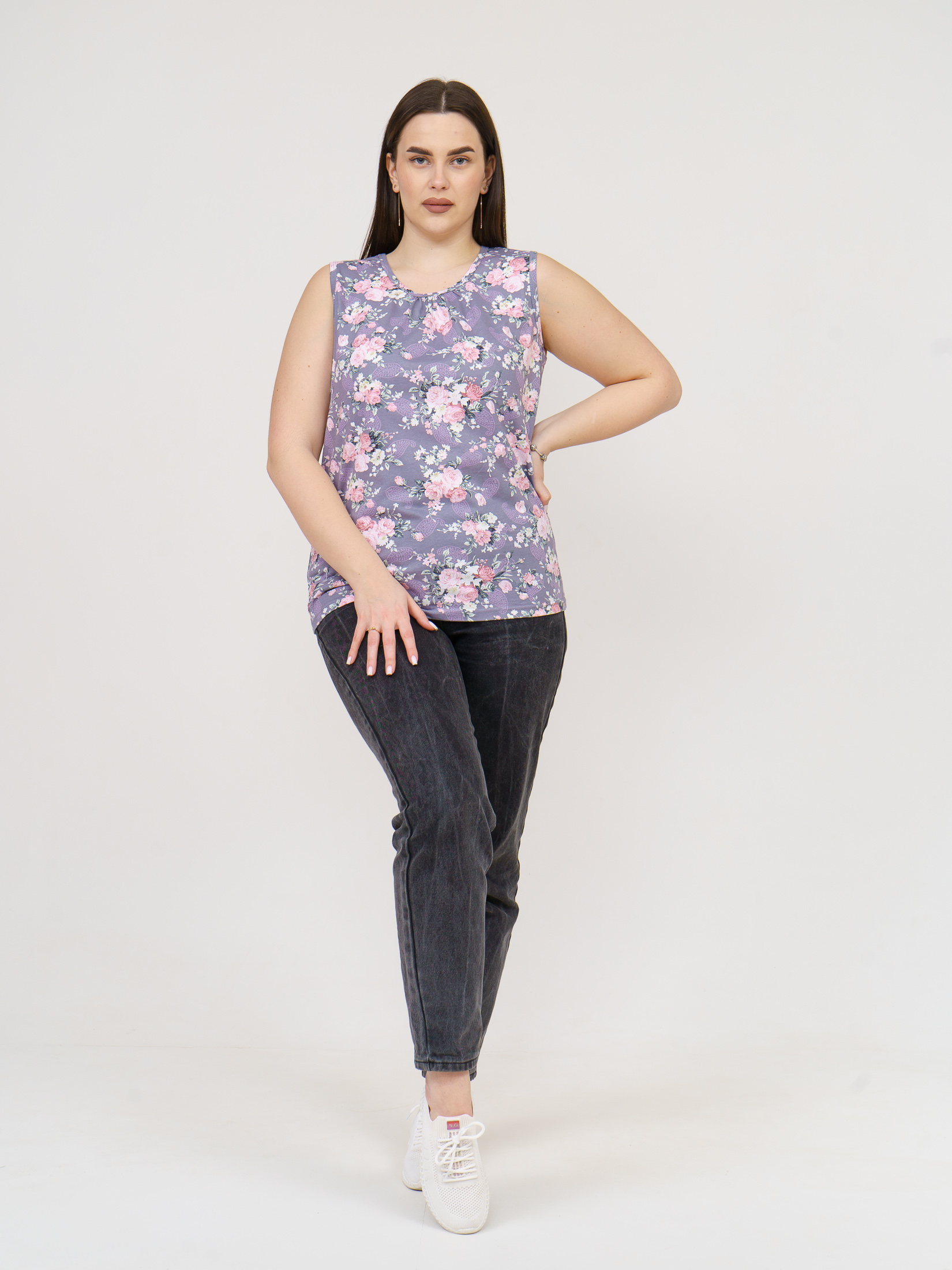 Майка Летнее признание серый/цветы есть в наличии