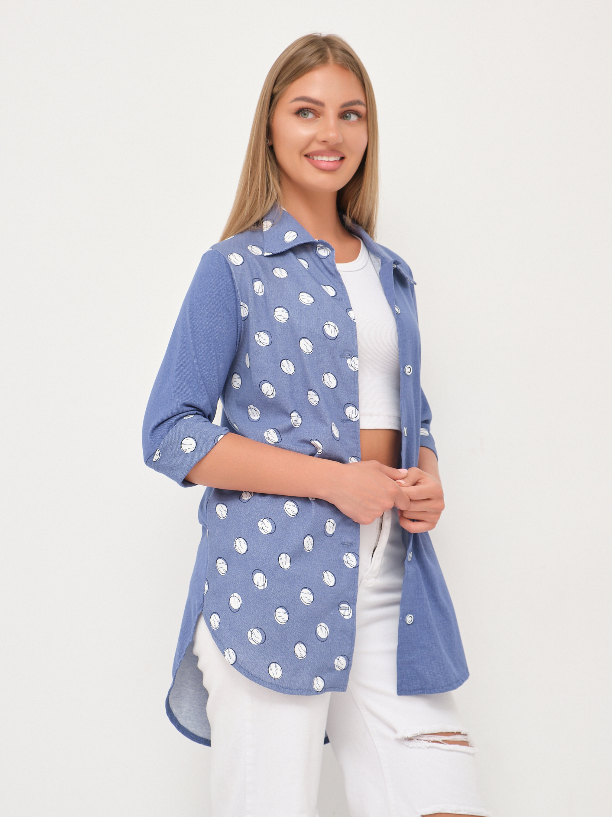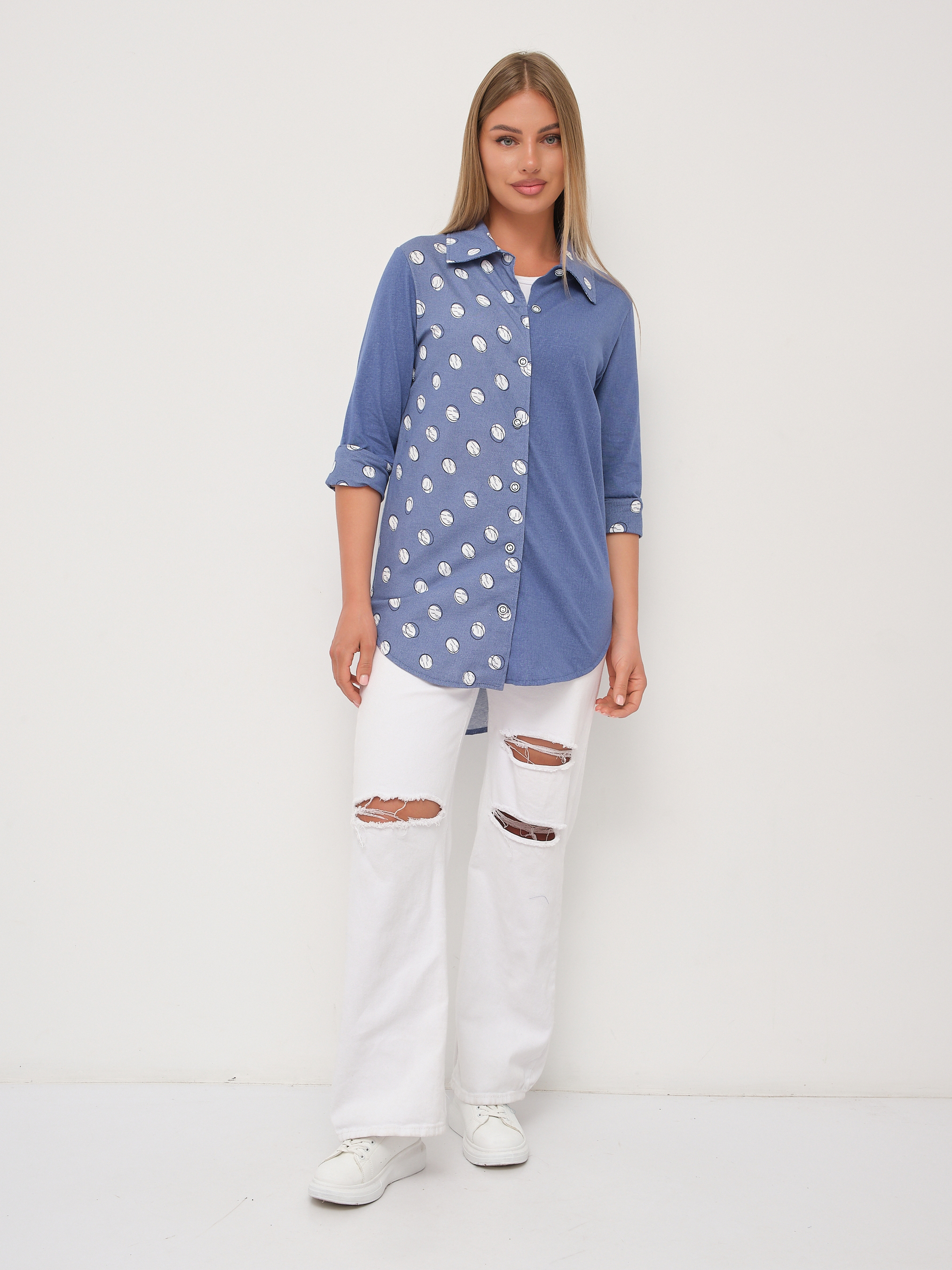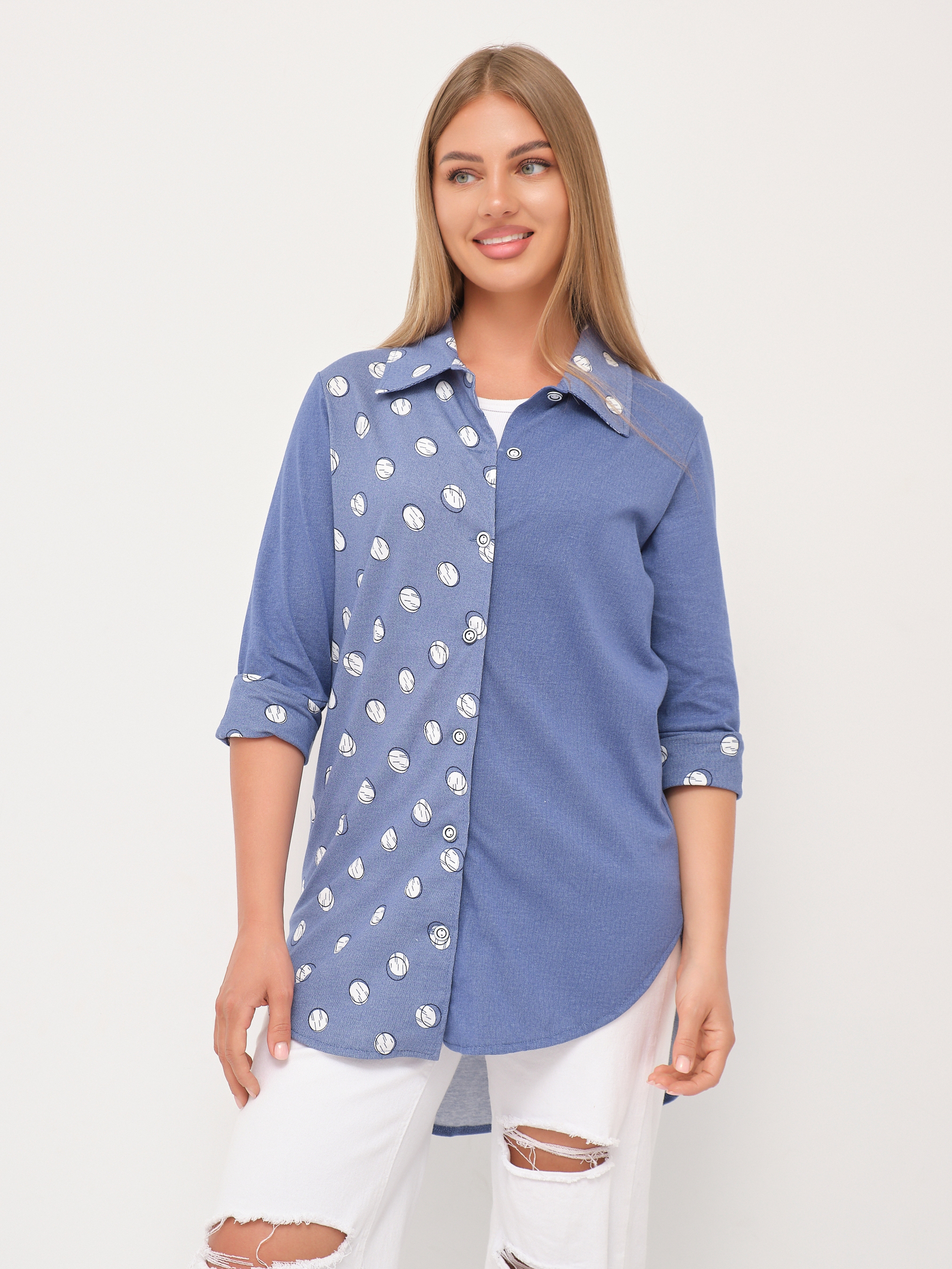 Рубашка Асимметрия джинс/горох есть в наличии