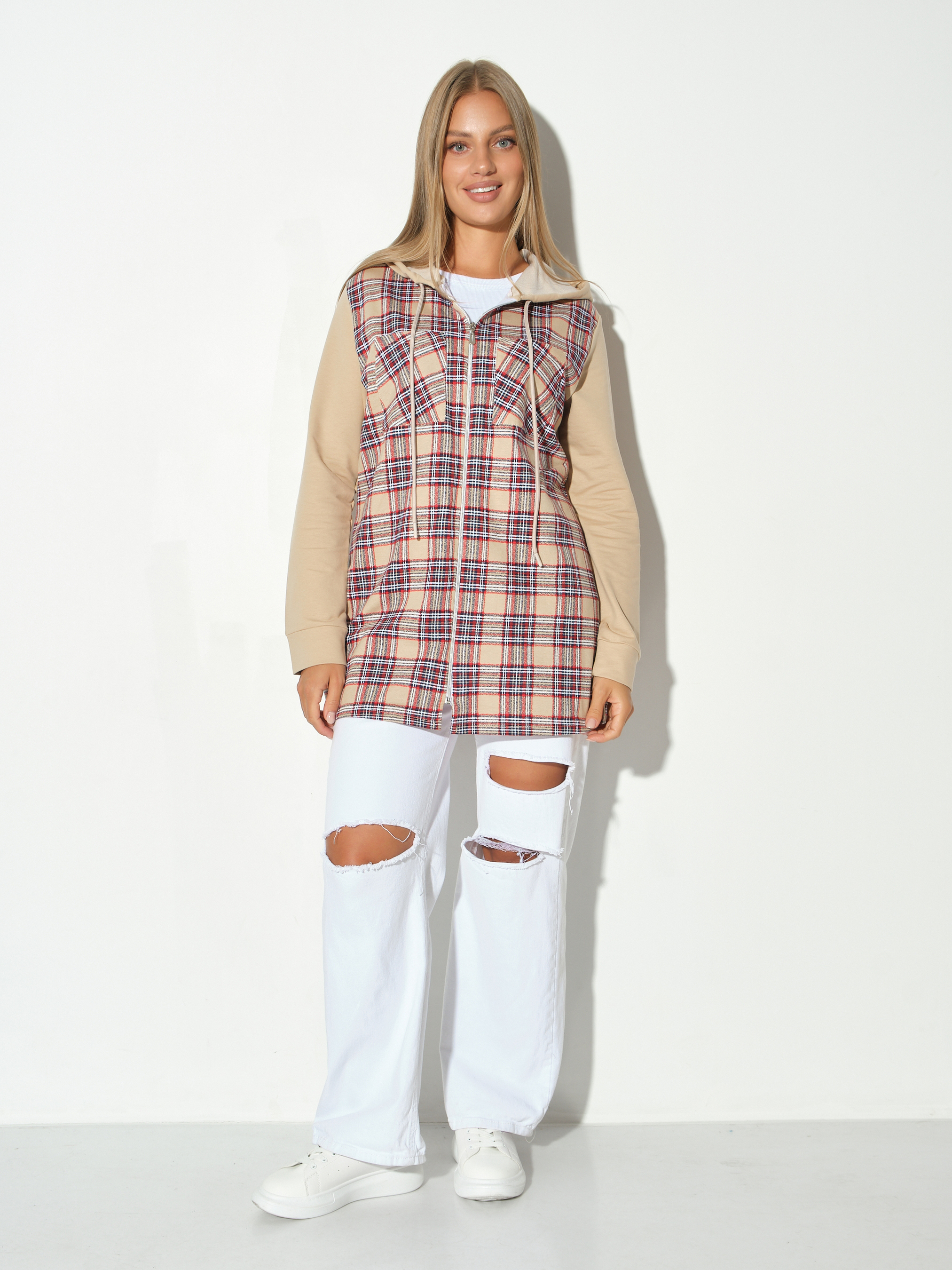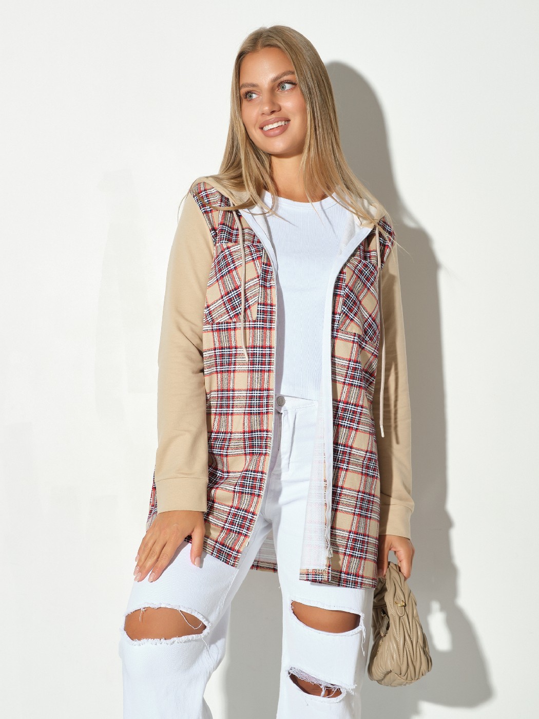 Рубашка жен. Гармония бежевый/клетка есть в наличии