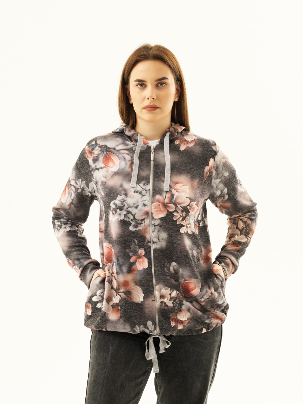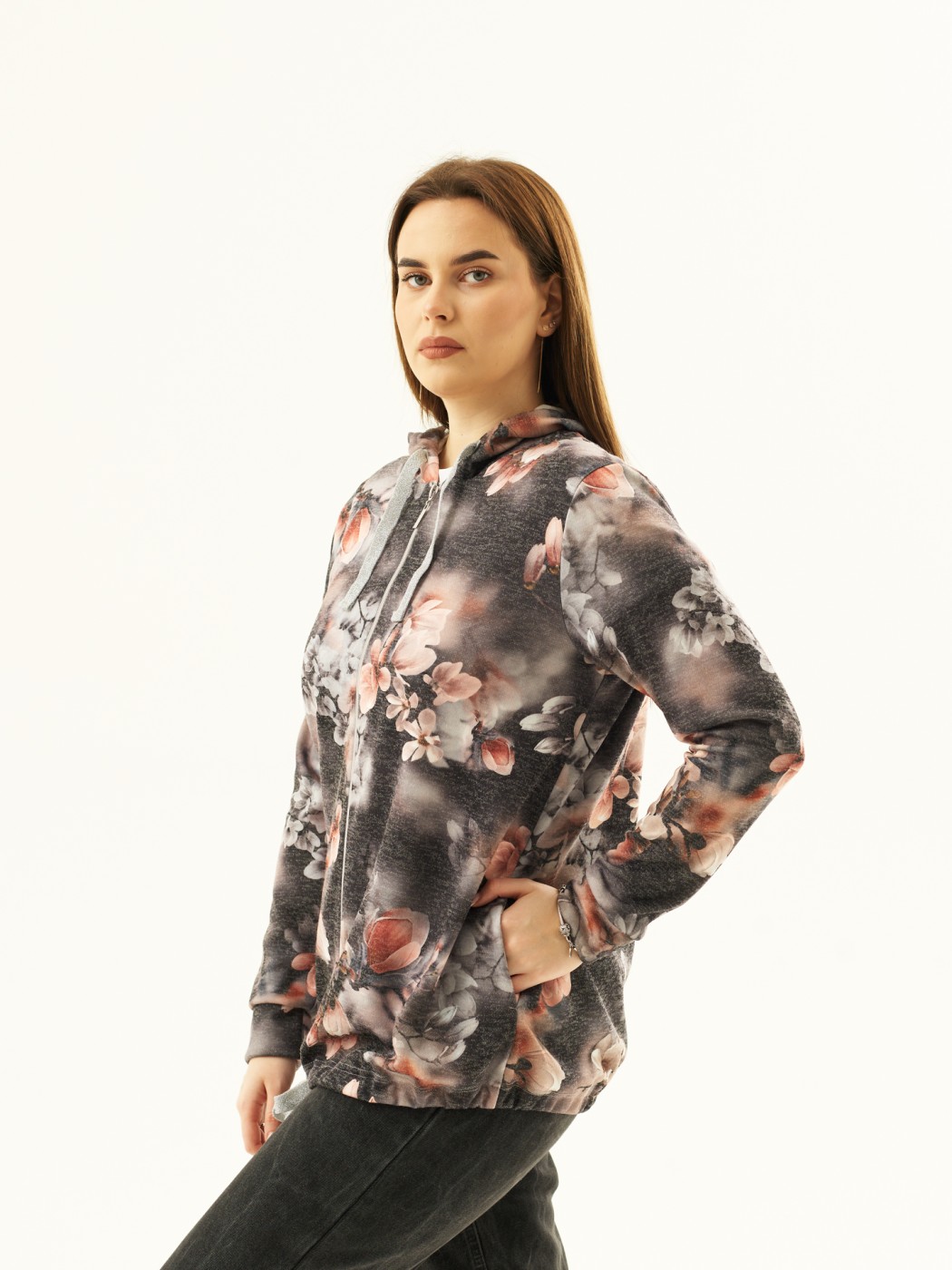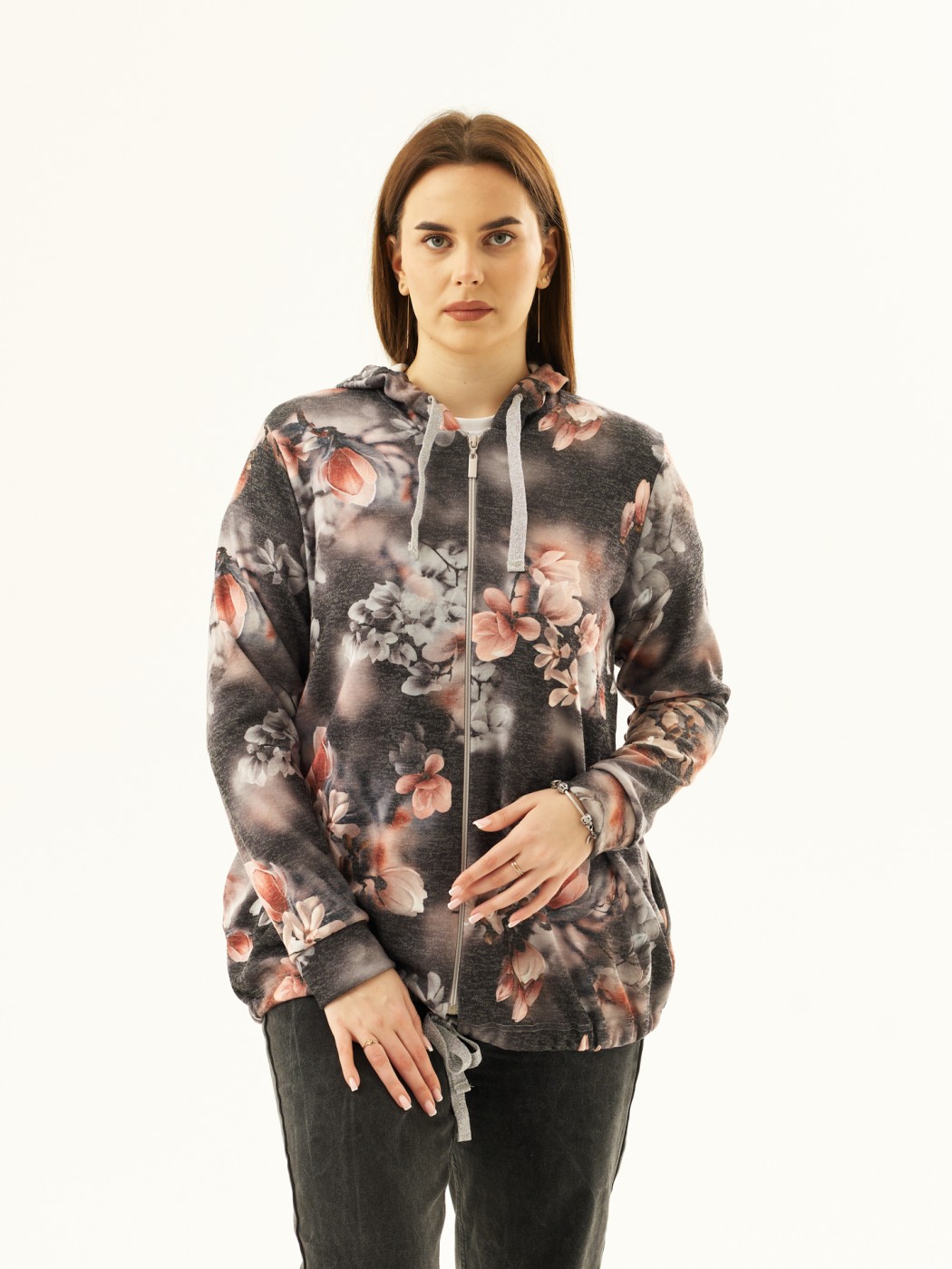 Толстовка женская Мираж ПАН антрацит/цветы есть в наличии