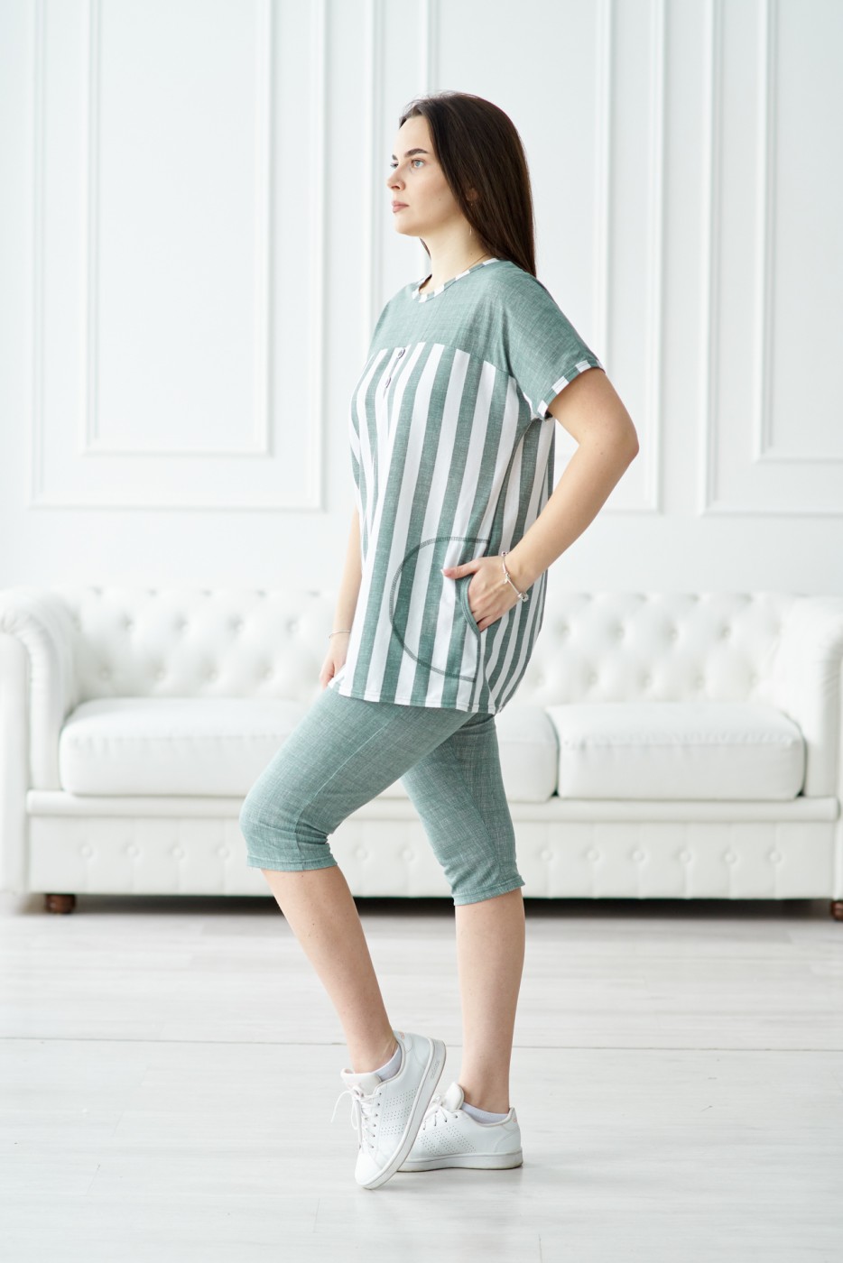 Костюм Вдохновение фисташка/полоса есть в наличии